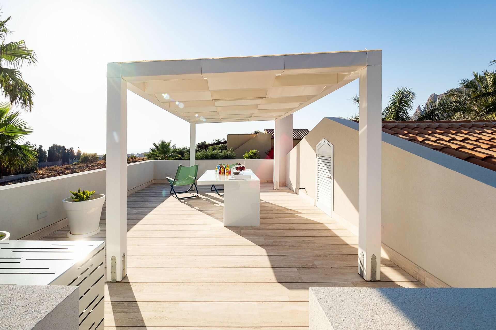 - aperitiefbar op dakterras met uitzicht op Monte Cofano