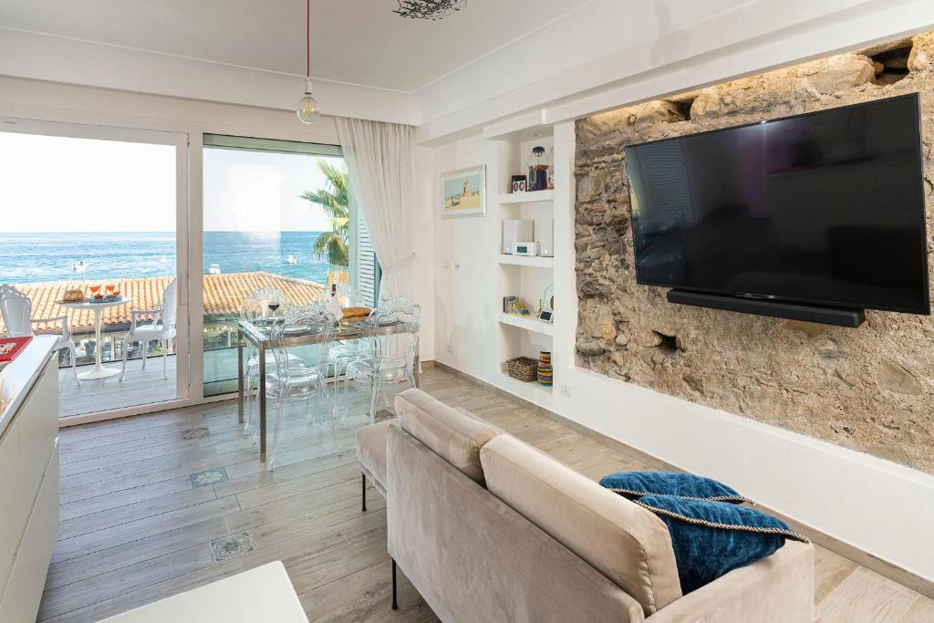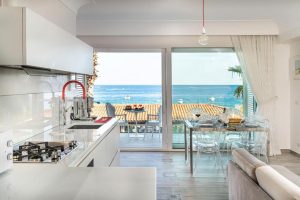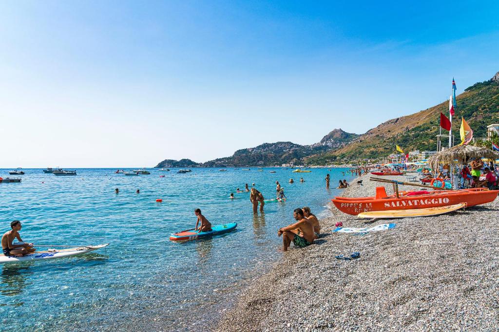 Kijk toch eens! Je ziet gewoon vanuit de zitkamer de bootjes voorbij komen! Wat een geweldige plek – je loopt even naar het zandstrand voor de deur. En je wandelt net zo makkelijk naar een terrasje aan zee of op het centrale plein van de badplaats Letojanni. Restaurants, winkels, het is allemaal onder handbereik voor een relaxte strandvakantie op Sicilië.
