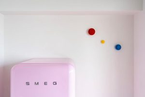 open keuken, koelkast met vriesvak, oven, wasmachine
