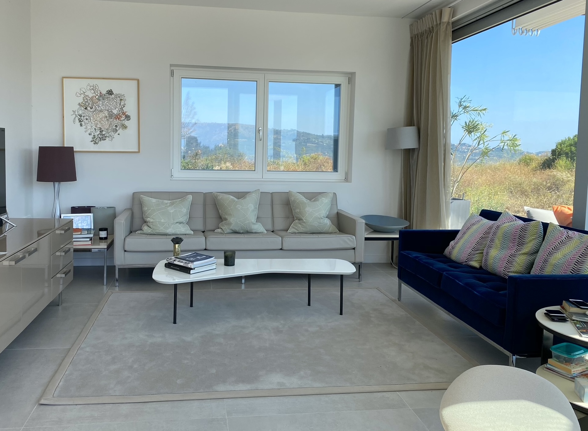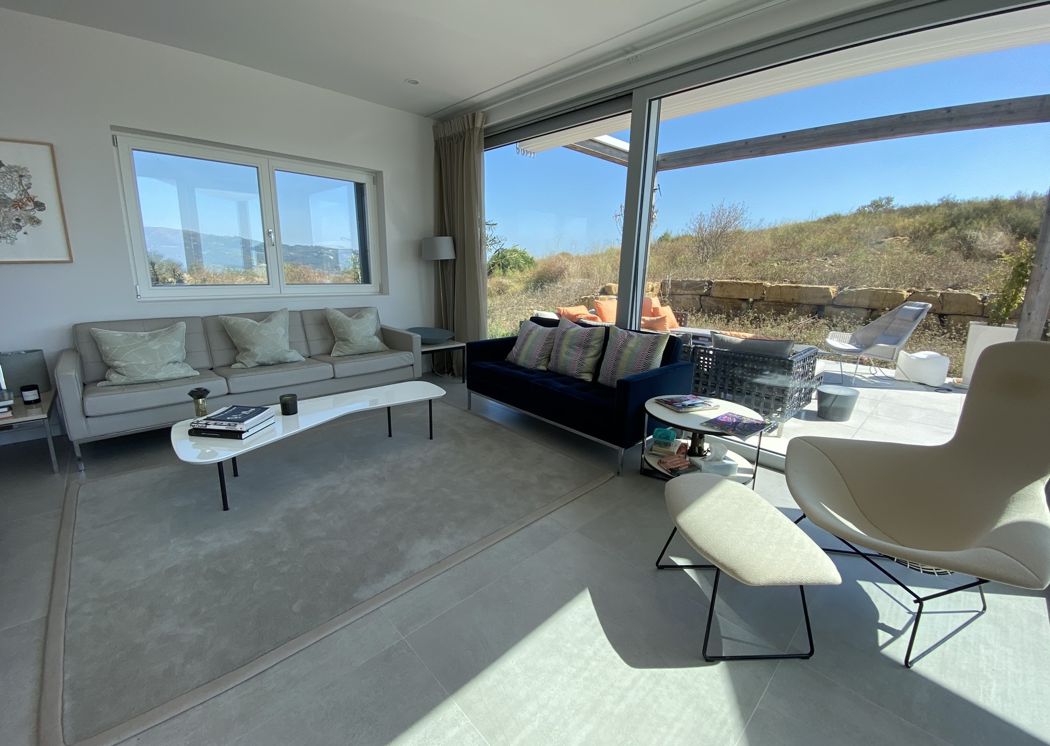 Met in totaal drie slaapkamers, waarvan er twee toegang hebben tot het overdekte panoramaterras op de bovenverdieping, biedt Casa nel Blu plaats aan maximaal zes gasten. Naast de drie slaapkamers, ed elk een ensuite badkamer tot hun beschikking hebben, is er een grote living beneden, met grote glaspartijen die het landschap binnen halen. Oorspronkelijk als familie-vakantiehuis gebouwd door een gerenomeerd architect, is het huis met allerlei Italiaanse design klassiekers ingericht. Naast de comfy living, is er een grote woonkeuken met eettafel en volledig uitgeruste keuken met kookeiland.