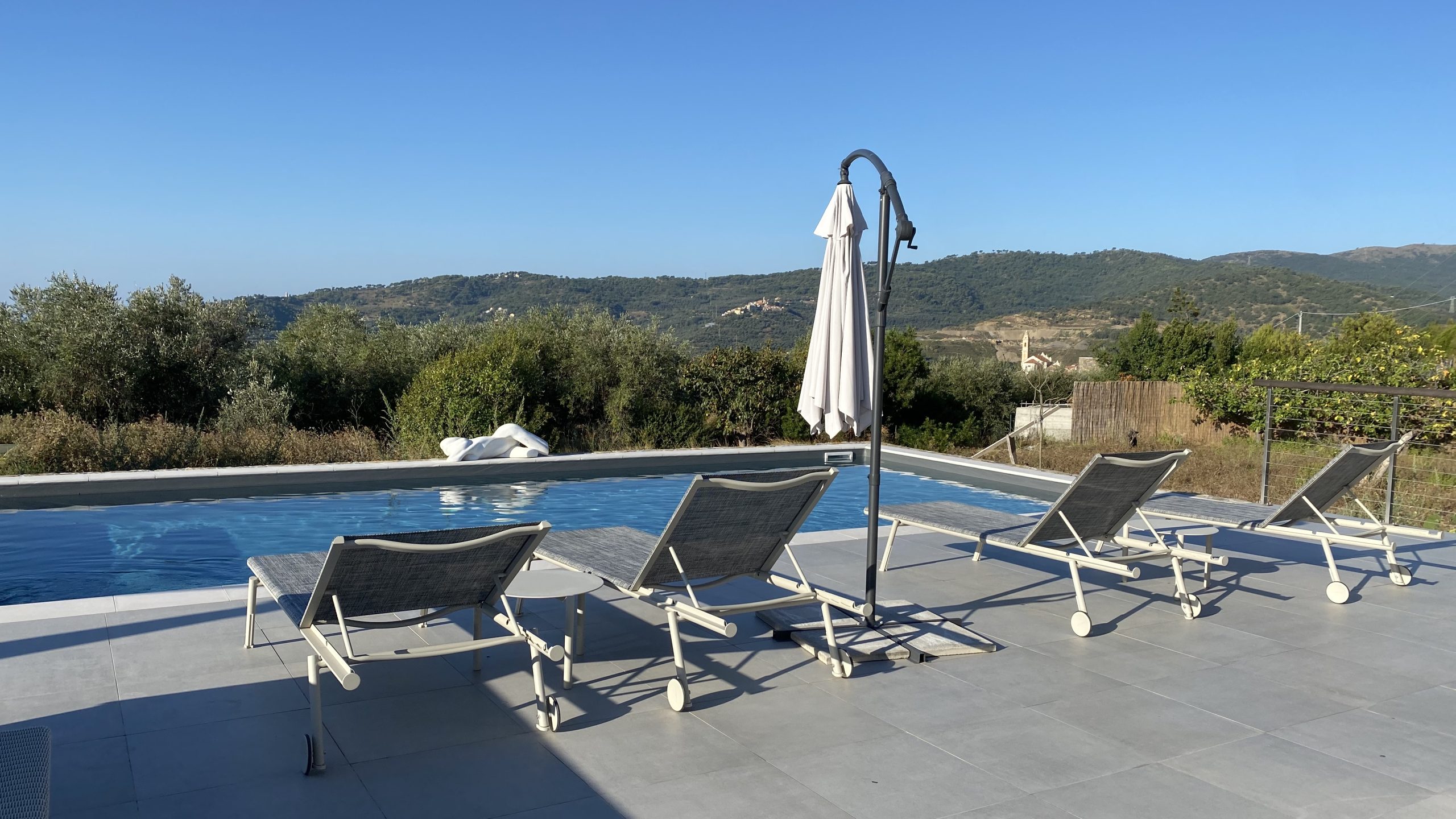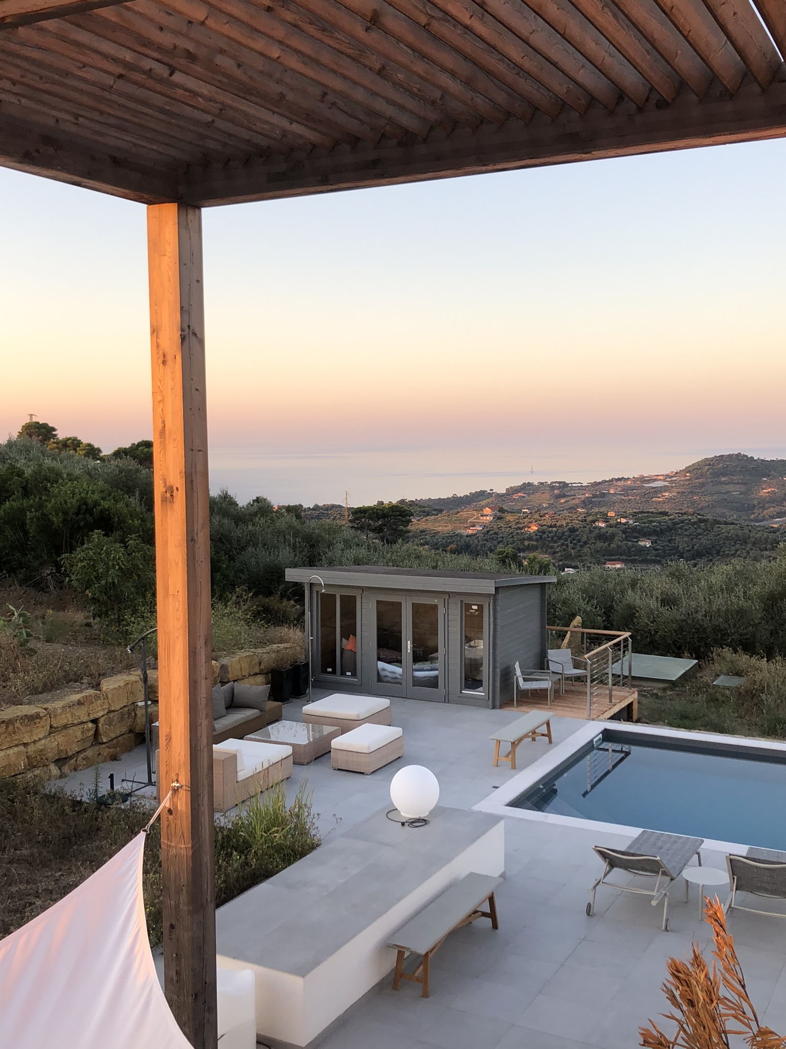 Wat een uitzicht! En wat een luxe om gewoon even naar een leuk dorpje te kunnen lopen. Met een kleine buurtsuper met dagelijks vers brood, een terrasje op het centrale pleintje én een goede pizzeria. En wil je een dagje naar zee? Dan liggen de zandstranden  van Borgo Prino op slechts tien autominuten. Maar wil je wel weg van dit design paradijsje? Misschien is het huis zelf, dat heerlijke zwembad en de vele relaxplekken in en rond de villa op zich al een feest. Een plek die lijkt te zien bedacht met maar één doel: Dolce Far Niente ofwel zalig niets doen.