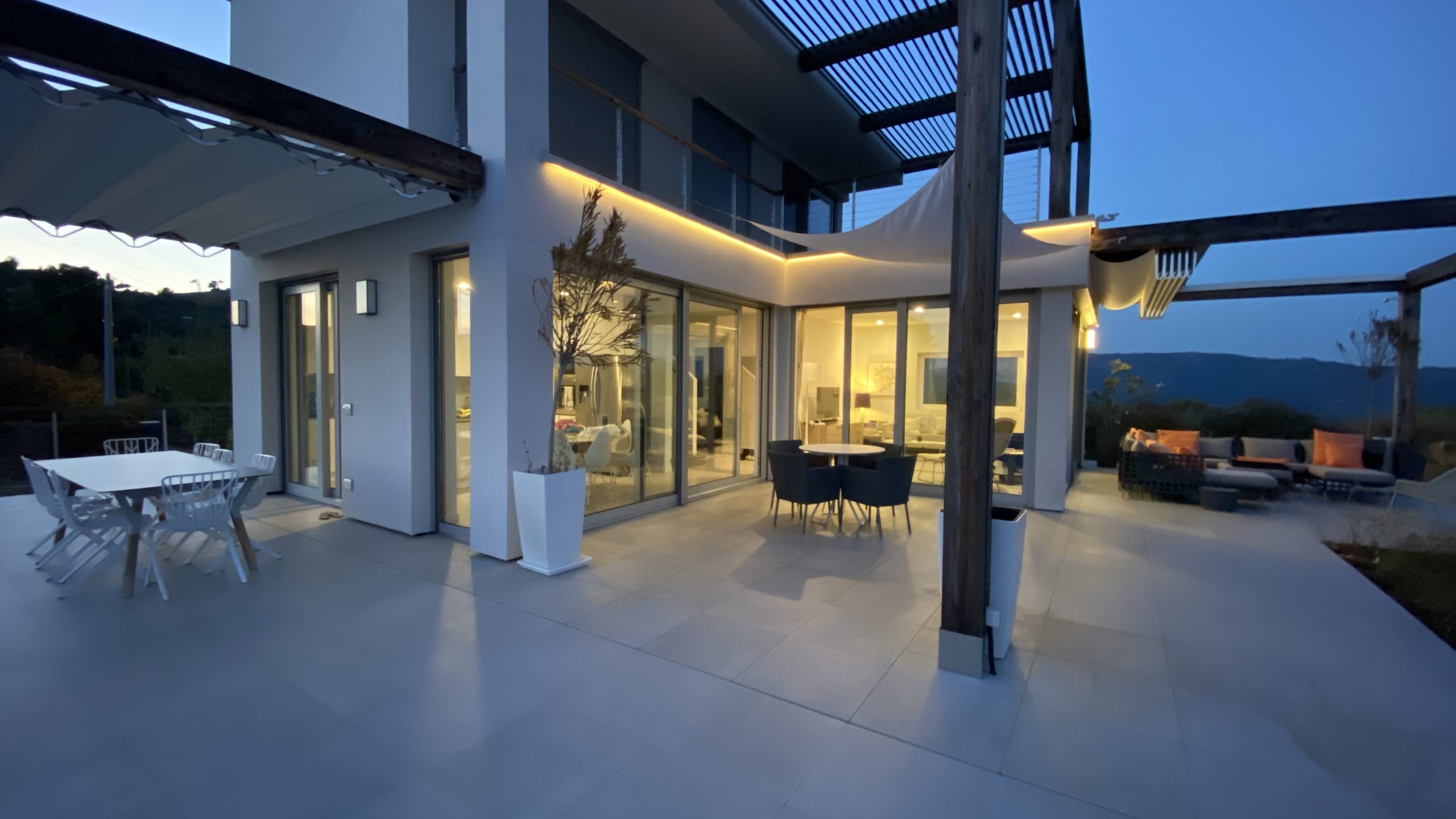 Het grote terras rond de villa