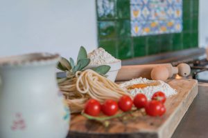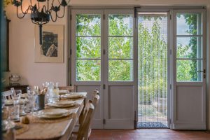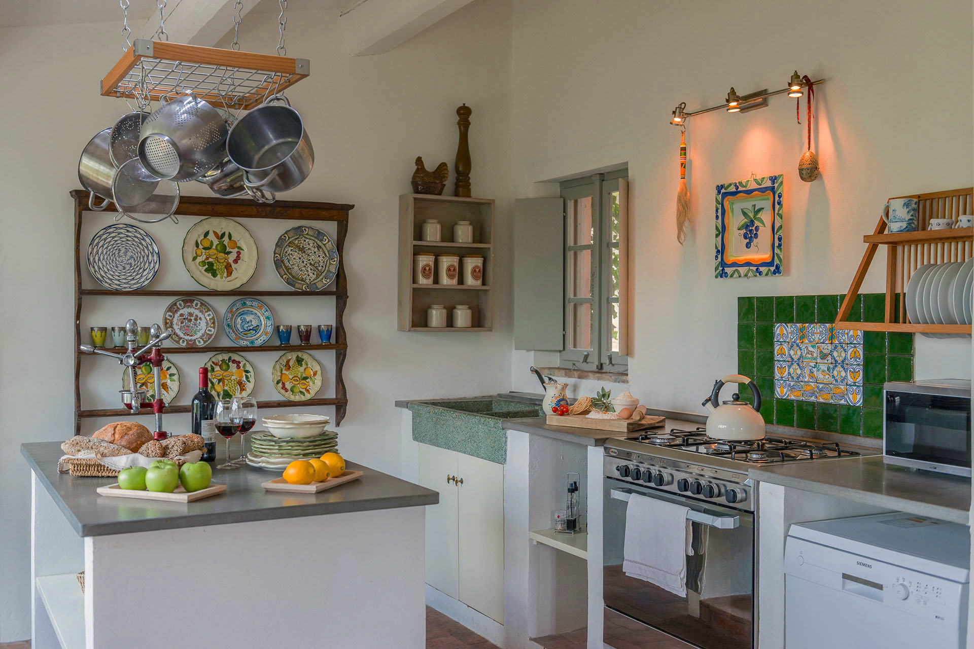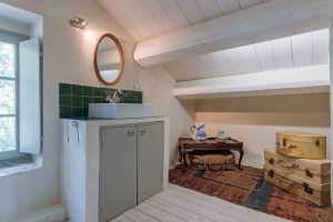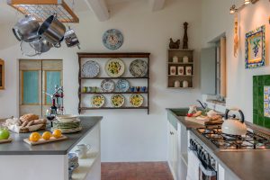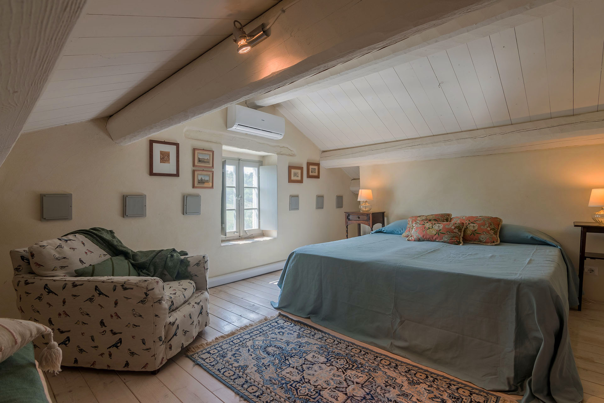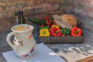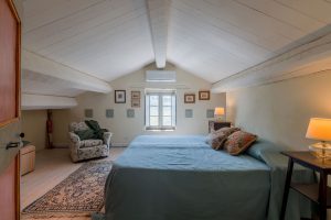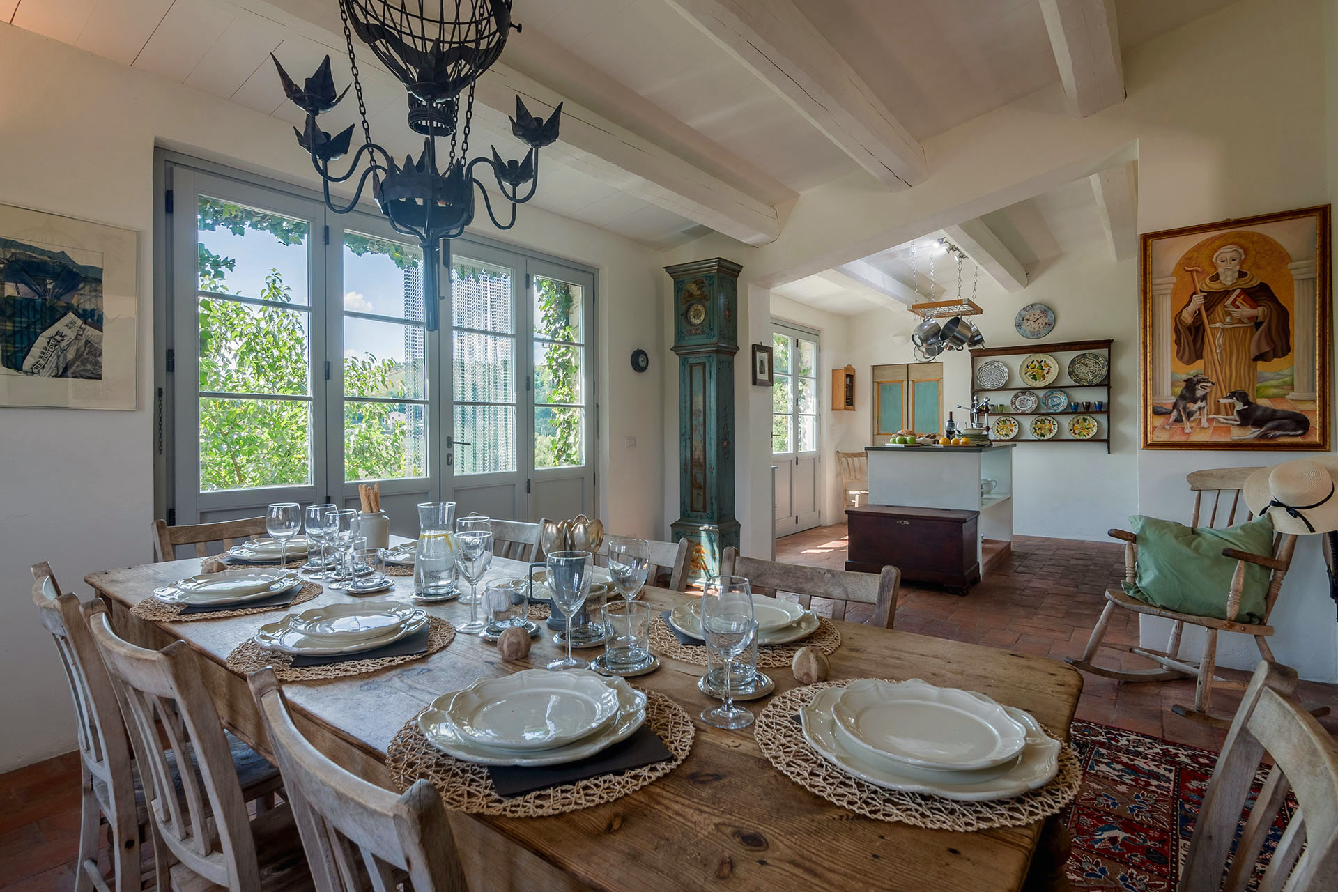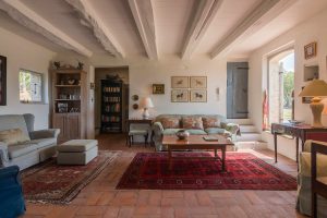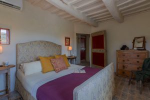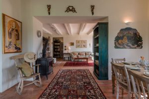 Hoewel Casa Poppea tegenwoordig vooral een heerlijk vakantiehuis is dat veel gebruikt wordt door de eigenaars zelf, was het nog maar zo’n vijftien jaar geleden nog een echte boerenwoning. Met stallen en opslag op de begane grond, het woongedeelte op de eerste verdieping en een zolder die voornamelijk werd gebruikt om de hammen te drogen. Van deze indeling is nu nog nauwelijks iets over, maar de badkamer op de eerste verdieping, ooit de keuken, bevat nog steeds de oude open haard en wasbak. Ook de oude balken plafonds en de doorleefde vloeren zijn bewaard gebleven evenals de originele raamluiken en de oude deuren.