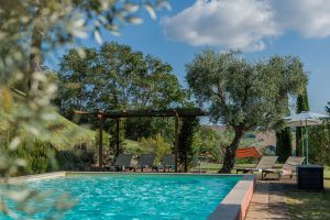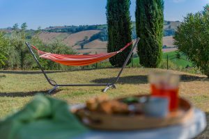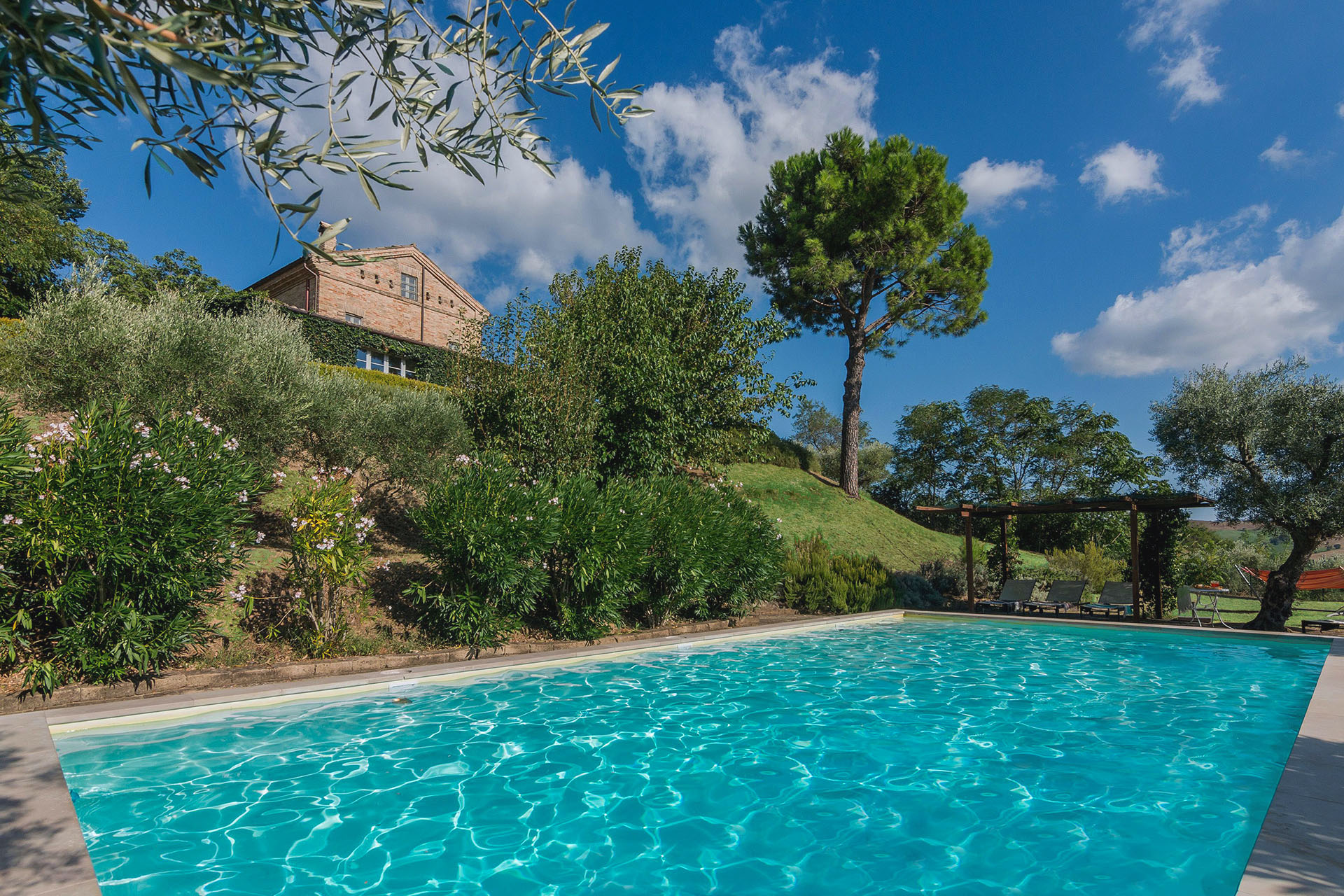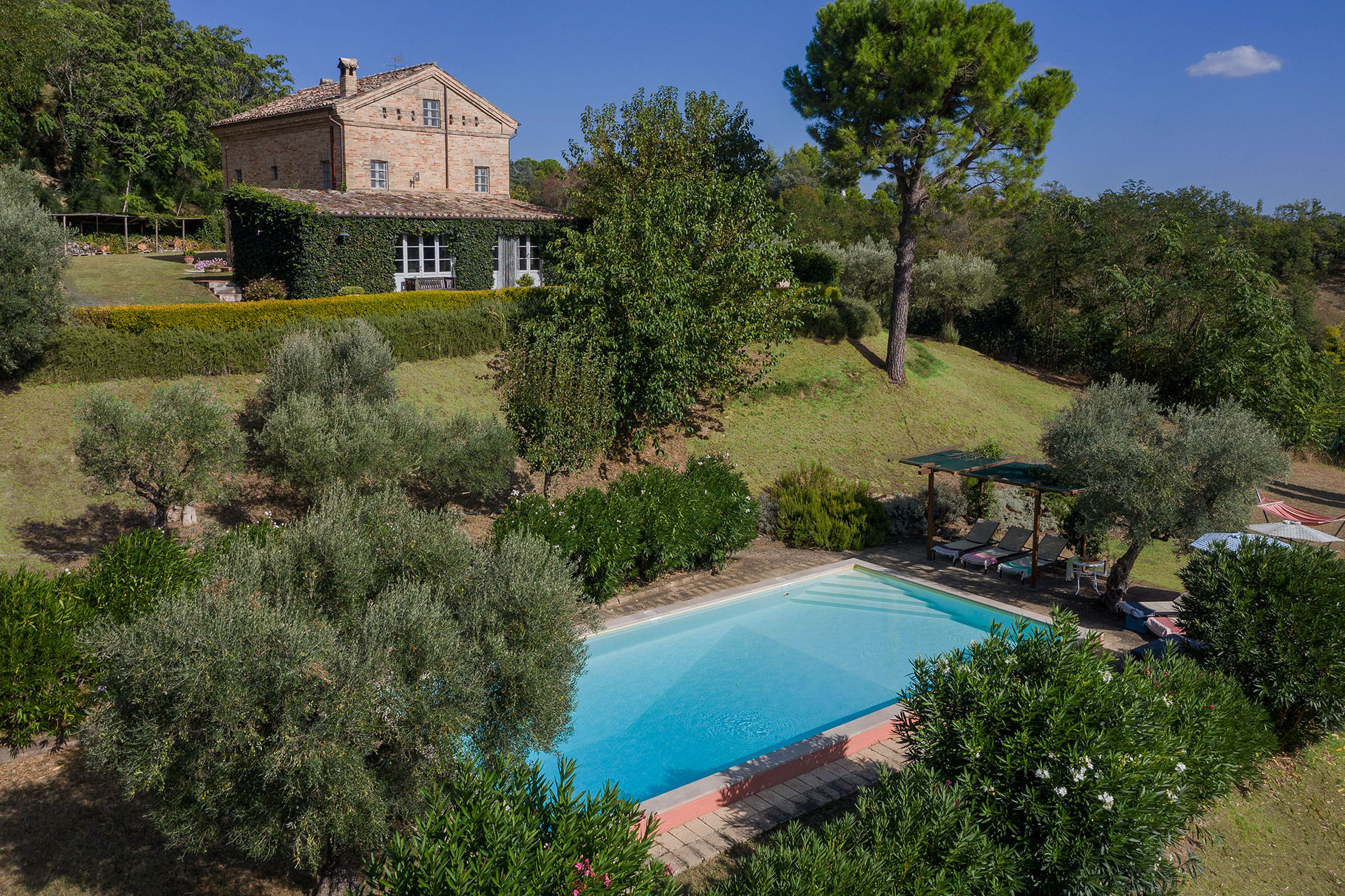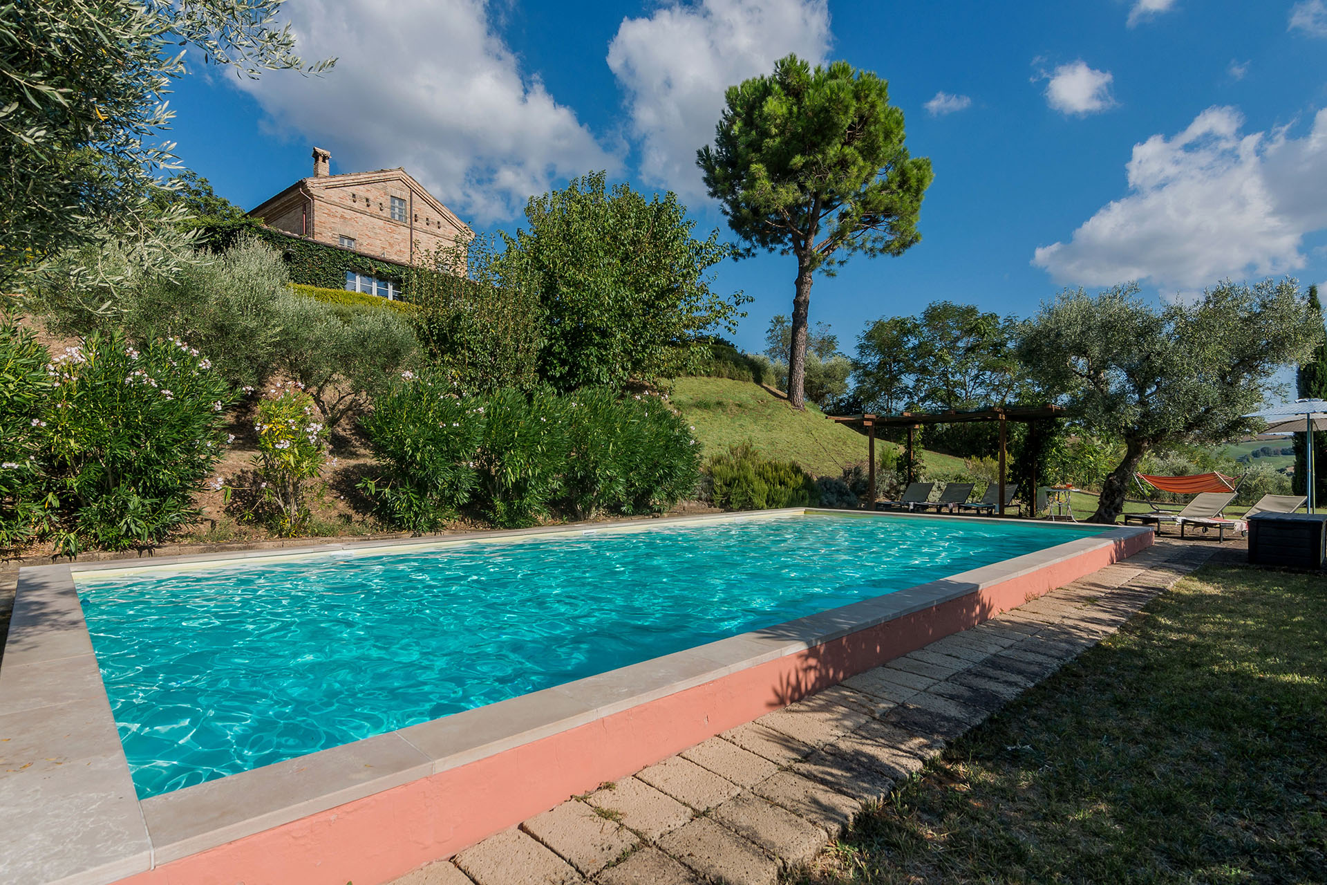 In de tuin, die ondermeer de olijfgaard bevat en diverse fraaie bomen, ligt op een lager gedeelte van de tuin, het zwembad. Een schitterende lokatie waar je de rust en weidsheid van het landschap te volle kan beleven. Casa Poppea is daarmee een echt paradijsje waar niets ontbreekt. Wil je er op uit voor een kop koffie of een ijsje, dan ligt op nog geen 2,5 km een pittoreske dorpje. En daarnaast liggen er binnen een straal van tien kilometer meerdere mooie stadjes en het Fiastra klooster, bezienswaardigheden die stuk voor stuk een bezoek waard zijn. De zee is een half uur rijden en de bergen zijn niet veel verder waarmee Casa Poppea een ideale basis is om dit deel van de Marche te ontdekken.