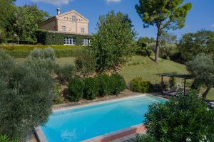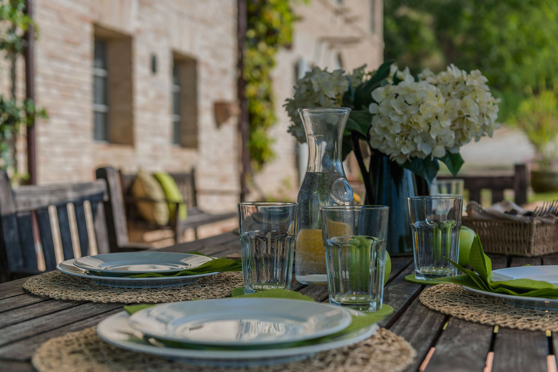 Neem een romantische Engelse dame en een volbloed Italiaan. Laat ze verliefd worden op een stoer landhuis in de Marche en zie het resultaat: Casa Poppea. Een huis dat het beste van het Engelse interieur paart aan een Italiaans karakterhuis. Een kloeke plattelandshoeve, gelegen aan het einde van een landweggetje waar het Marchegiaanse landschap zich in alle schoonheid ontvouwt. Ga maar op het terras bij het zwembad zitten, laat je blik eindeloos dwalen en je zal beamen dat dit lieflijke landschap als een droom is.