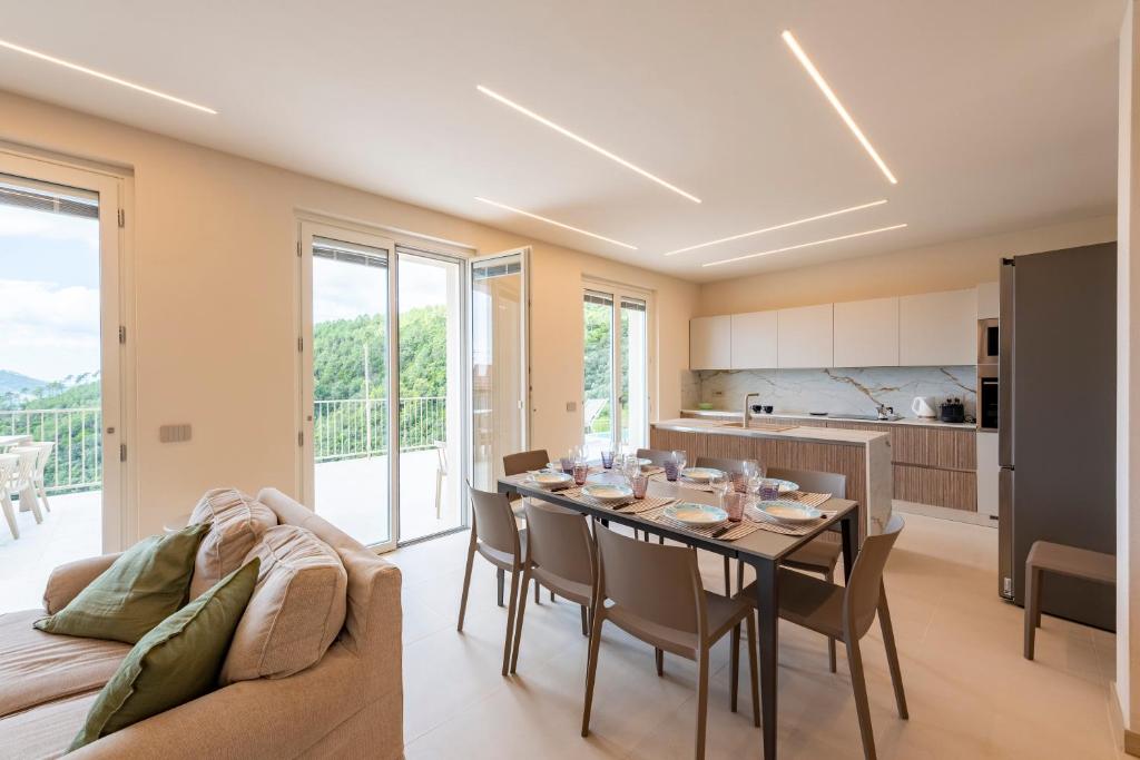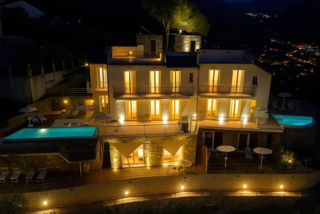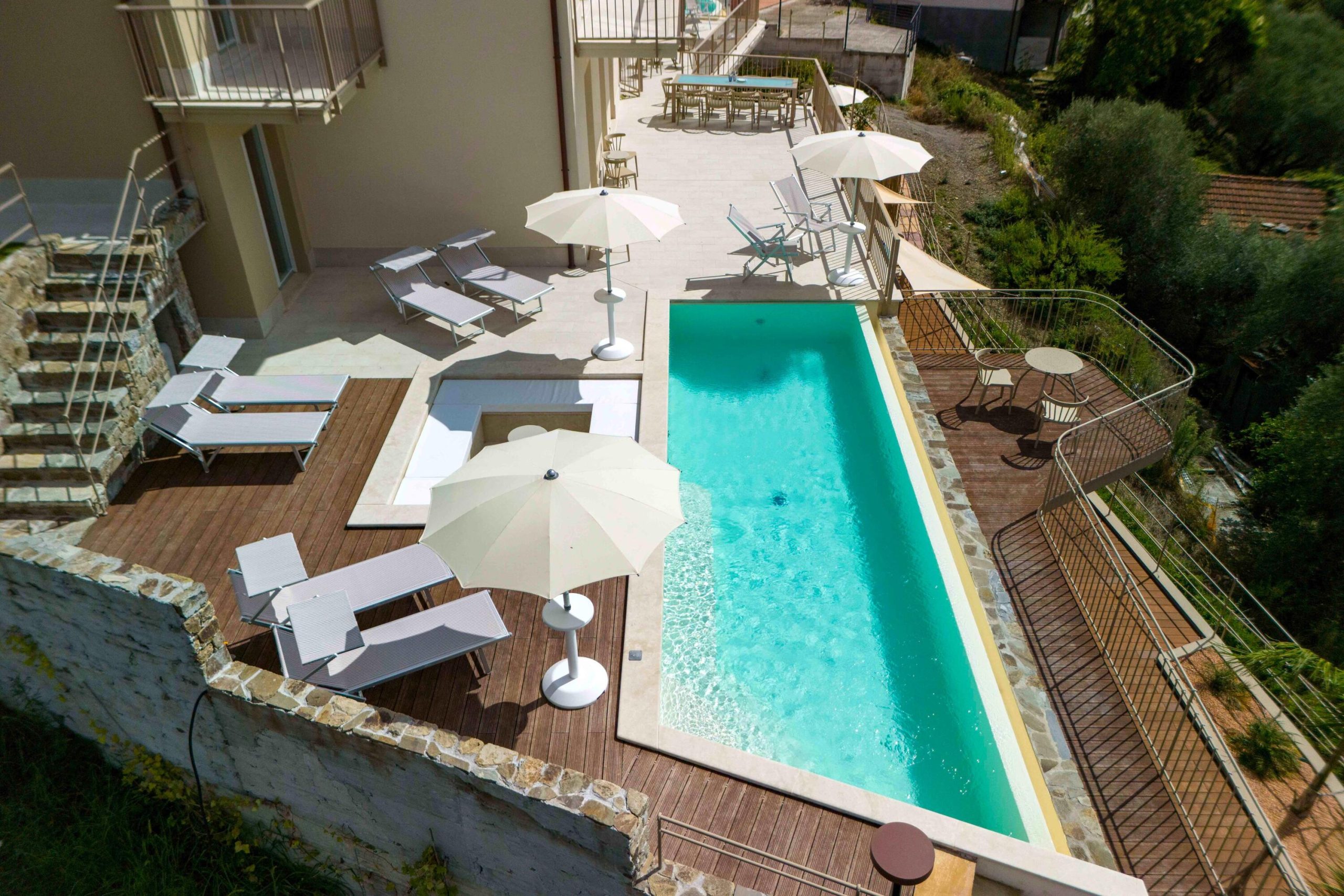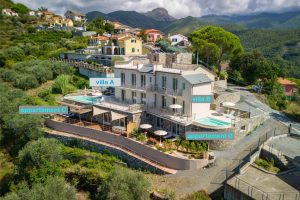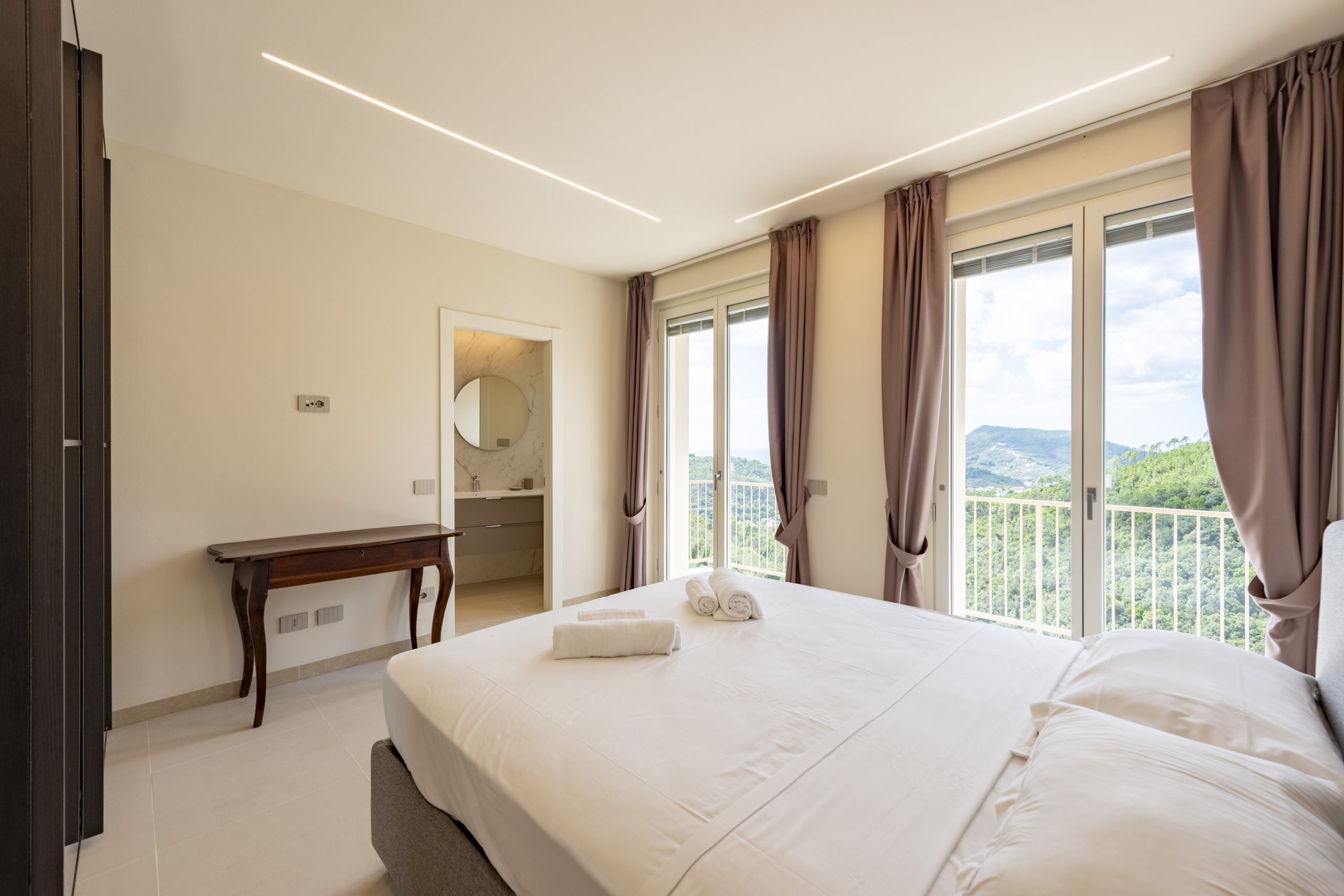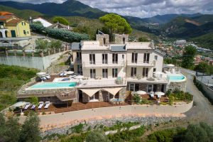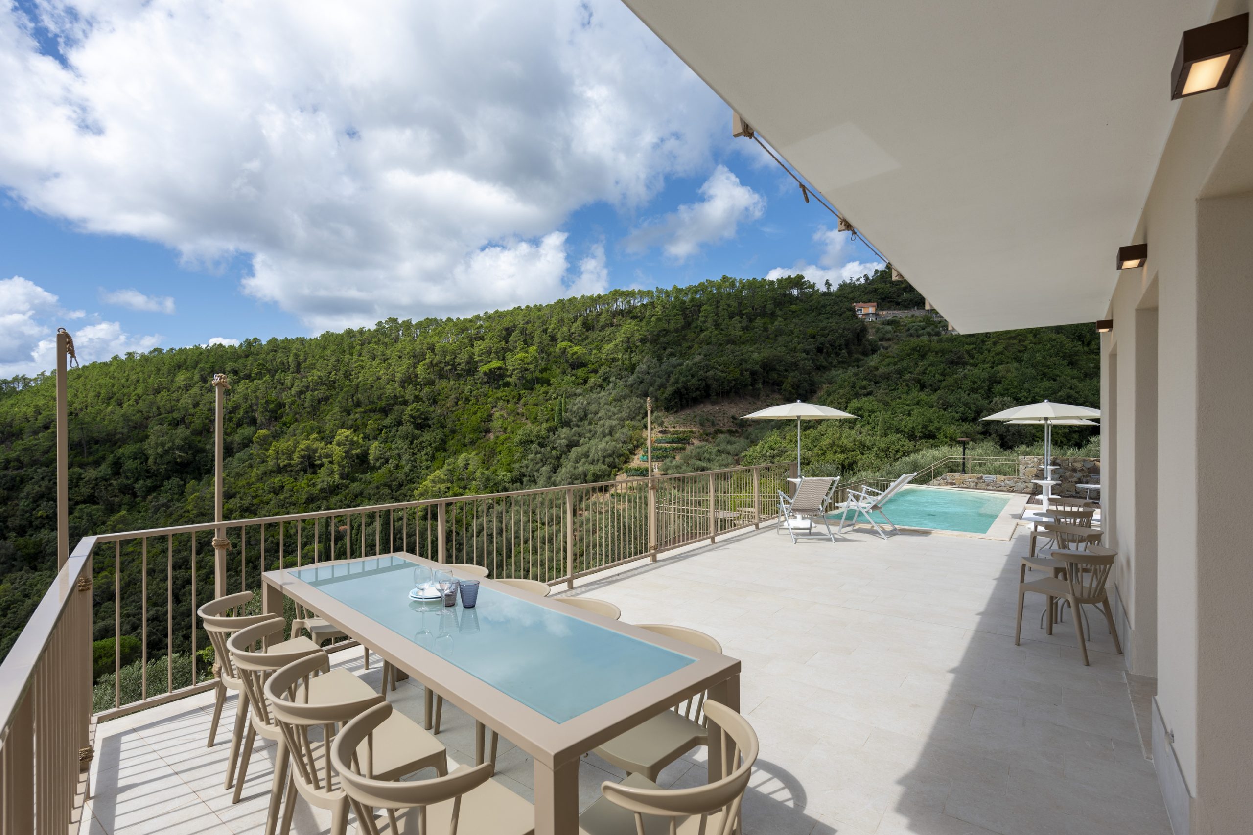 Onderdeel van een recent gebouwd villacomplex – een luxe residence, tegen de heuvel aangebouwd en onderverdeeld in vier zelfstandige villa’s: Twee op de boven- en twee op de benedenverdieping. Die op de bovenverdieping elk twee verdiepingen hoog, zijn elk uitgevoerd met een eigen zwembad. Casale Dagone is éen van deze villa’s op de bovenverdieping, de grootste met plaats voor negen gasten en met ook het grootste terras en zwembad. Genietend van een vrij uitzicht met de zee in de verte, is Casale Dragone ideaal gelegen om dit deel van Ligurië te verkennen. Met het levendige Sestri Levante en het strand op slechts vijf kilometer. En voor de dagelijkse boodschappen en een restaurant, een klein dorpje op loopafstand waar elke dinsdagochten een boerenmarkt wordt gehouden.