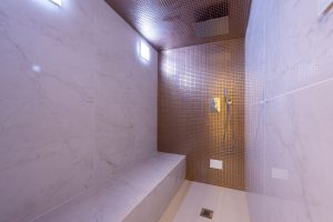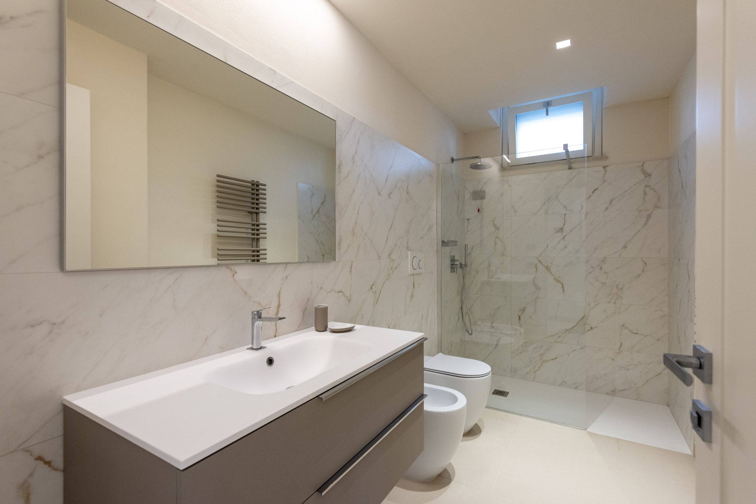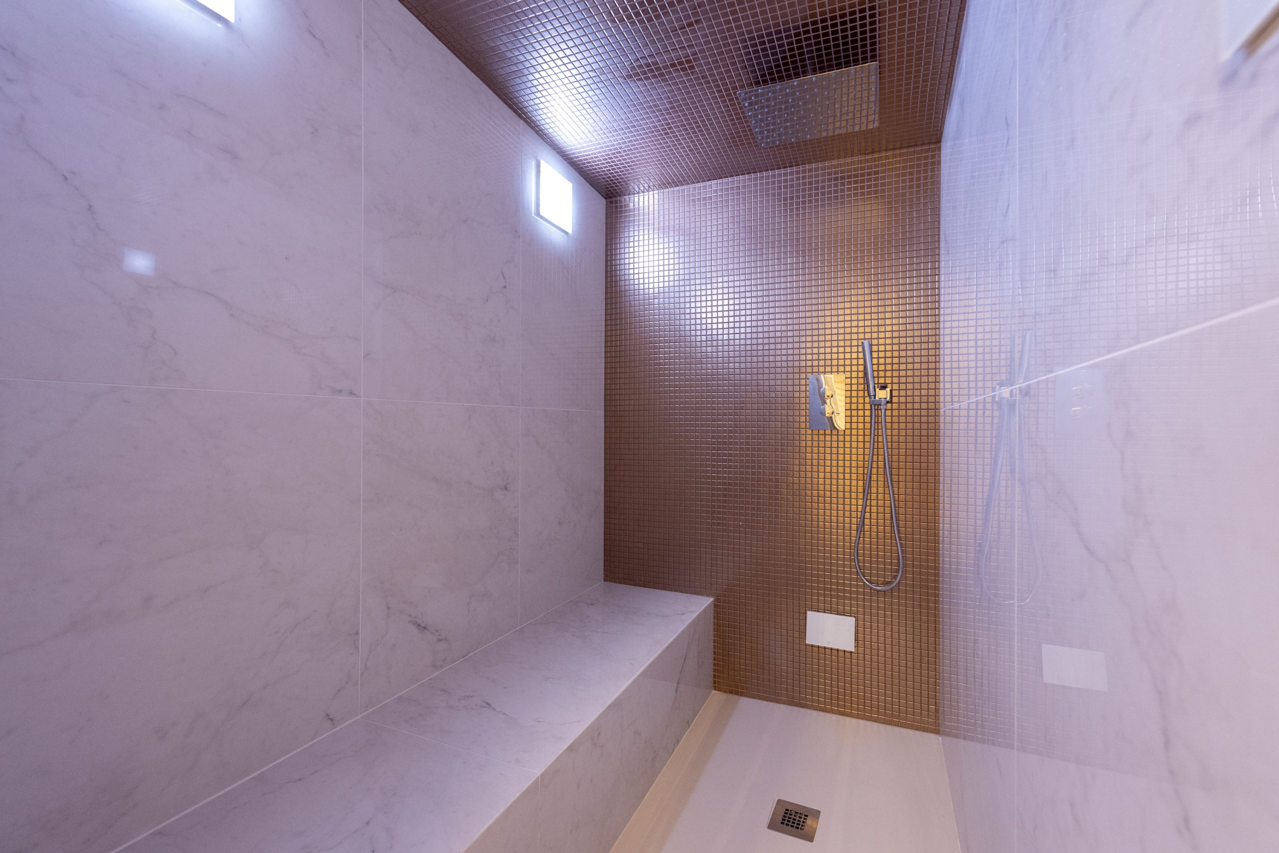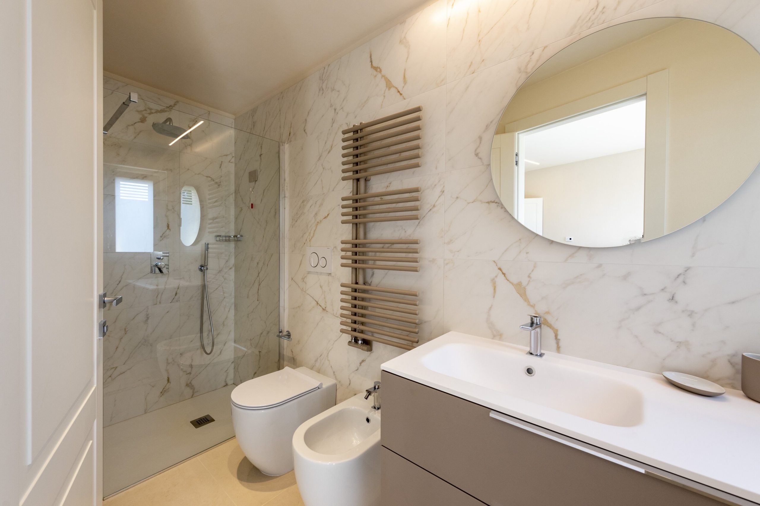 badkamers, alle ensuite, daarnaast heeft een van de slaapkamers op de bovenverdieping een vrijstaand bad.