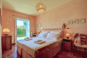 slaapkamers waarvan 1 eenpersoons. Alle kamer met uitgang naar de tuin, met airco.