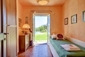 Met twee tweepersoons en een eenpersoons slaapkamer, biedt Casale Pietrafredda ruim plaats aan maximaal vijf gasten. Verdeeld over twee verdiepen, liggen de woonvertrekken van Pietrafreddda op de bovenverdieping, terwijl de drie slaapkamers allemaal op de benedenverdieping liggen en alle drie uitkomen op de tuin met het zwembad.