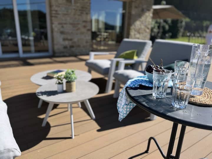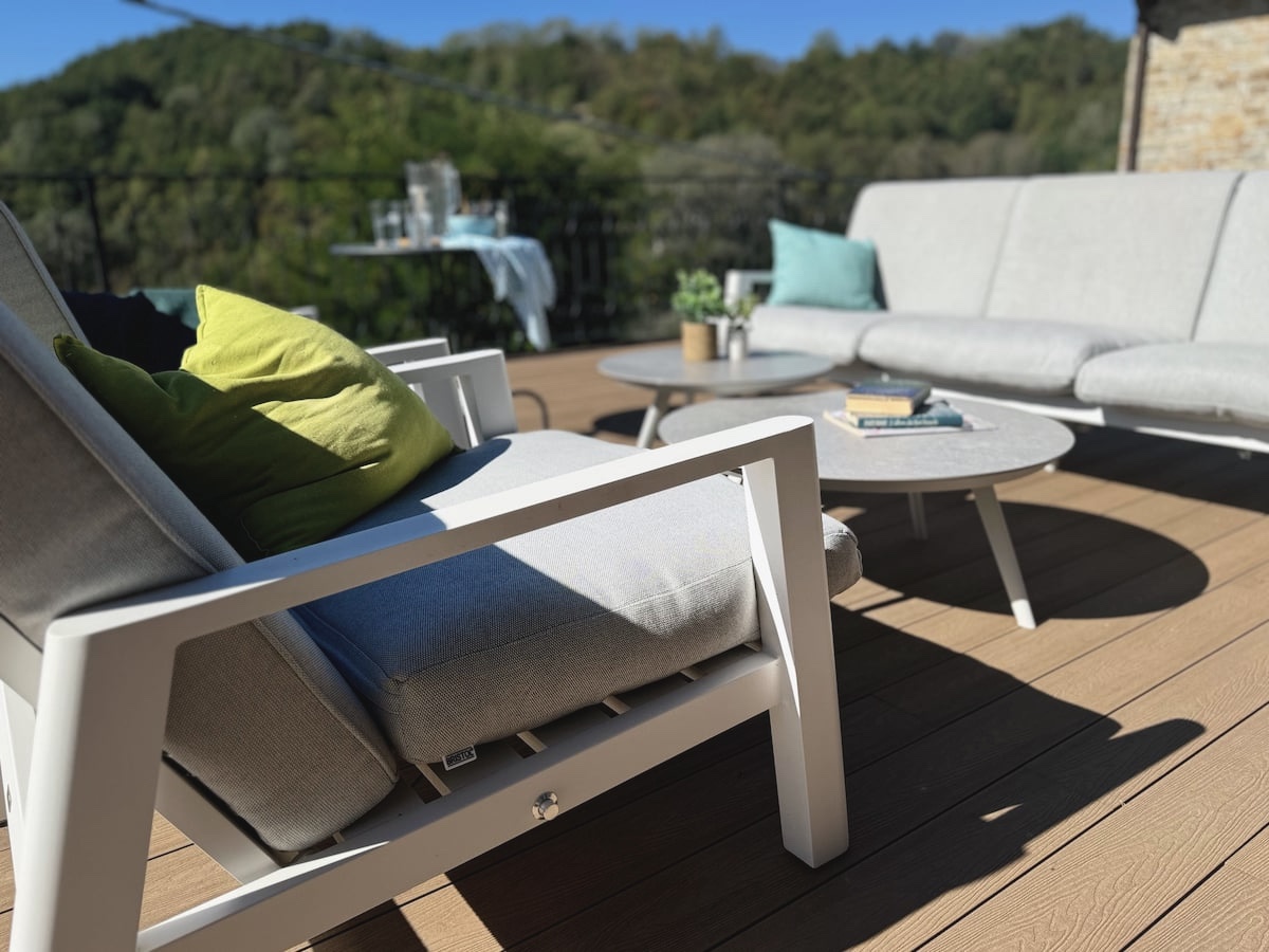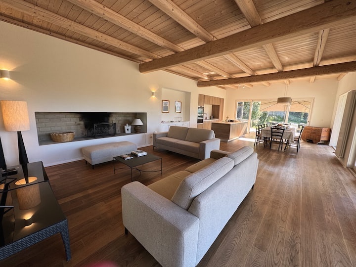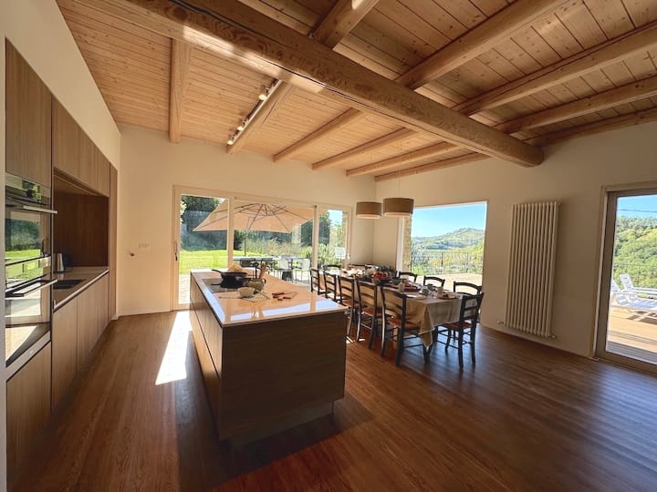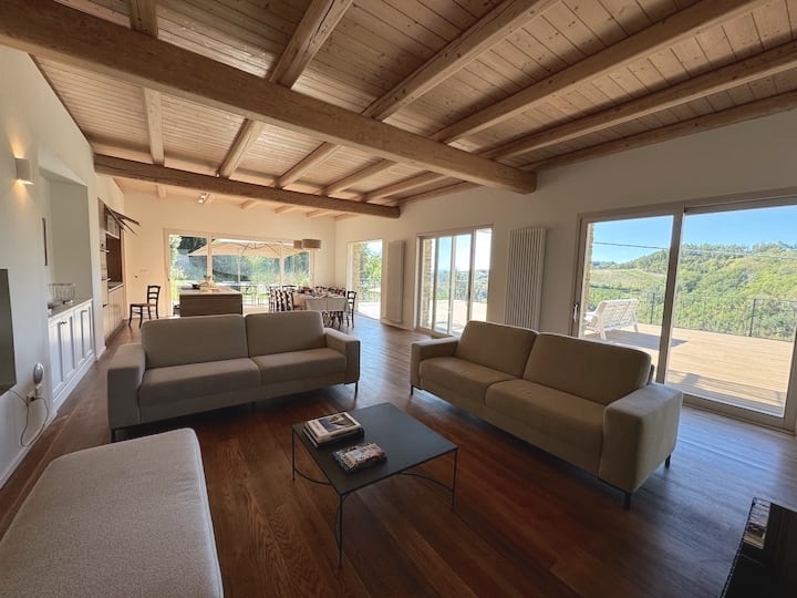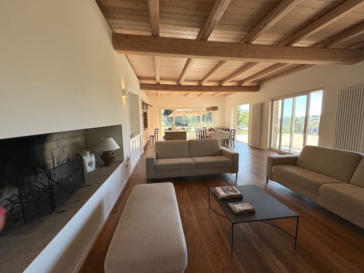 Wat een mooie, strakke lijnen! Casale Roncana is een speels ontworpen, moderne villa die zich over drie verdiepingen uitspreid. Met zowel op de begane grond als de eerste verdieping twee grote livings en op de zolderverdieping een mooie loft-ruimte, is dit een ideaal ingedeelde villa voor wie met meerdere families vakantie wil vieren.