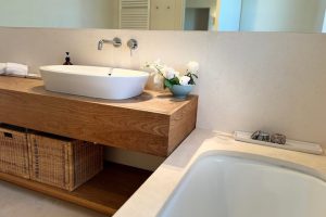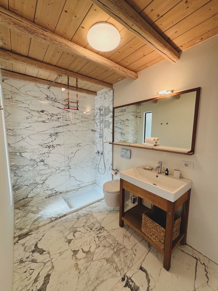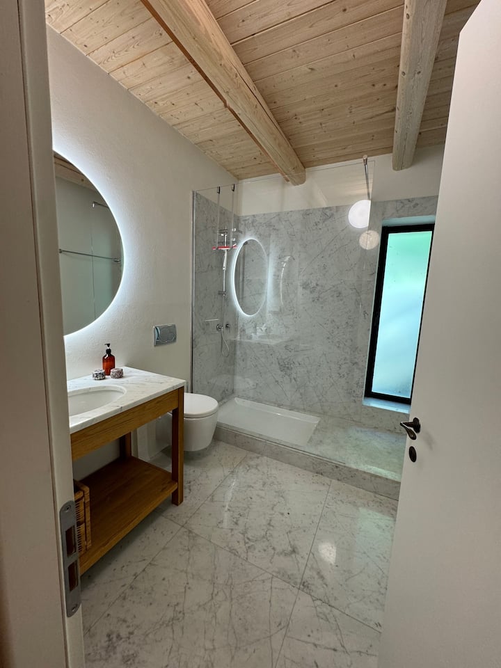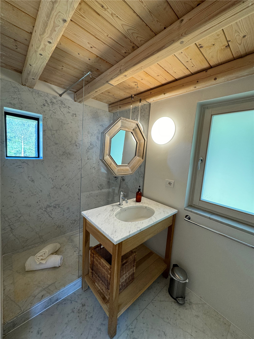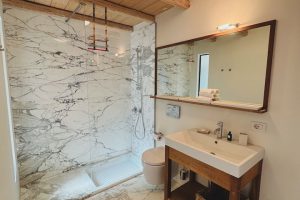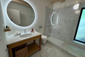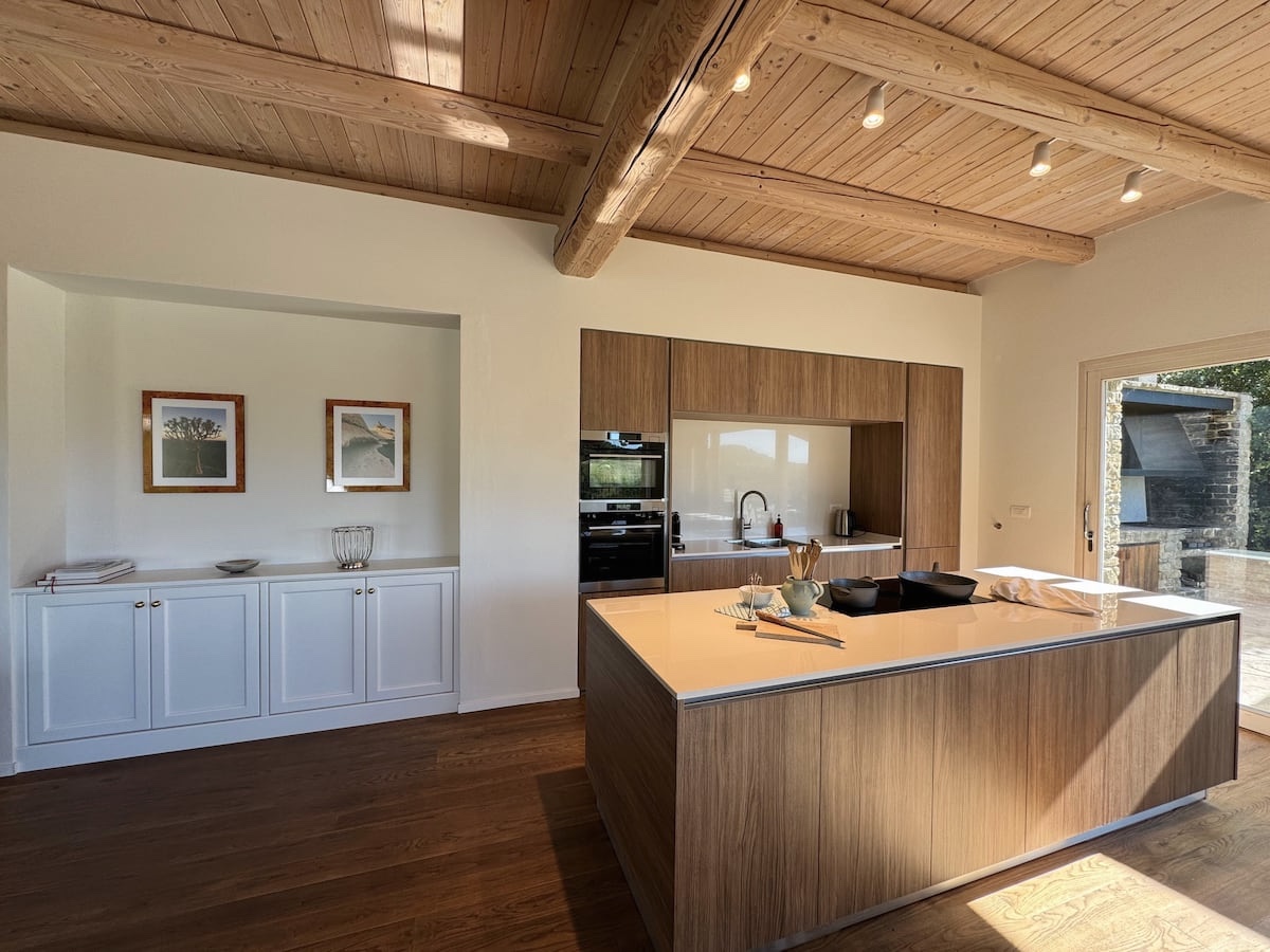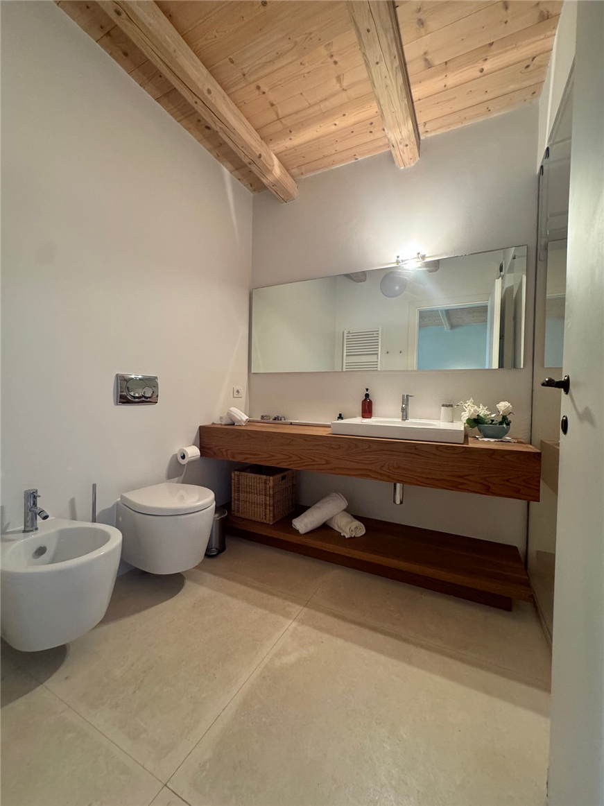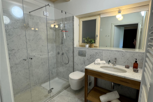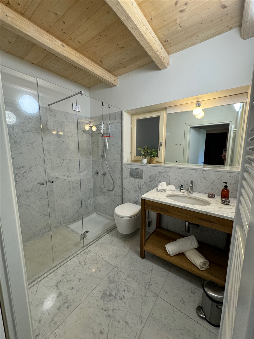 Zodra je over de drempel van Casale Roncana stapt, wordt je begroet door een open en gastvrij interieur. Op de begane grond gaat een ruime woonkamer naadloos over in een moderne keuken die is ontworpen voor gezamenlijke maaltijden en gezelligheid. Elk van de drie slaapkamers op dit niveau heeft een eigen badkamer. Een trap omhoog leidt naar ene tweede, lichte en ruime woonkamer met gewelfde houten plafonds. Deze ruimte, compleet met een tweede volledig uitgeruste keuken en een zonneterras, nodigt uit om te ontspannen en te genieten van de natuurlijke schoonheid van de omgeving. Verder bevinden zich hier twee en-suite slaapkamers terwijl de loft op de derde verdieping de zesde slaapkamer, gezellige woonkamer, een kleine keuken en badkamer biedt – ideaal voor diegenen die op zoek zijn naar extra privacy.