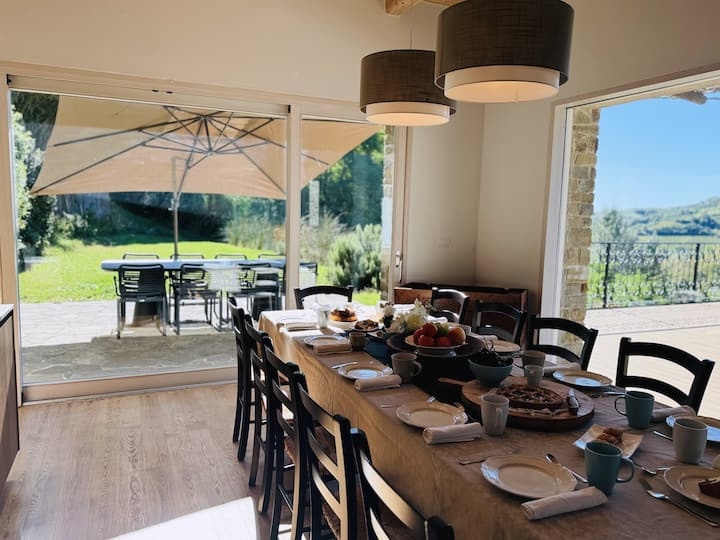 Hoewel heerlijk vrij gelegen op het platteland, is er op slechts drie kilometer een klein maar pittoresk burcht dorpje te vinden. Iets verder rijden, op zo’n 7 km, ligt het levendige Bistagno terwijl op een kleine 15 km het termenstadje Acqui Terme te vinden is. Wie van wandelen of fietsen houdt, kan vanuit de villa tal van tochten ondernemen die de schoonheid van deze streek ten volle tonen.