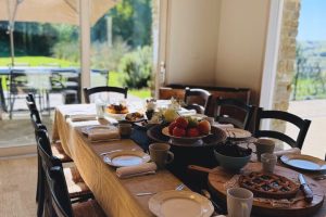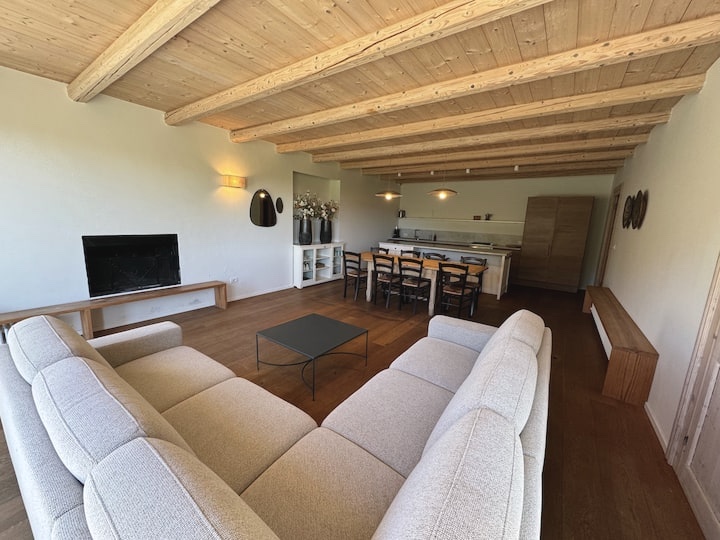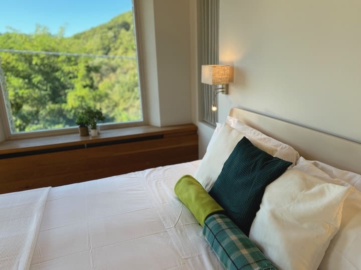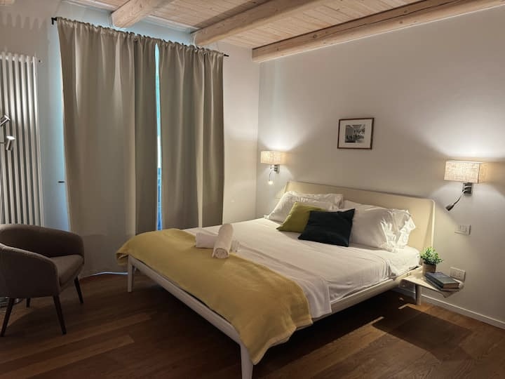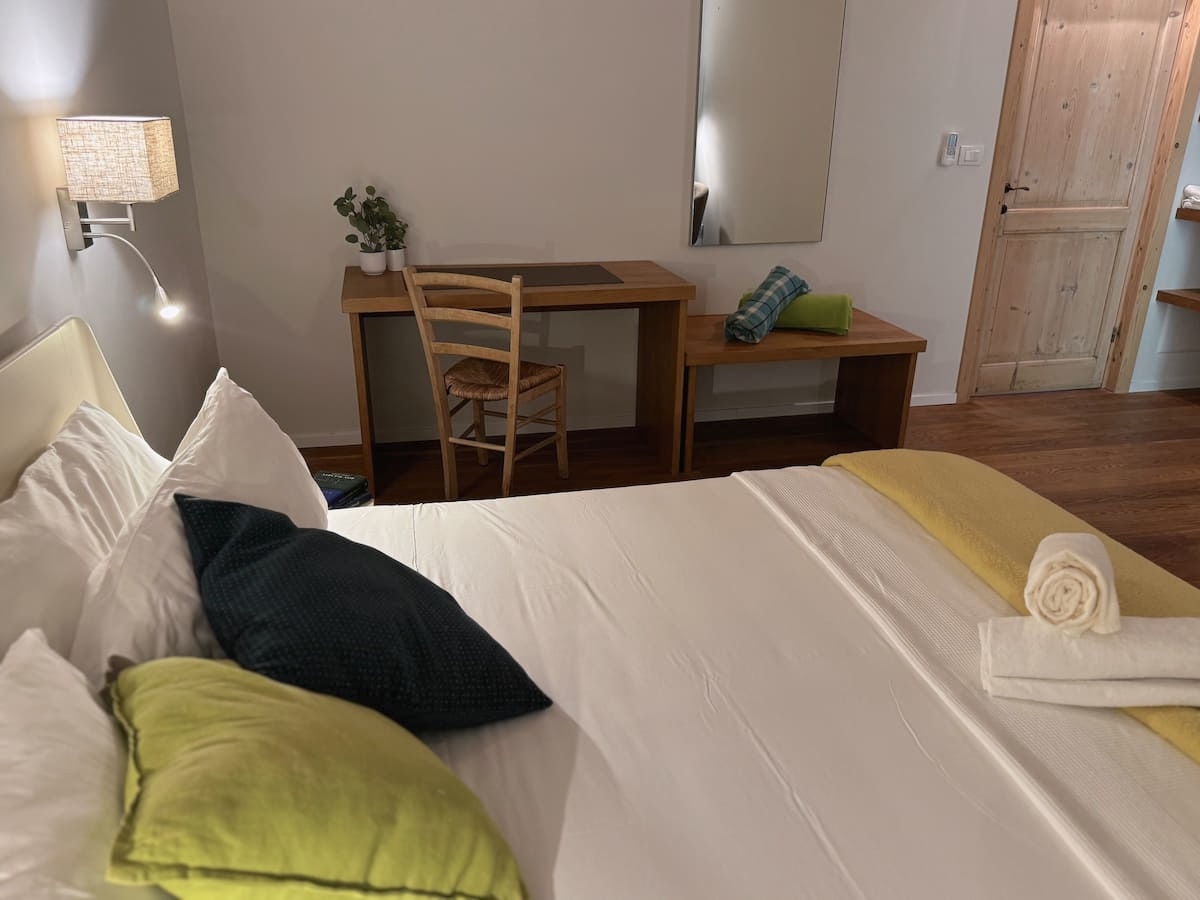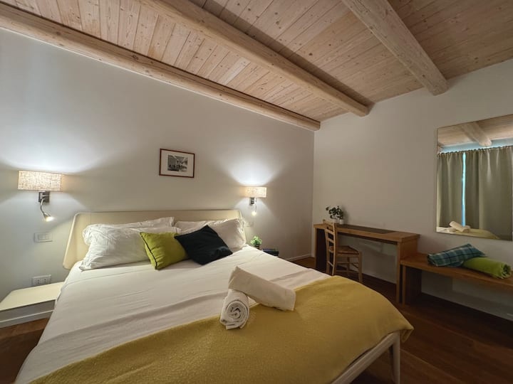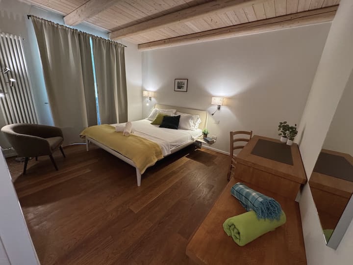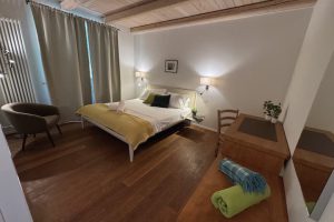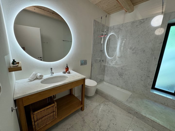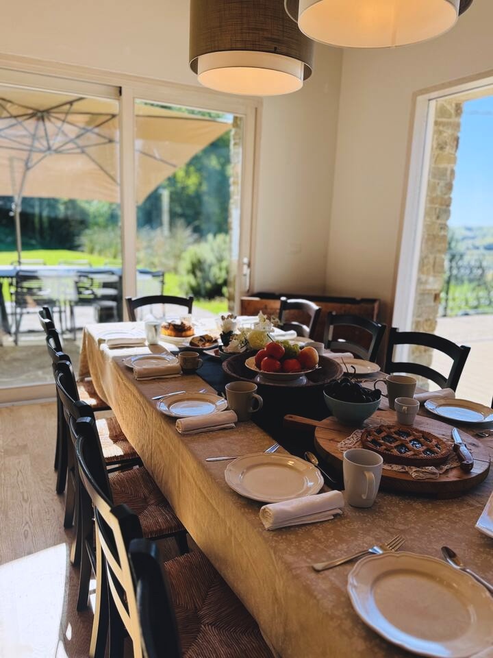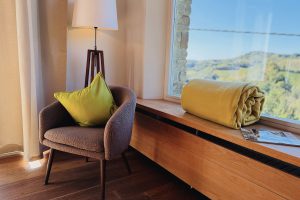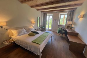 Vanuit elke hoek van de villa brengen grote ramen het buitenleven naar binnen, met een ononderbroken uitzicht op de glooiende wijngaarden die zich uitstrekken zover het oog kan zien. Of u nu geniet van het ontbijt op het terras, ontspant met een boek in de woonkamer of uitkijkt vanuit het comfort van uw bed, Casale Roncana geeft het gevoel dat het levendige landschap van Piemonte deel uitmaakt van het huis zelf.
