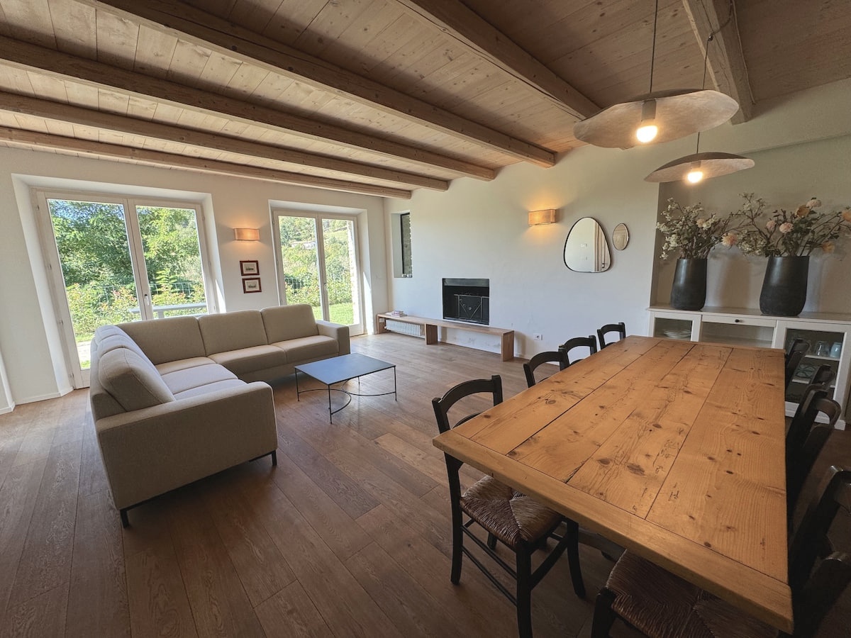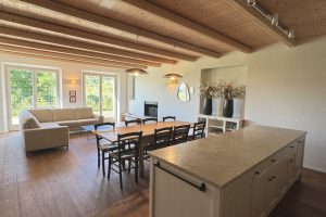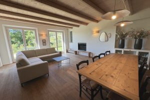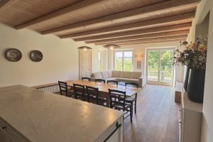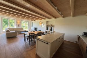 grote living met schuifpui naar terras in de tuin, tweede living op beneden verdieping en kleine living op zolderverdieping