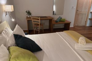 slaapkamers waarvan 1 met twee eenpersoons bedden: op de BG 3 slaapkamers. Op de 1ste verdieping 2 slaapkamers en op de 2de verdieping 1 slaapkamer.