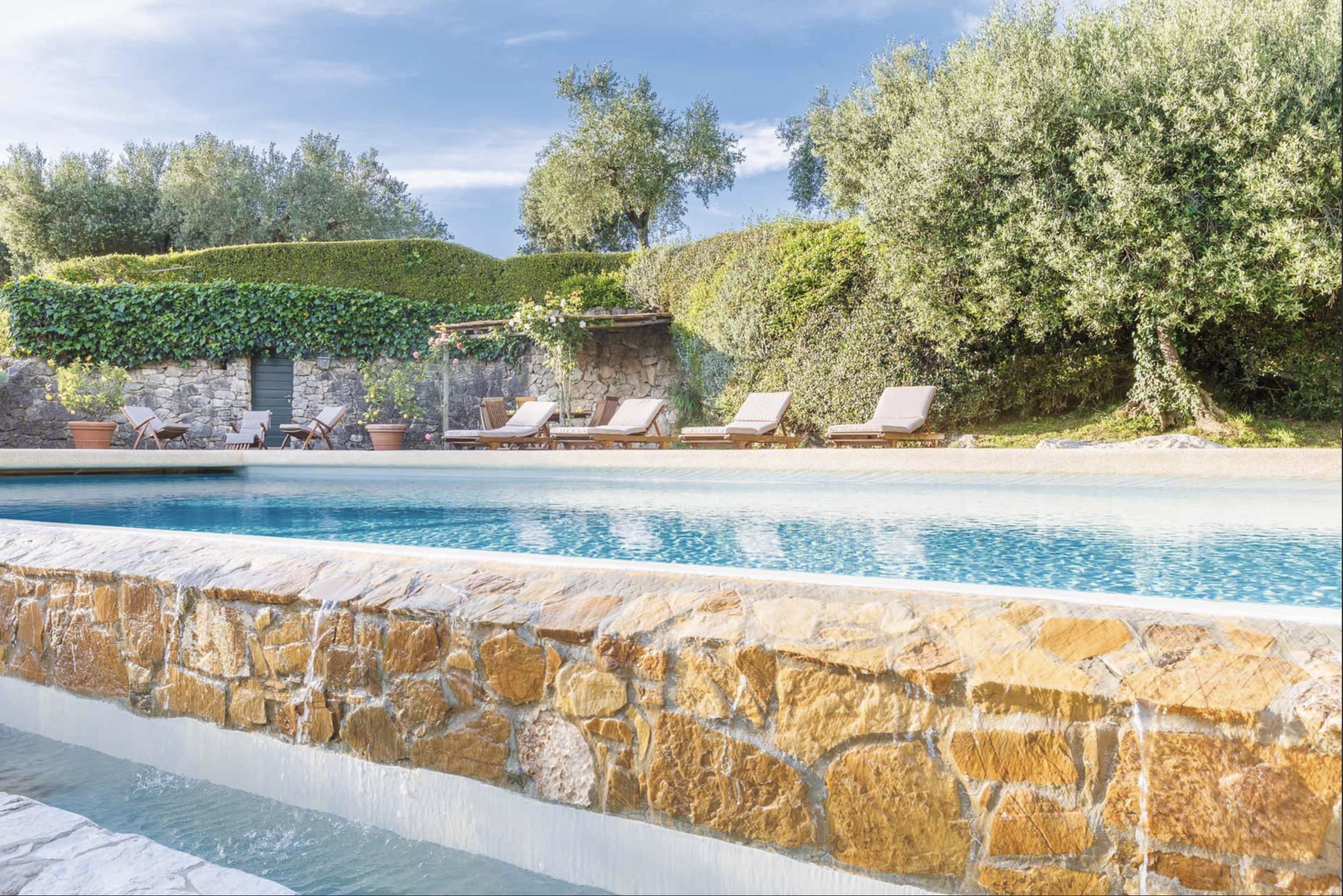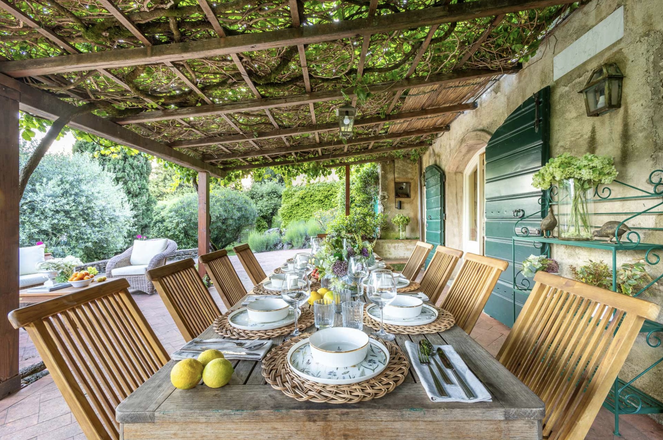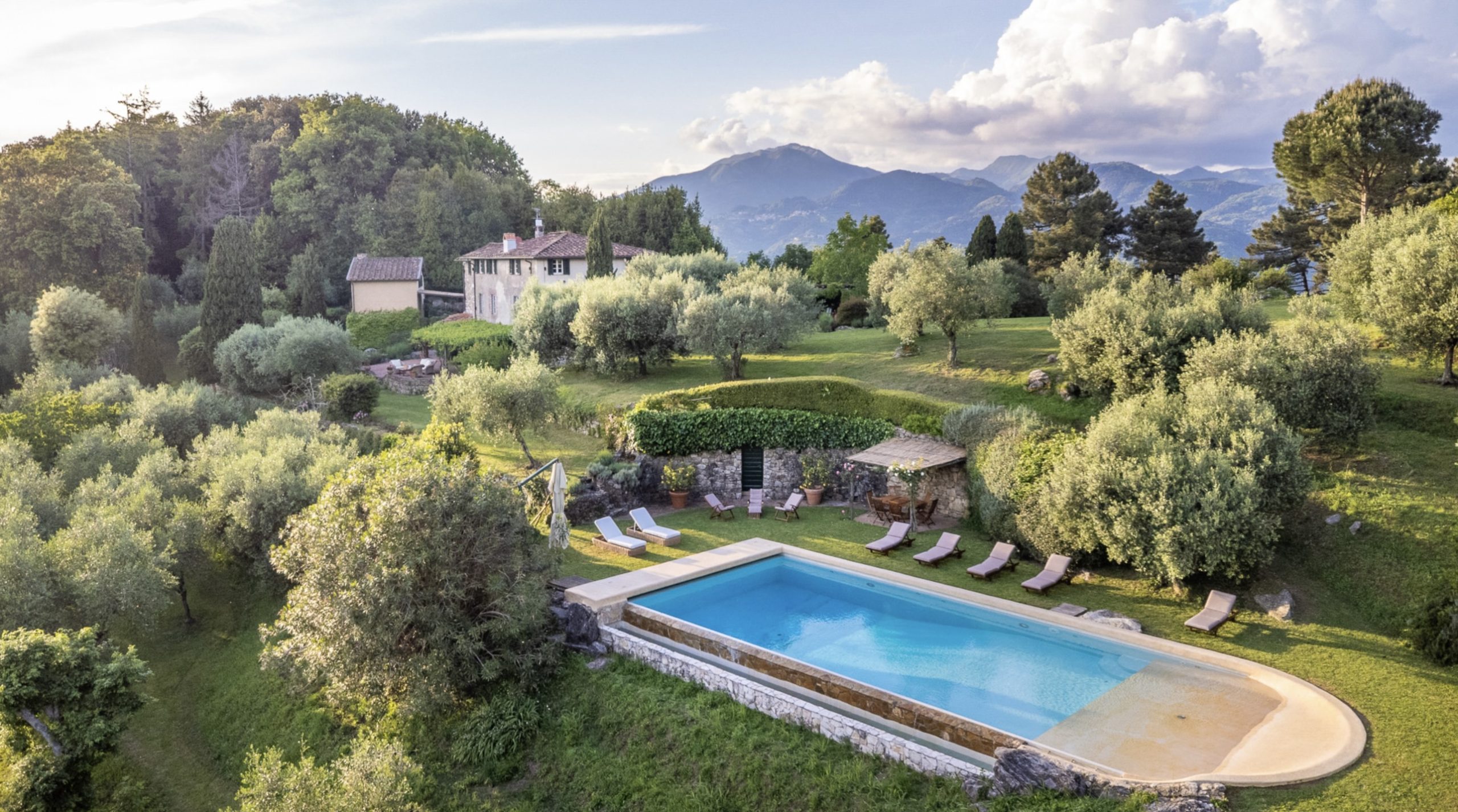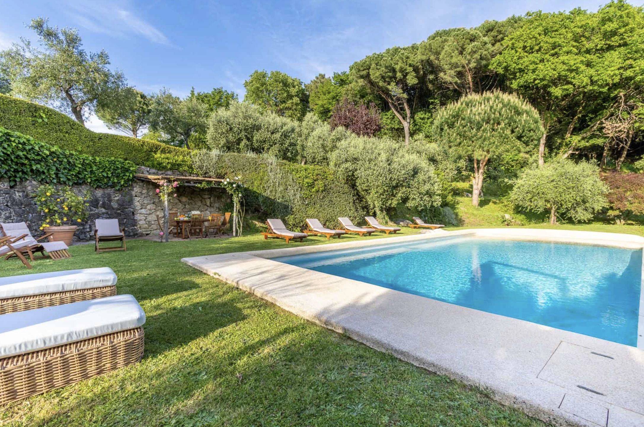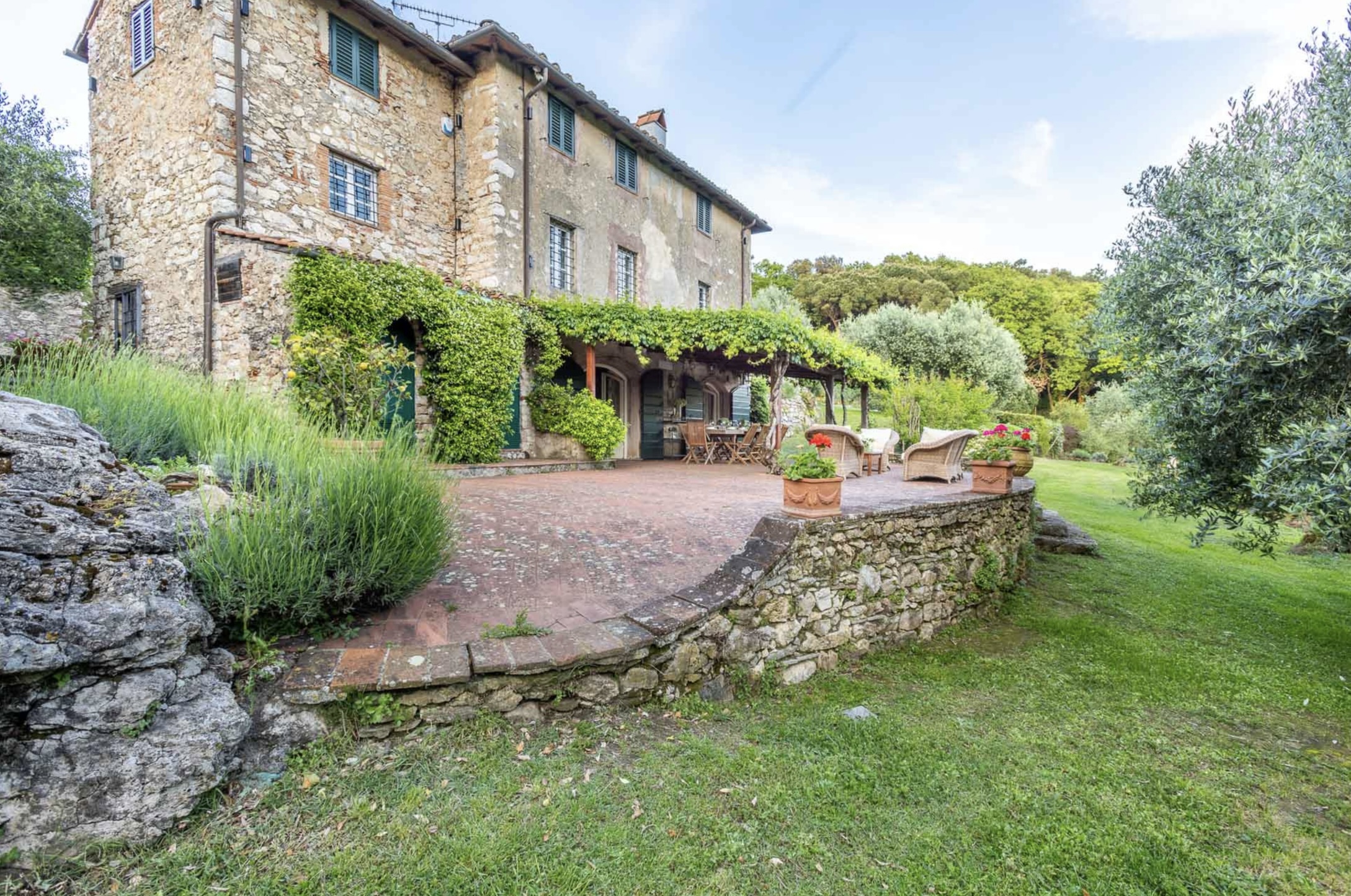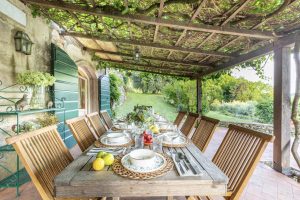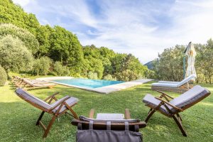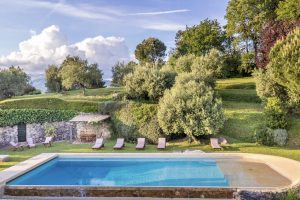 Naast het kloeke landhuis zelf, een villa in de beste traditie van de Lucchese villa’s rond de stad Lucca. Is ook de tuin van Casale Stabbiana een plaatje! Met een groot verhoogd terras voor de villa en op een lager niveau in de tuin het zwembad.