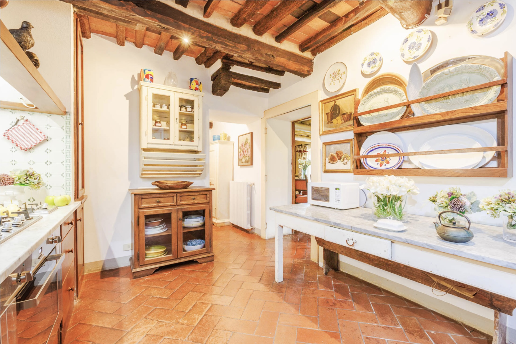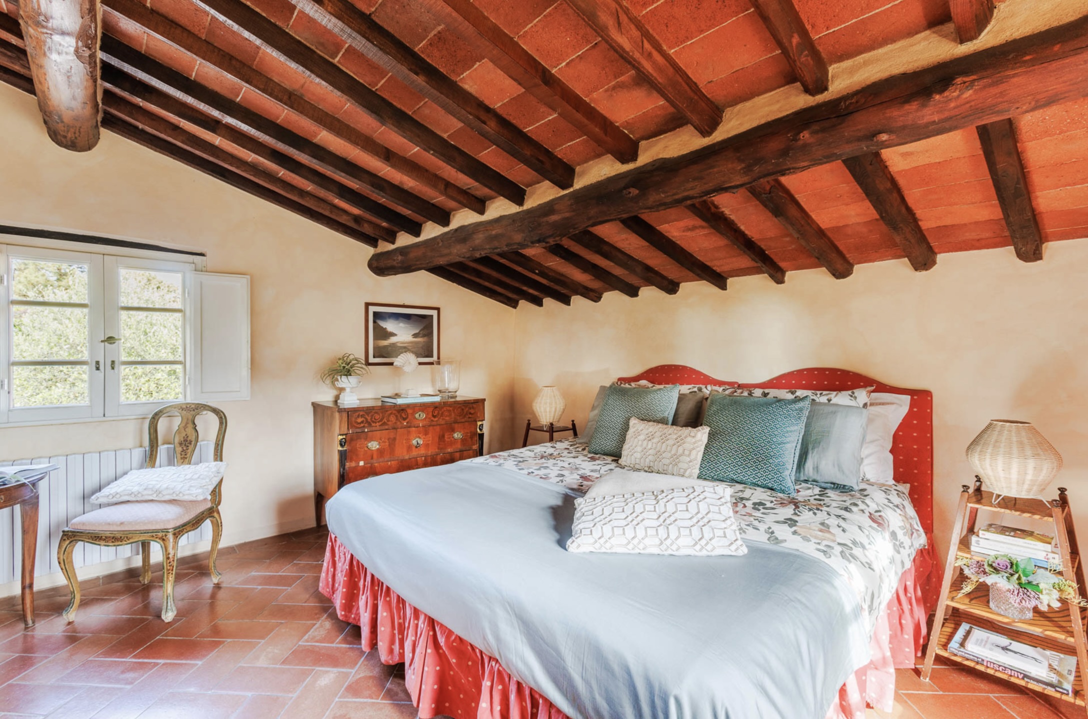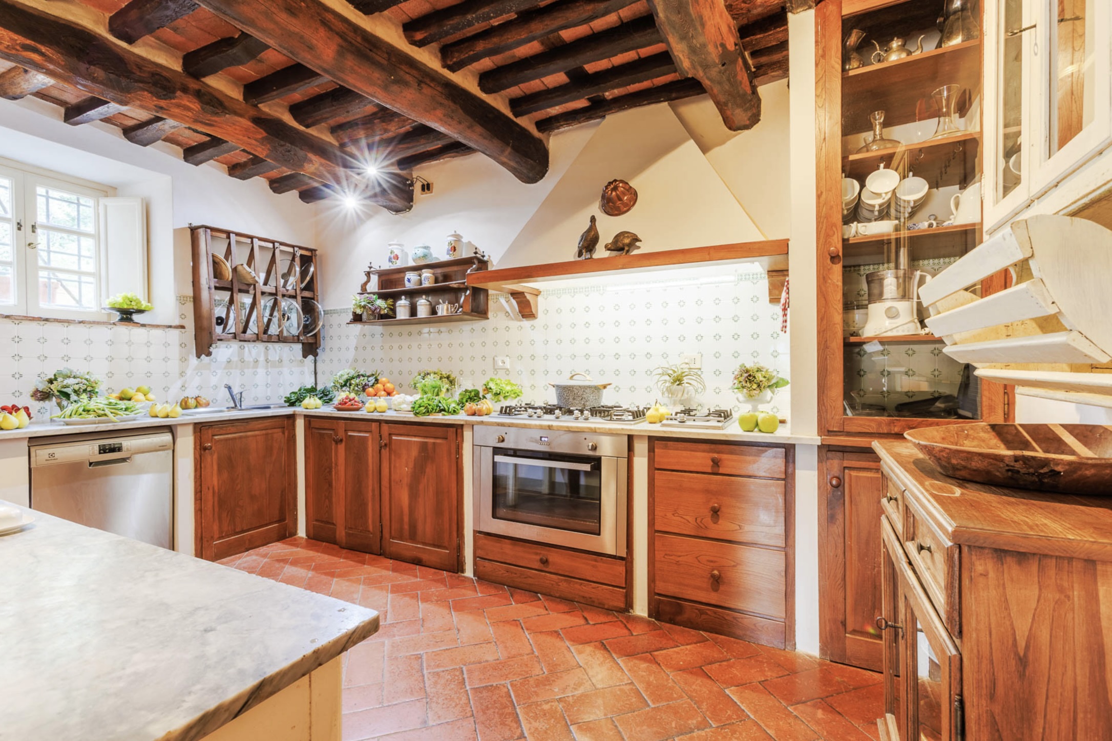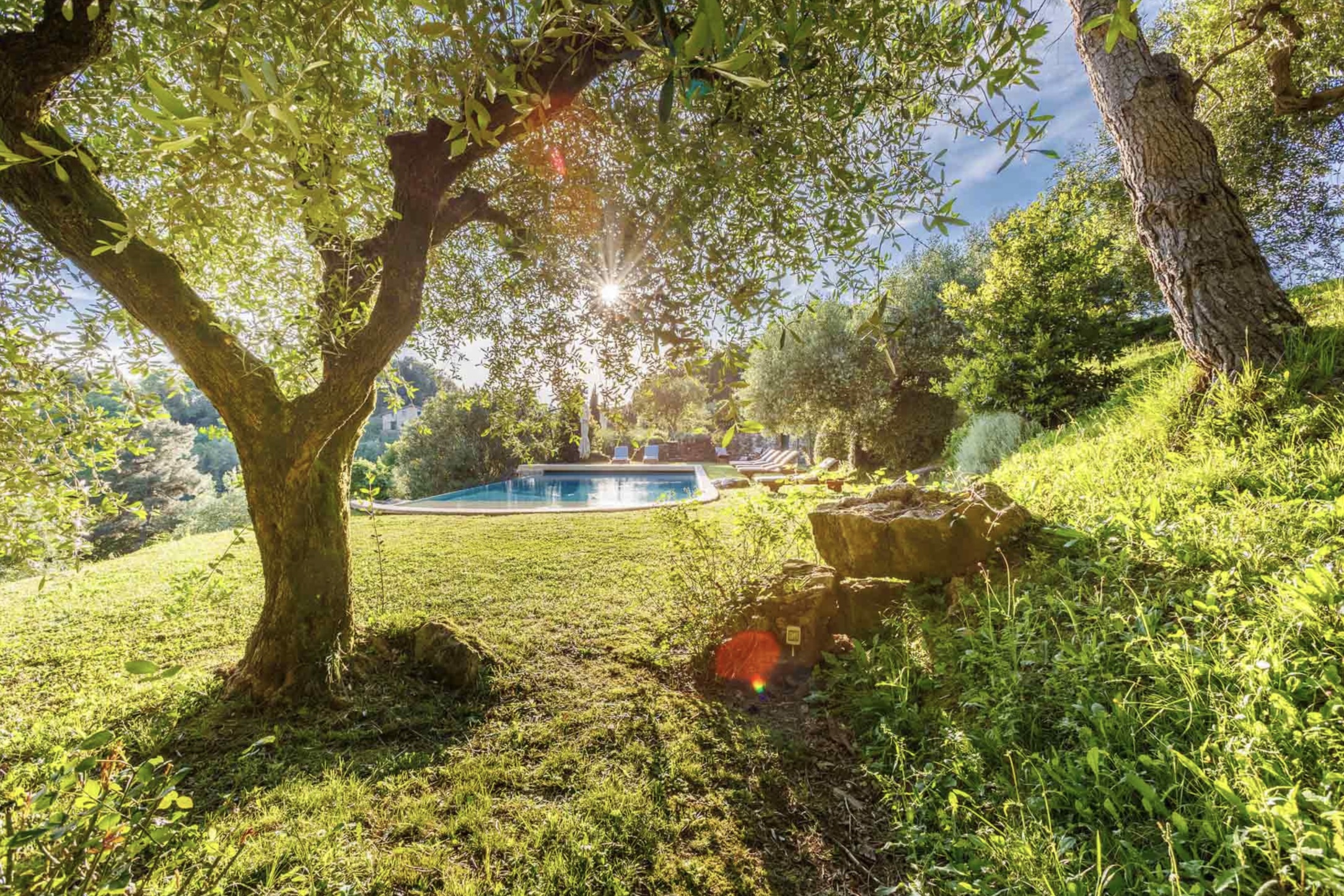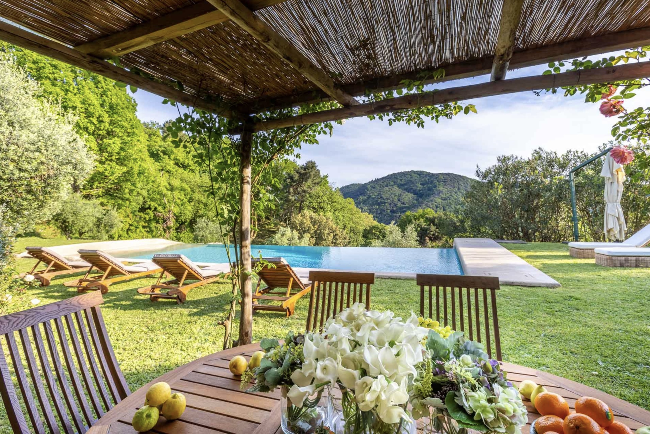 Naast het kloeke landhuis zelf, een villa in de beste traditie van de Lucchese villa’s rond de stad Lucca. Is ook de tuin van Casale Stabbiana een plaatje! Met een groot verhoogd terras voor de villa en op een lager niveau in de tuin het zwembad.