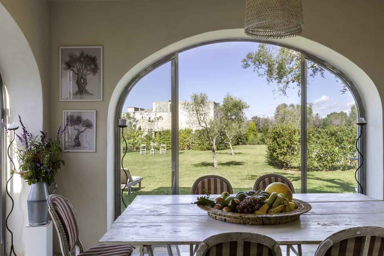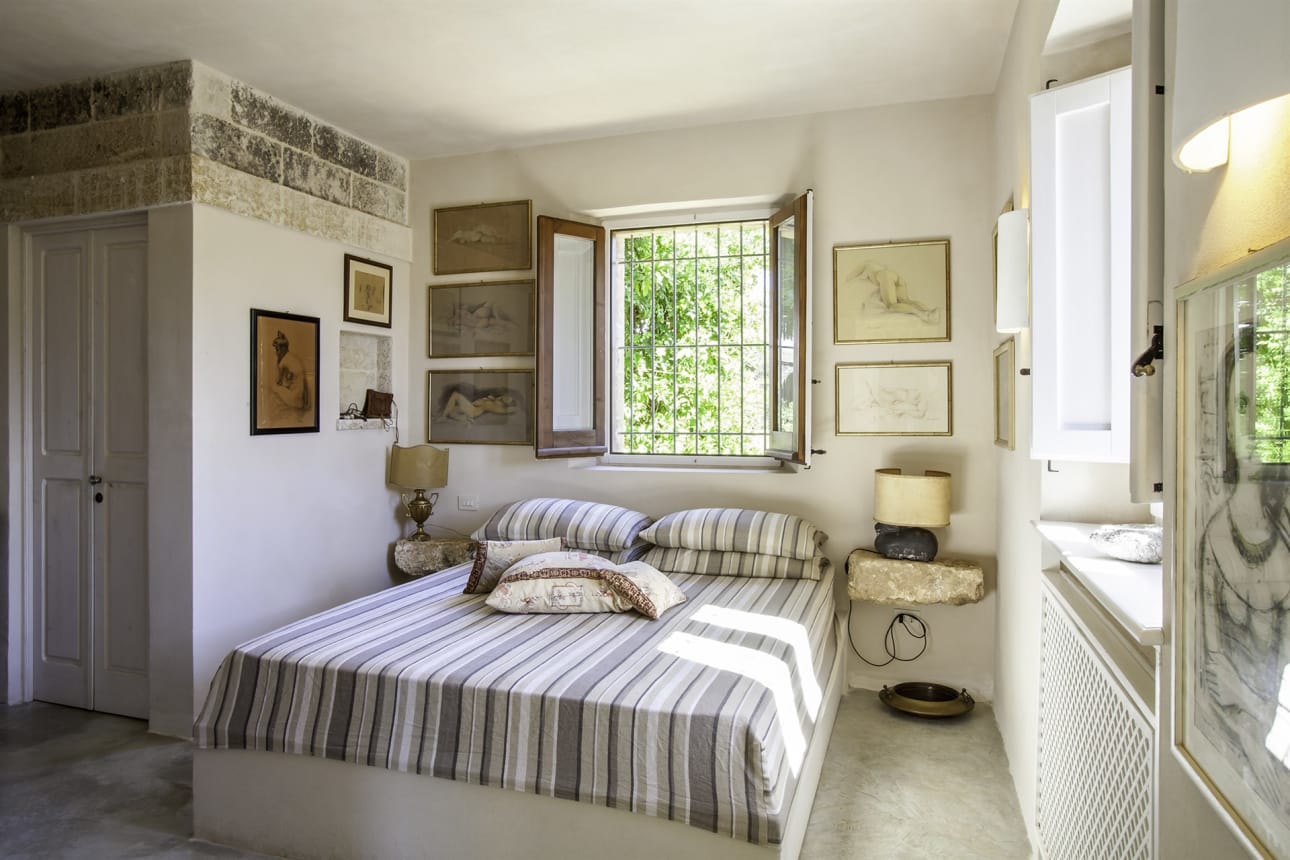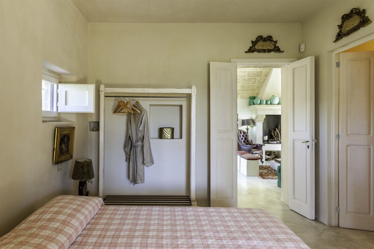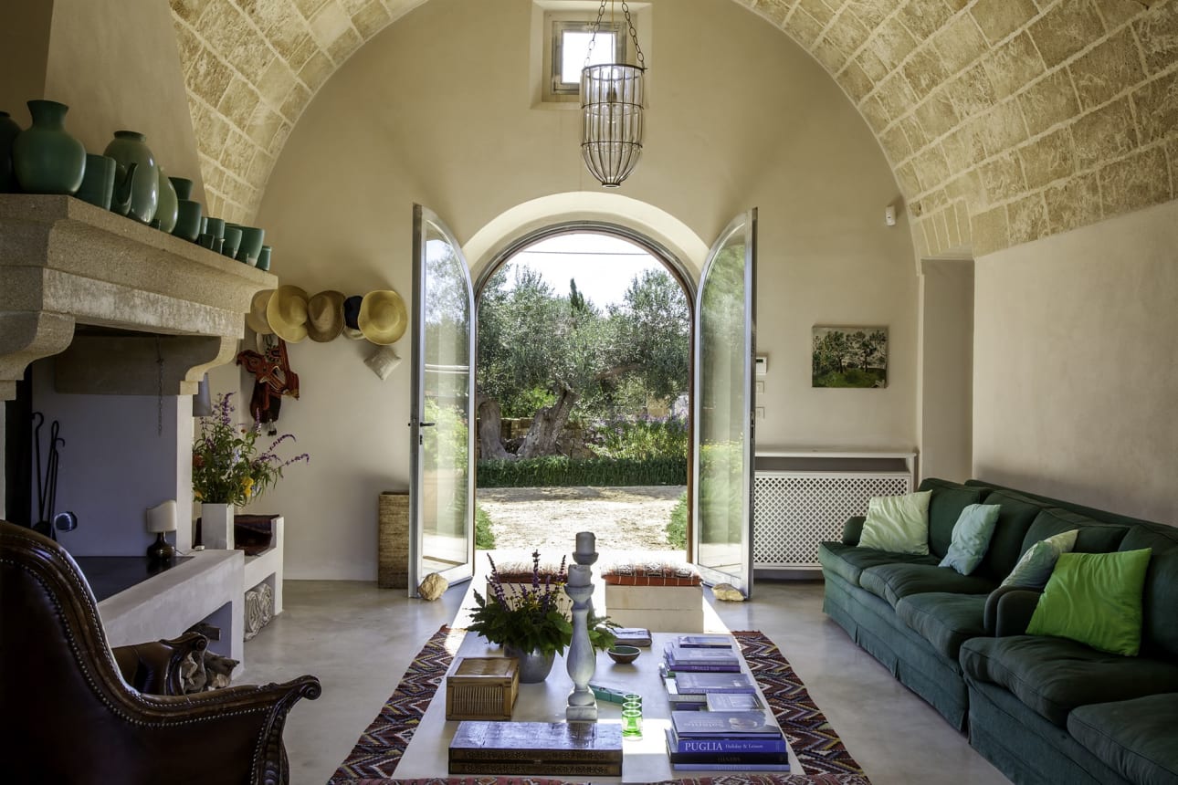 Lokale Apulische stoffen, antiek en traditionele tegelvloeren versmelten naadloos met hedendaagse kunst, gepolijste betonnen vloeren en rustiek-chique elementen, waardoor een perfecte balans tussen modern comfort, tijdloze charme en esthetische verfijning wordt gecreëerd.