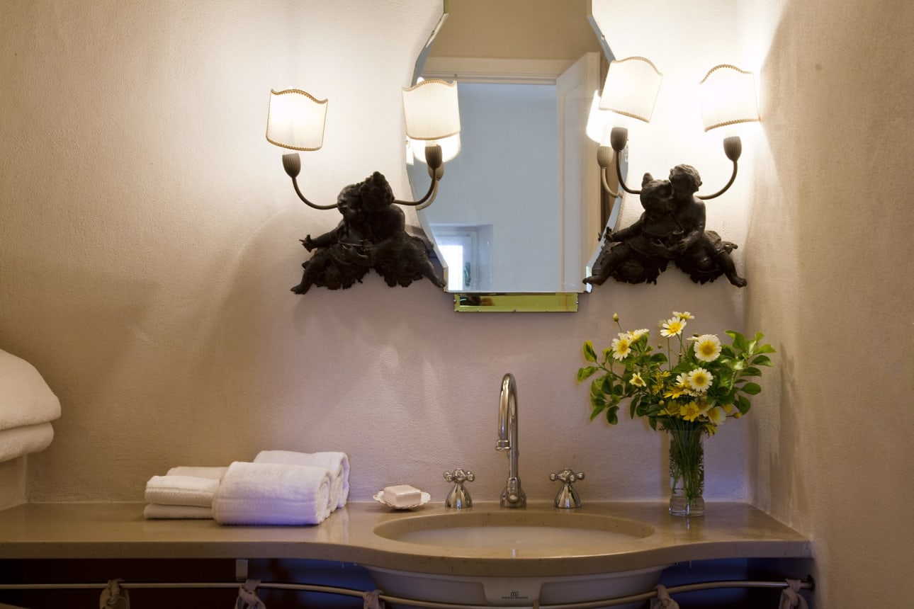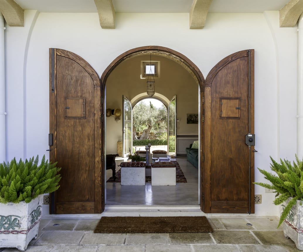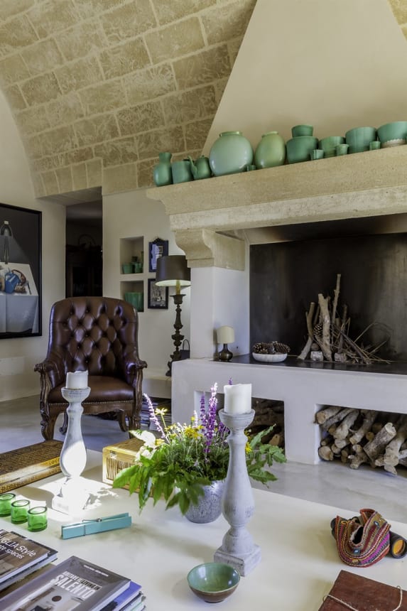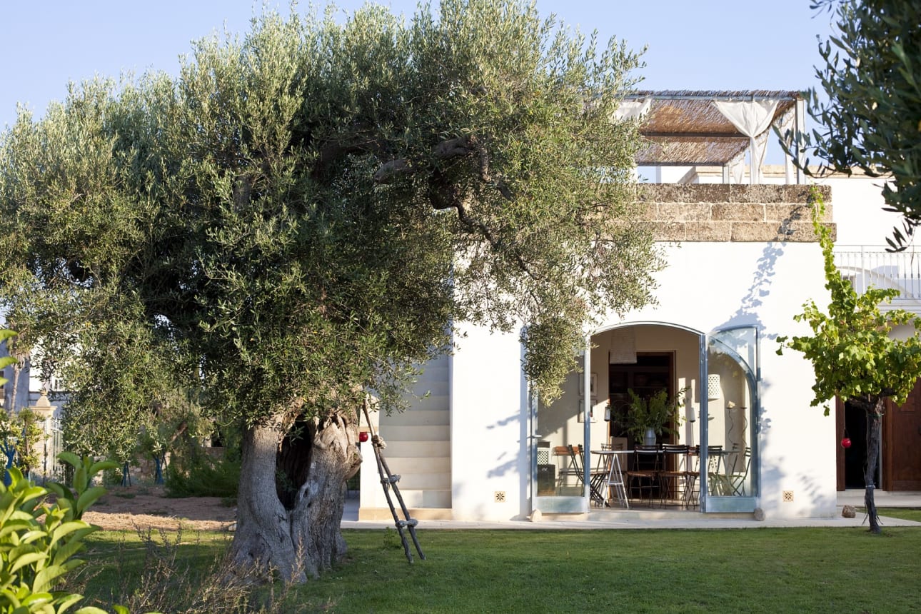 Lokale Apulische stoffen, antiek en traditionele tegelvloeren versmelten naadloos met hedendaagse kunst, gepolijste betonnen vloeren en rustiek-chique elementen, waardoor een perfecte balans tussen modern comfort, tijdloze charme en esthetische verfijning wordt gecreëerd.