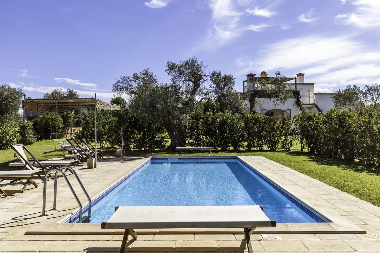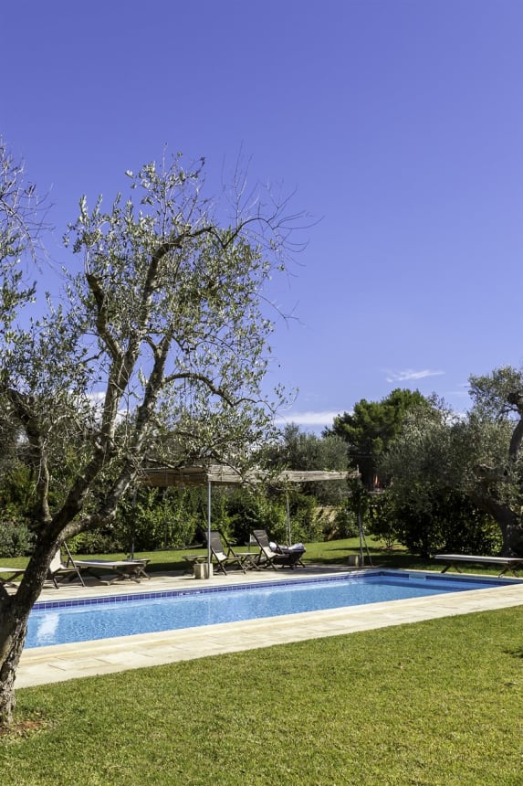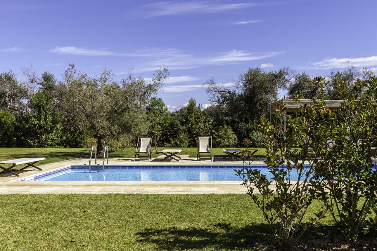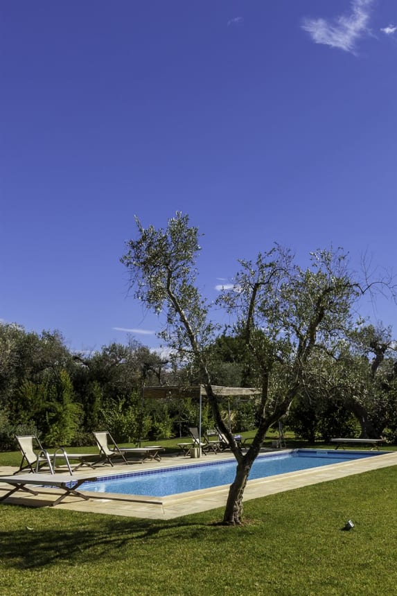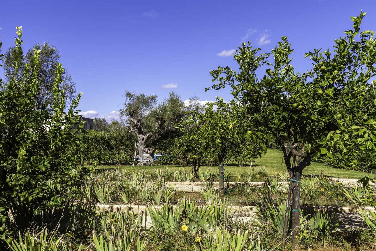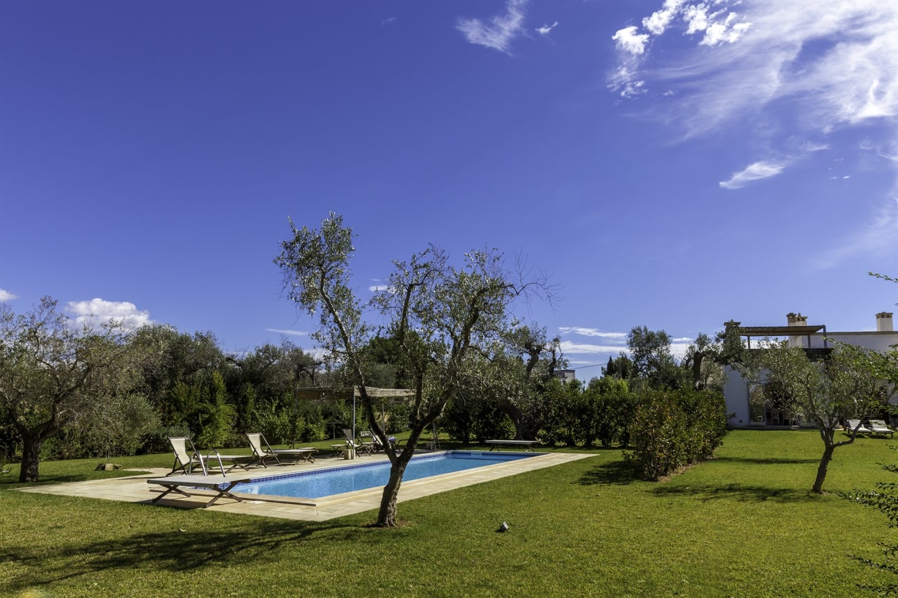 Casina Arrelana wordt omgeven door fraai aangeplante en onderhouden tuinen. Aan de voorkant is een geurige kruidentuin, met een verscheidenheid aan mediterrane planten en struiken. Aan de zijkanten en achterkant zijn grote partijen gazon aangelegd, afgewisseld met fruitbomen en eeuwenoude olijfbomen, die zich rond het zwembad staan.
