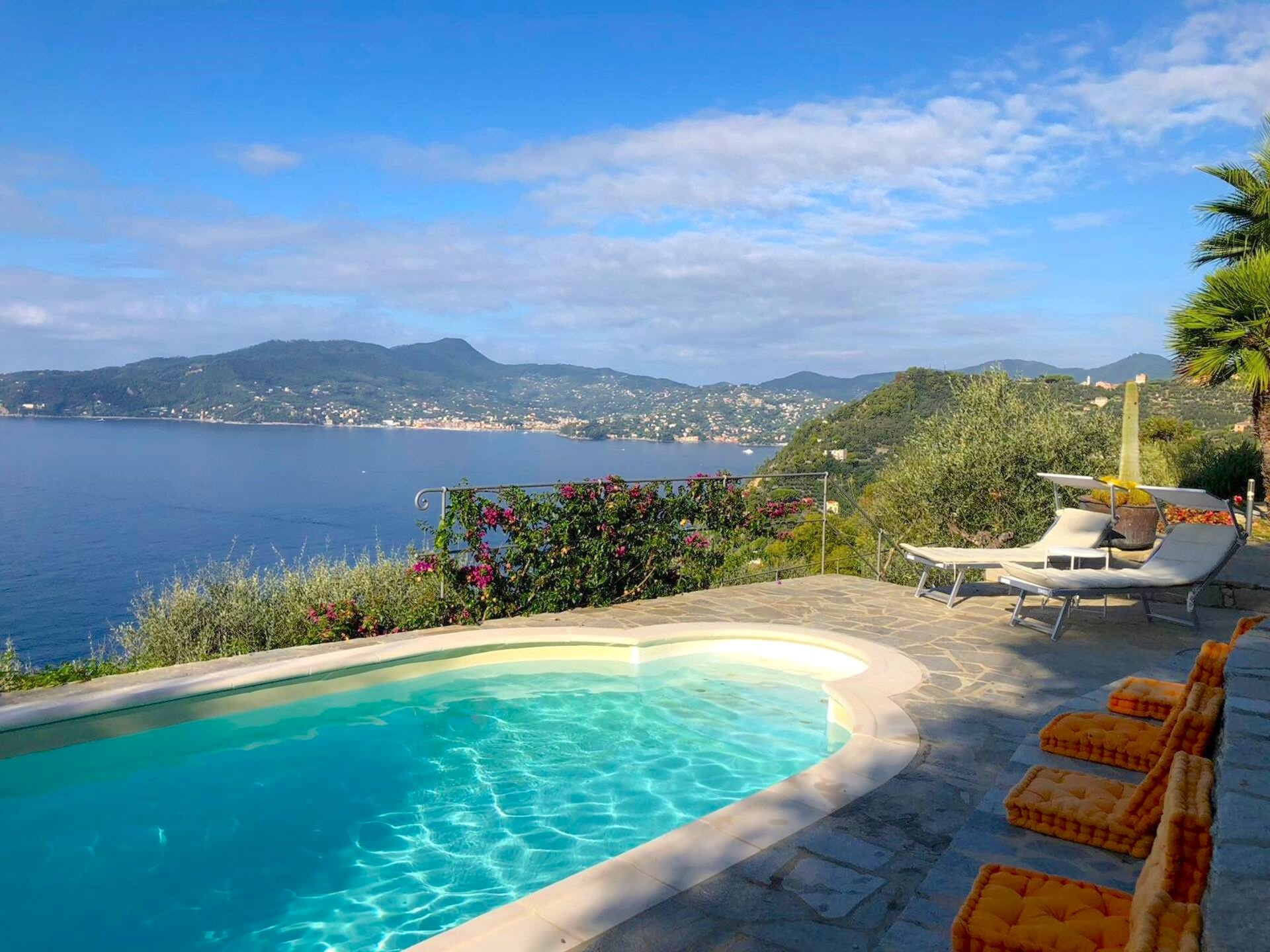 Iets boven het pittoreske Zoagli gelegen, in een klein gehuchtje vanwaar een looppad tussen de tuinen en huizen door naar zee loopt, is La Mediterranean een perfect appartement voor twee. Vanaf de openbare weg leidt een trap de heuvel af waar een aantal appartementen liggen. La Mediterranea ligt op het laagste niveau en heeft daarmee vrij uitzicht op zee. Sowieso garandeert de trapsgewijze bouw tegen de heuvel met direct voor het huis een groot overdekt terras, dat elk appartement van een maximale privacy geniet.