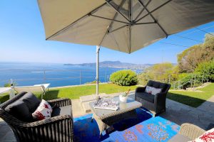 La Méditerranée zo blauw zo blauw … De melodie van dit liedje, een ode aan het zoete leven aan de Mediterraanse Zee, schiet je te binnen zodra je de tuin van La Mediterranea inloopt. Want wat een heerlijkheid, wat een uitzicht op zee heb je hier! En niet alleen vanaf het overdekte terras voor het appartement of liggend op een zonnebed. Maar pas echt top is het om liggend in de jacuzzi buiten, al bubbelend, samen een glas te heffen op la dolce vita.