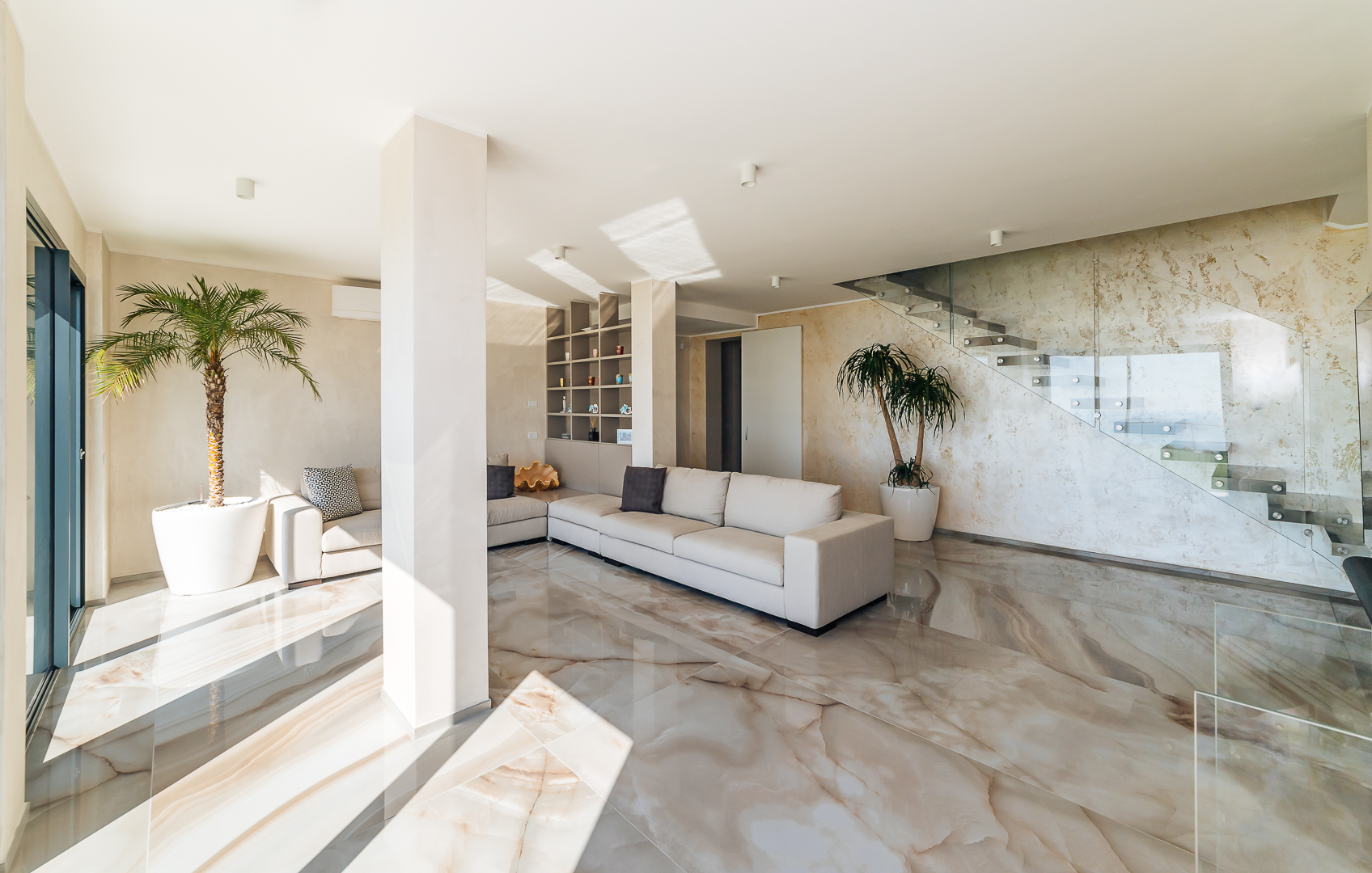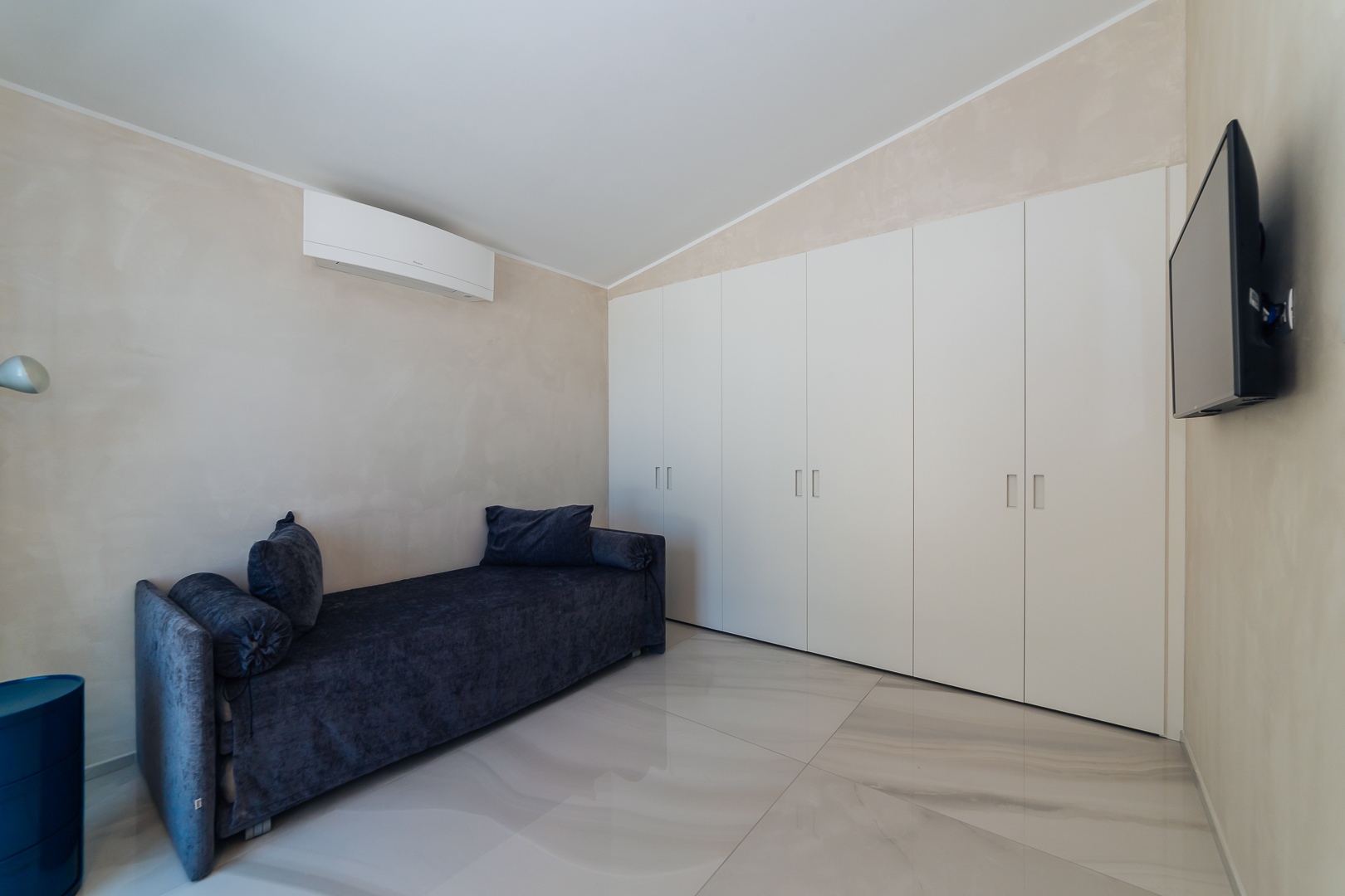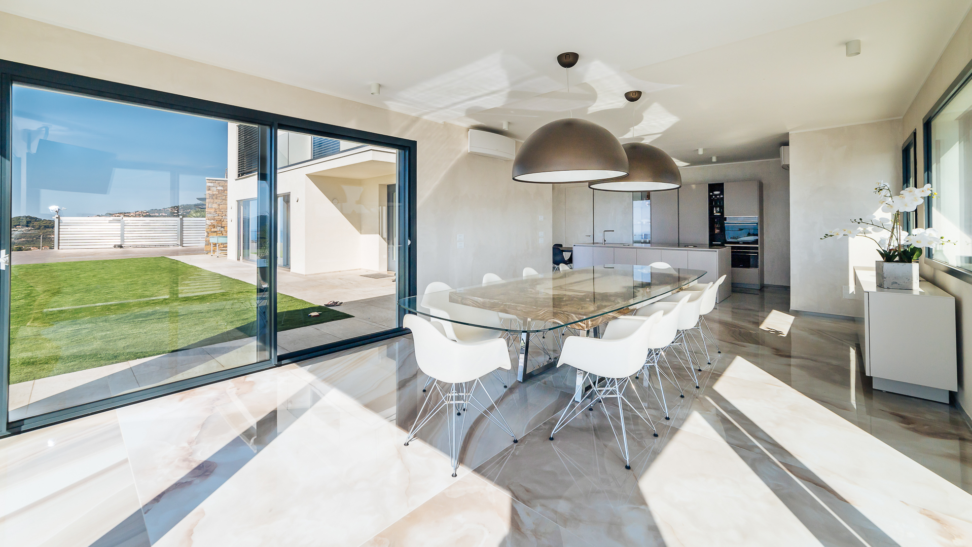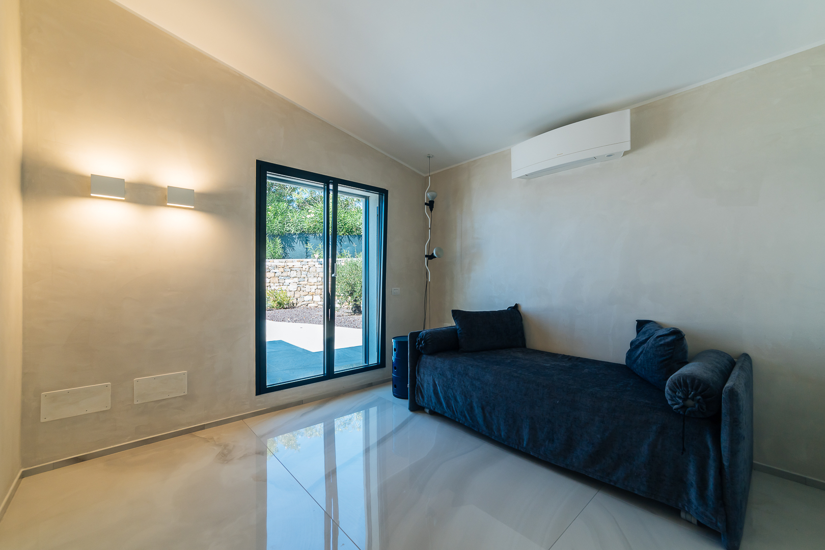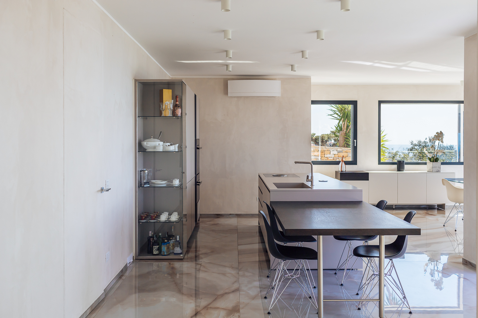 Met vier suites eventueel aangevuld met een extra comfortabele bedbank in een aparte slaapkamer, biedt Levante Blu ruim plaats aan maximaal tien gasten. Een eigentijdse schepping van ruim 450 m2 woonoppervlak, waar duidelijk de hand van de ontwerper in terug te zien is. Verzorgd tot in detail en met luxe materialen uitgevoerd is dit met recht een top villa. Met grote glaspartijen die het fenomenale uitzicht binnen halen en een tuin die helemaal op de zee is gericht.