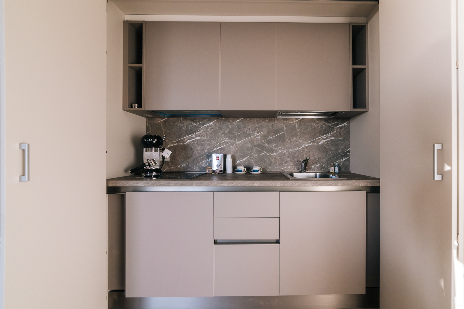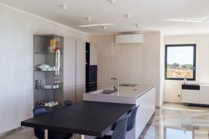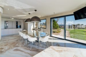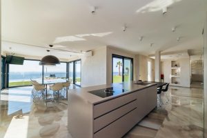 open keuken met kookeiland, voorzien van eerset klas apparatuur, met oa koelkast met vriezer, oven, stoomoven, vaatwasser, sapcentrifuge, waterkoker, melkopschuimer, toaster, Nespresso, ijsmachine. Bijkeuken met wasmachine en droger.
