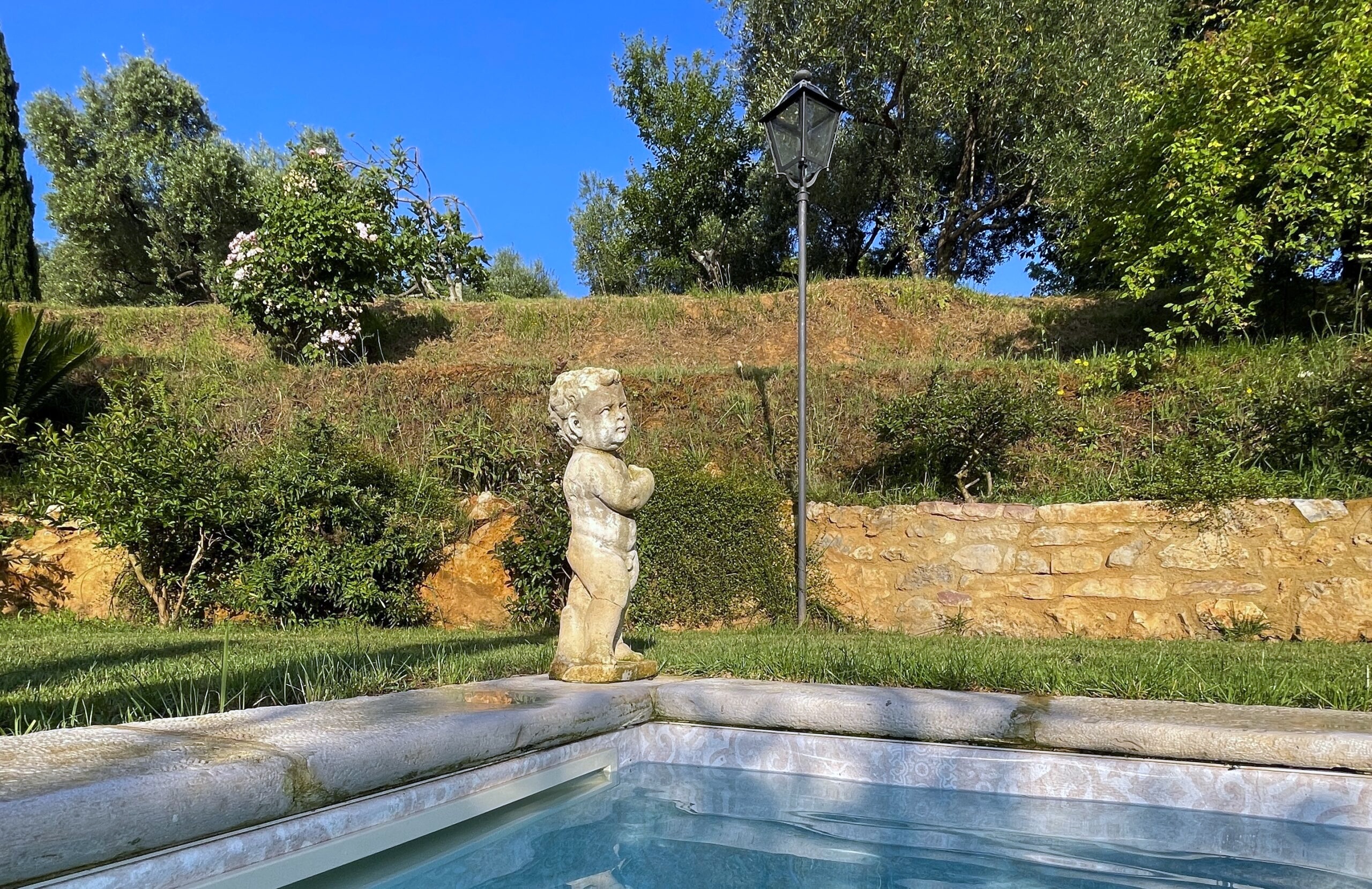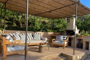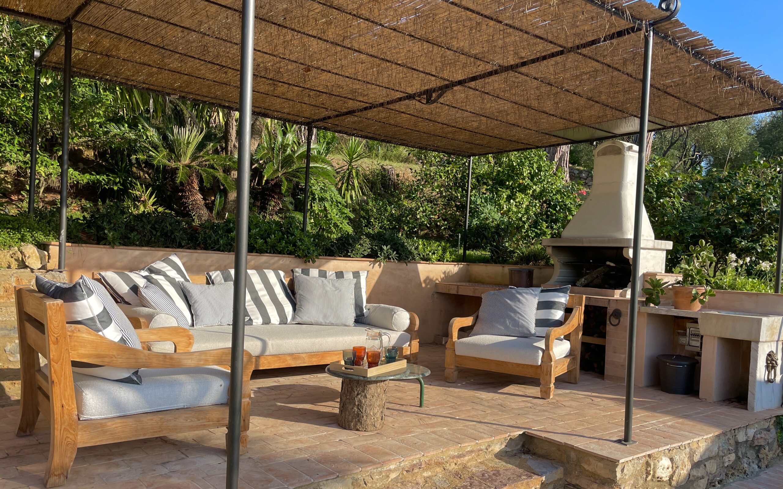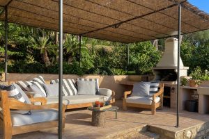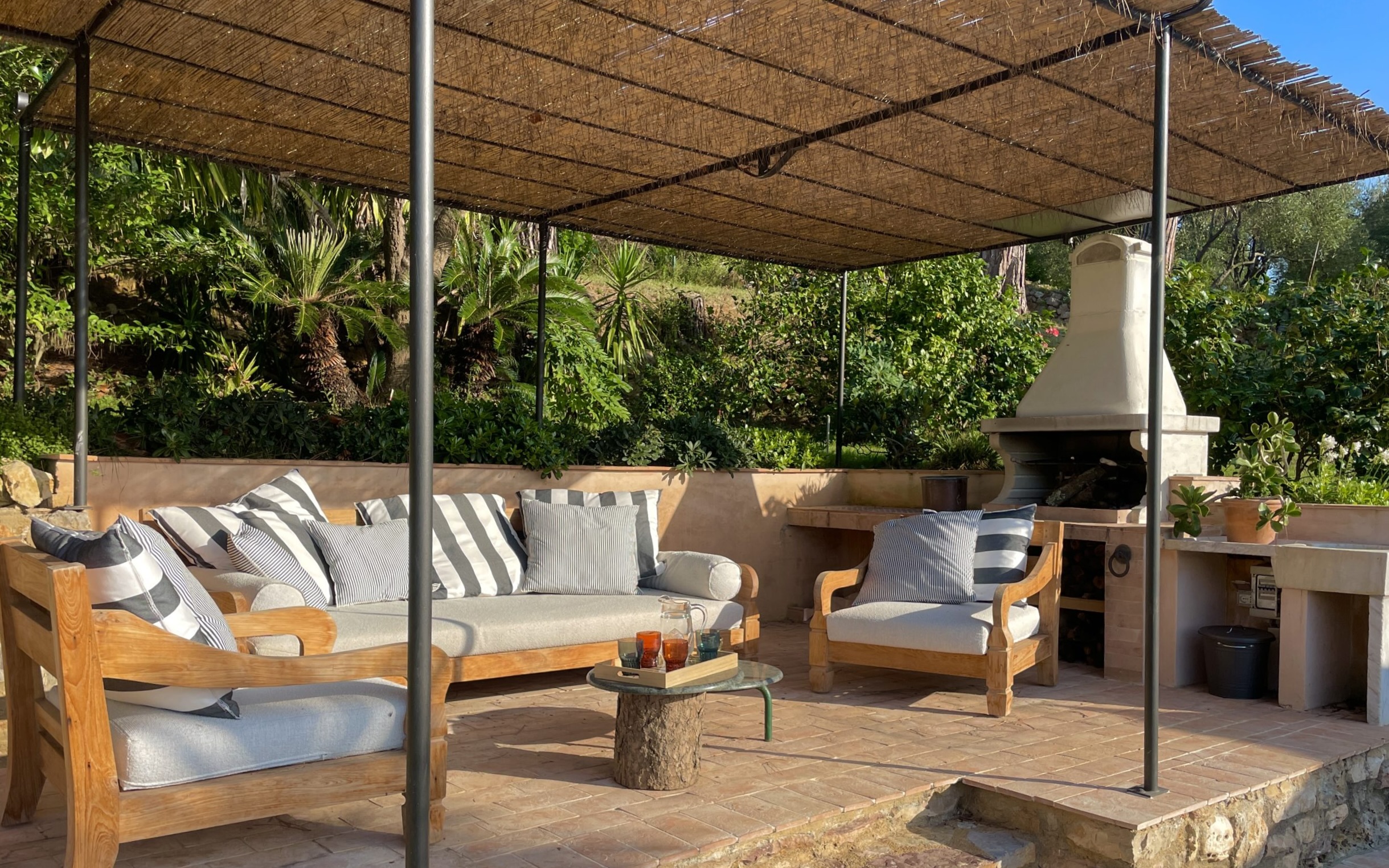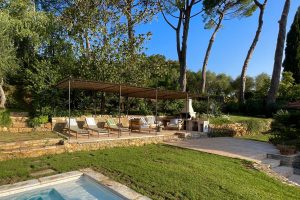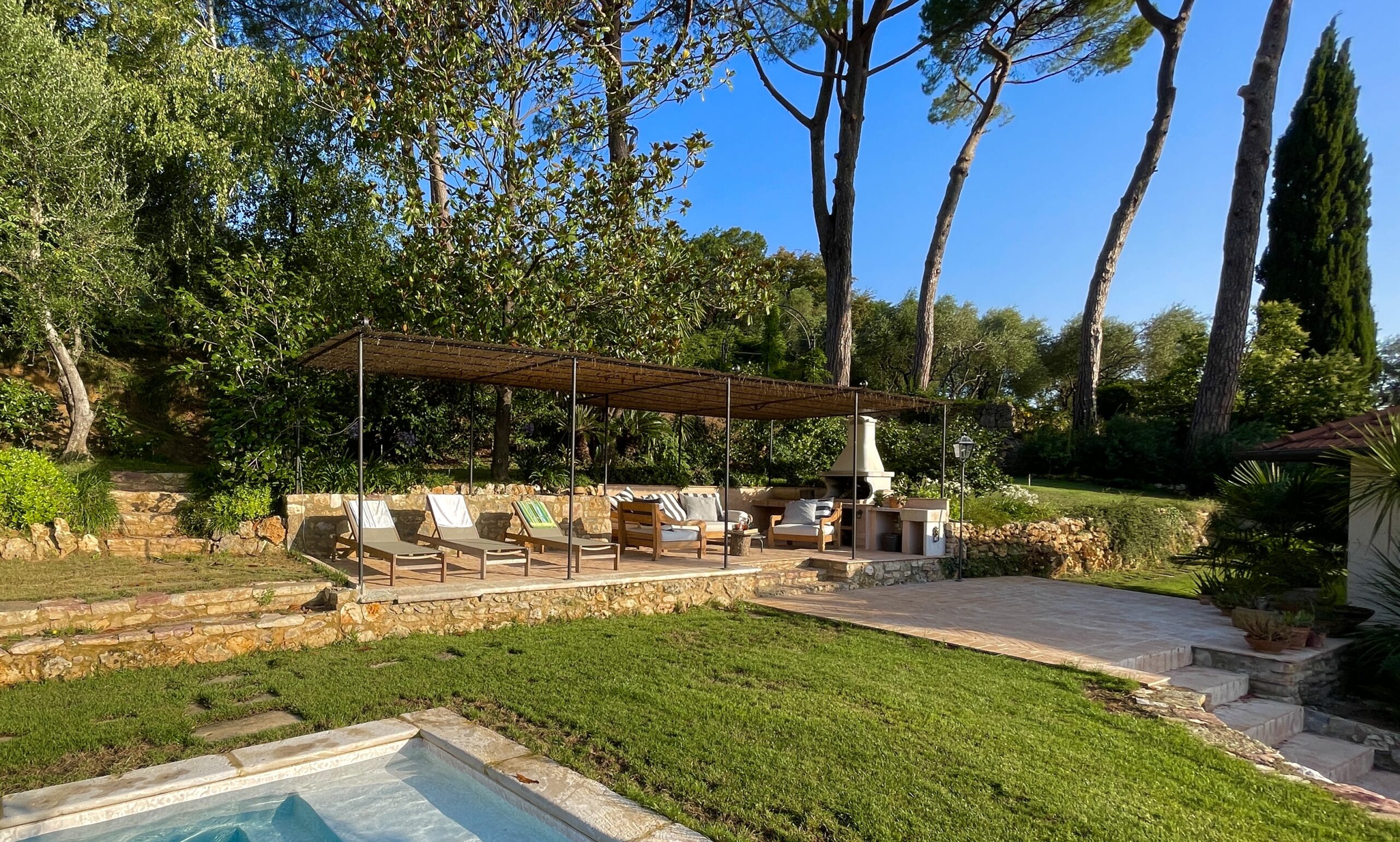 privé zwembad, zonneterras met ligbedden, overdekt terras met loungebanken, BBQ