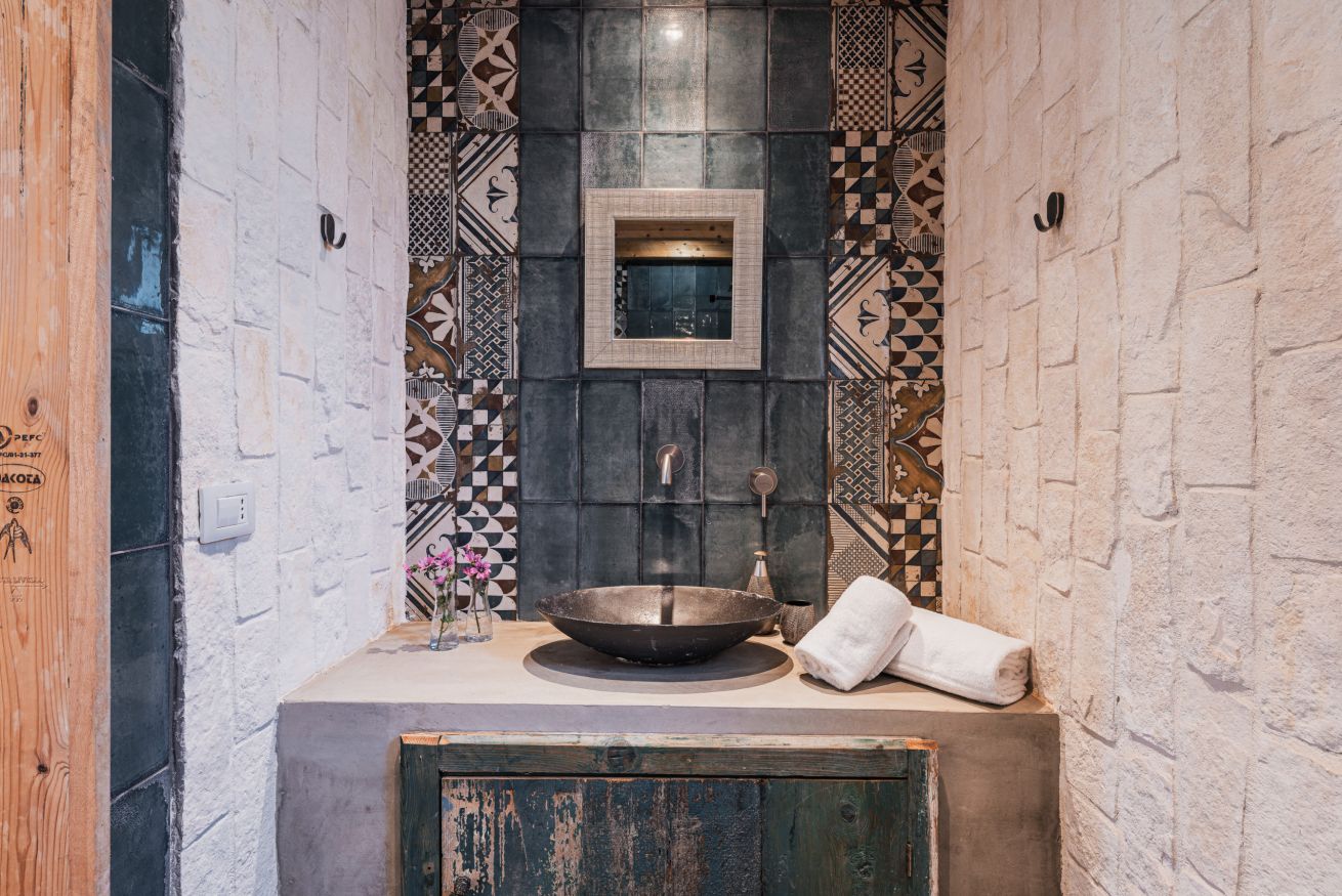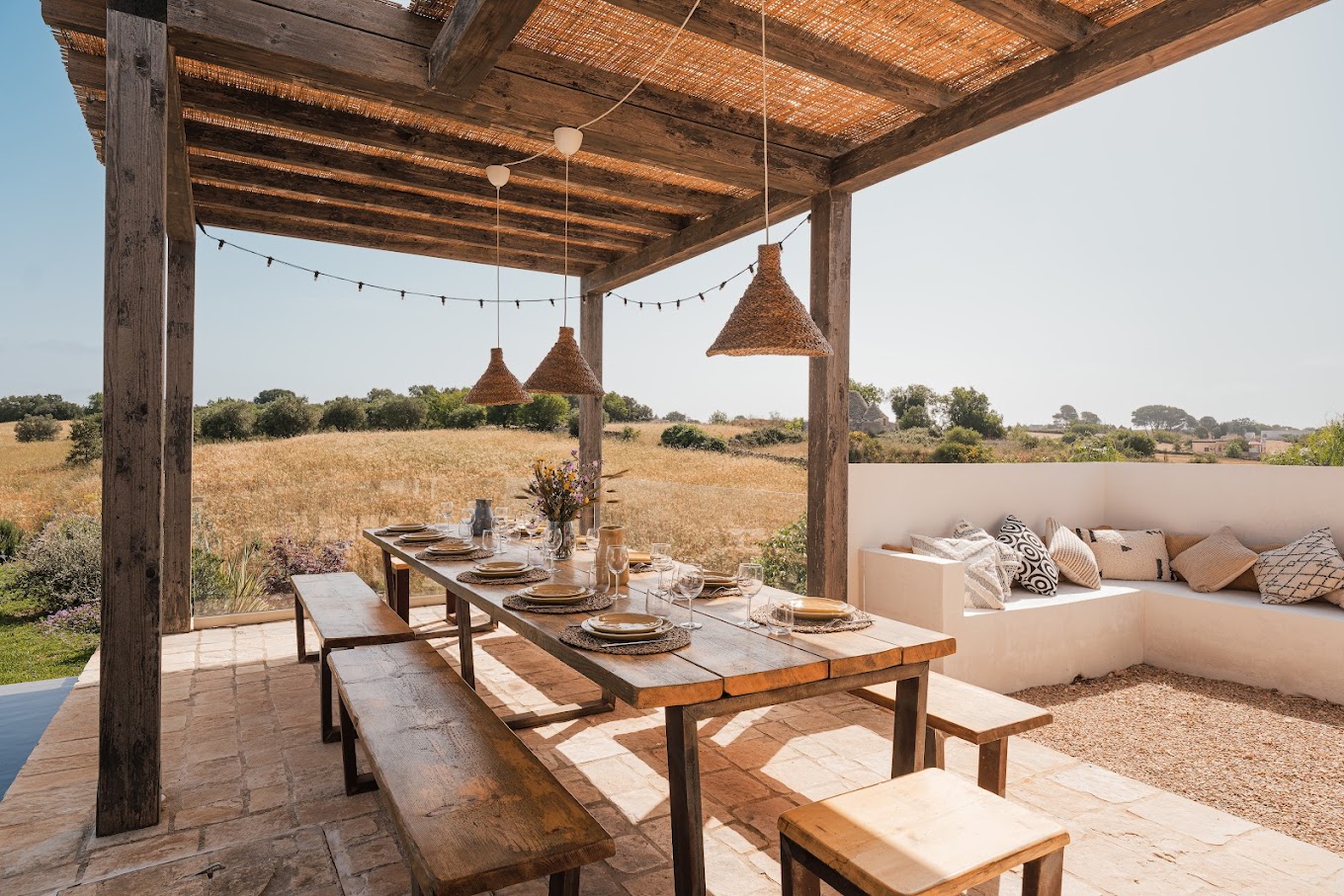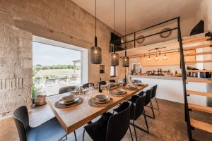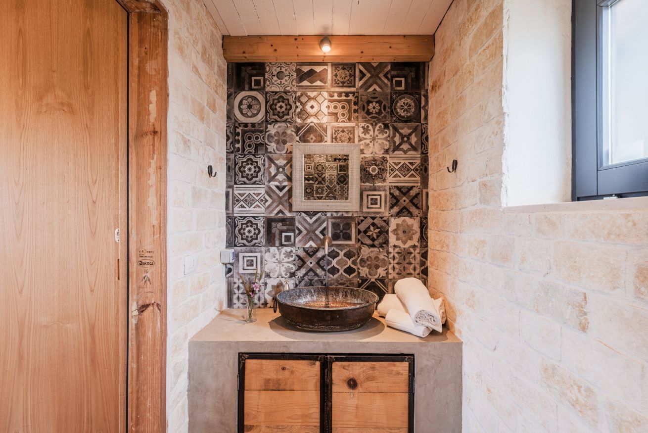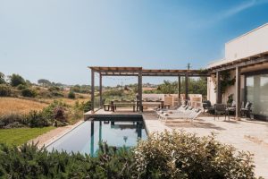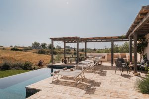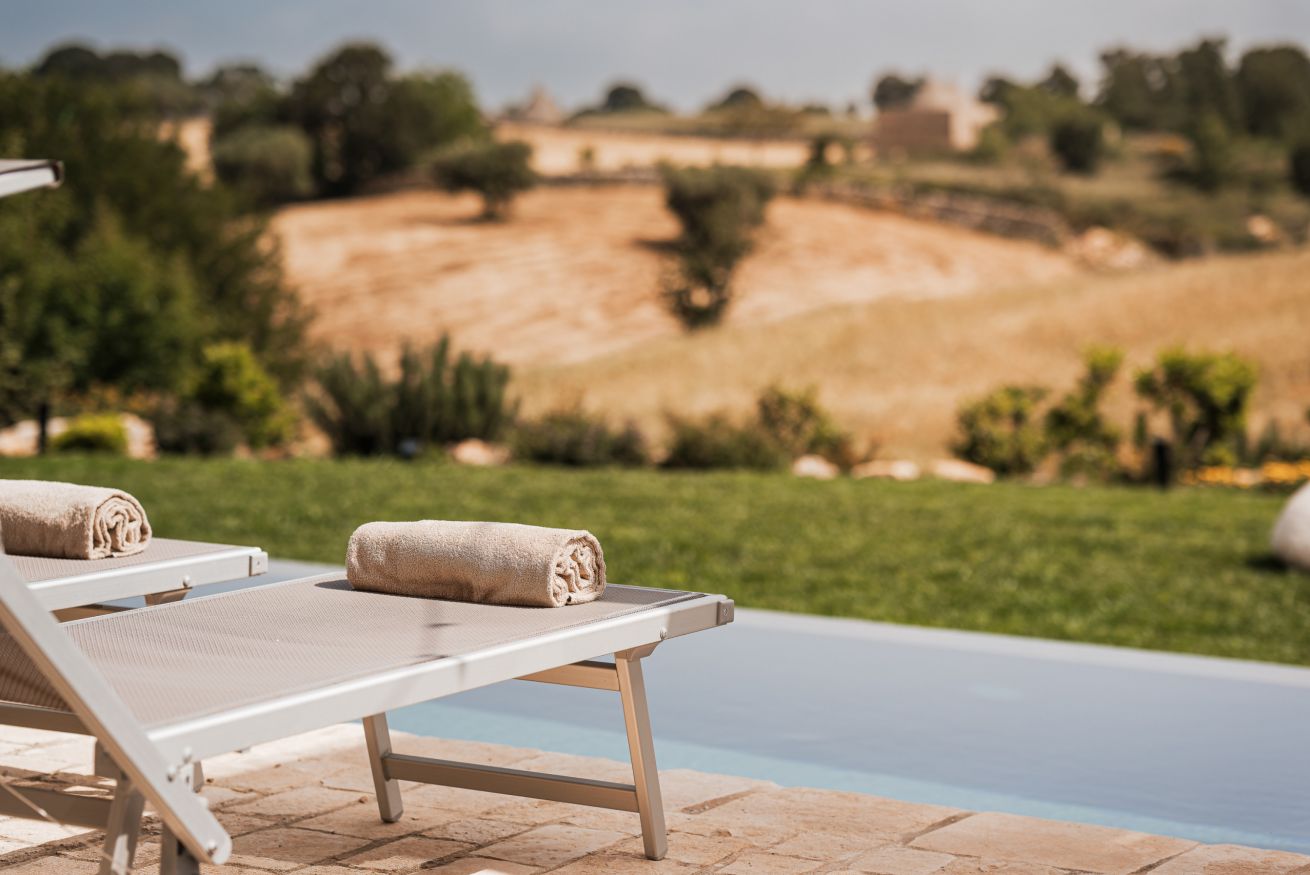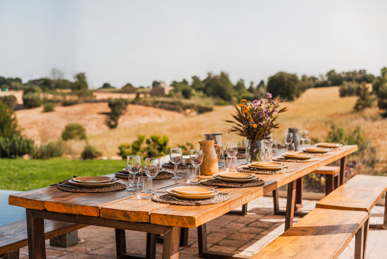 Verder biedt Bab Domè vooral ook buiten enorm veel sfeer en comfort: met een overloop zwembad dat vrij uitzicht biedt op de landelijke omgeving. Een zonneterras net de nodige ligbedden en parasols en een zithoek. Plus een sfeervol overdekt terras met eettafel en een opgemetselde muurbank. Hierachter is de Bbq en de houtgestookte pizzaoven te vinden. Aande achterzijde van de masseria is een open terrein waar een bocce baan is aangelegd. De Italiaanse variant van jeu de boule. Hier staat ook een pingpong tafel zodat er meer dan genoeg te doen is.