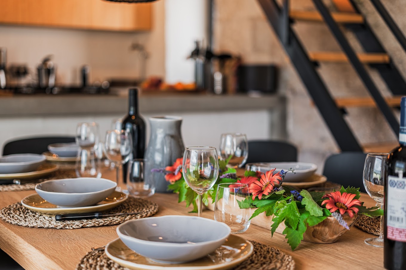De gemeenschappelijke woonkeuken met eettafel voor het gehele gezelschap