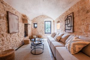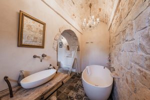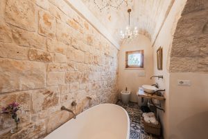 Masseria Bab Domè, Pugliees dialect voor vader Domenico, is een recent gerenoveerde masseria. Een kluster van woningen eigenlijk die tezamen zes slaapkamers en zes moderne badkamers tellen. Allereerst is er de eigenlijke masseria, de grootste villa die in het leefgedeelte plaats aan het gehele gezelschap biedt. Deze masseria telt een woonkeuken met grote eettafel en een living met comfy zitbank. Daarnaast is hier ook een dubbel werkstation gemaakt voor wie ook tijdens de vakantie aandacht aan het werk moet besteden. Daarnaast liggen er in de masseria twee tweepersoons slaapkamer met elk een eigen badkamer met douche.