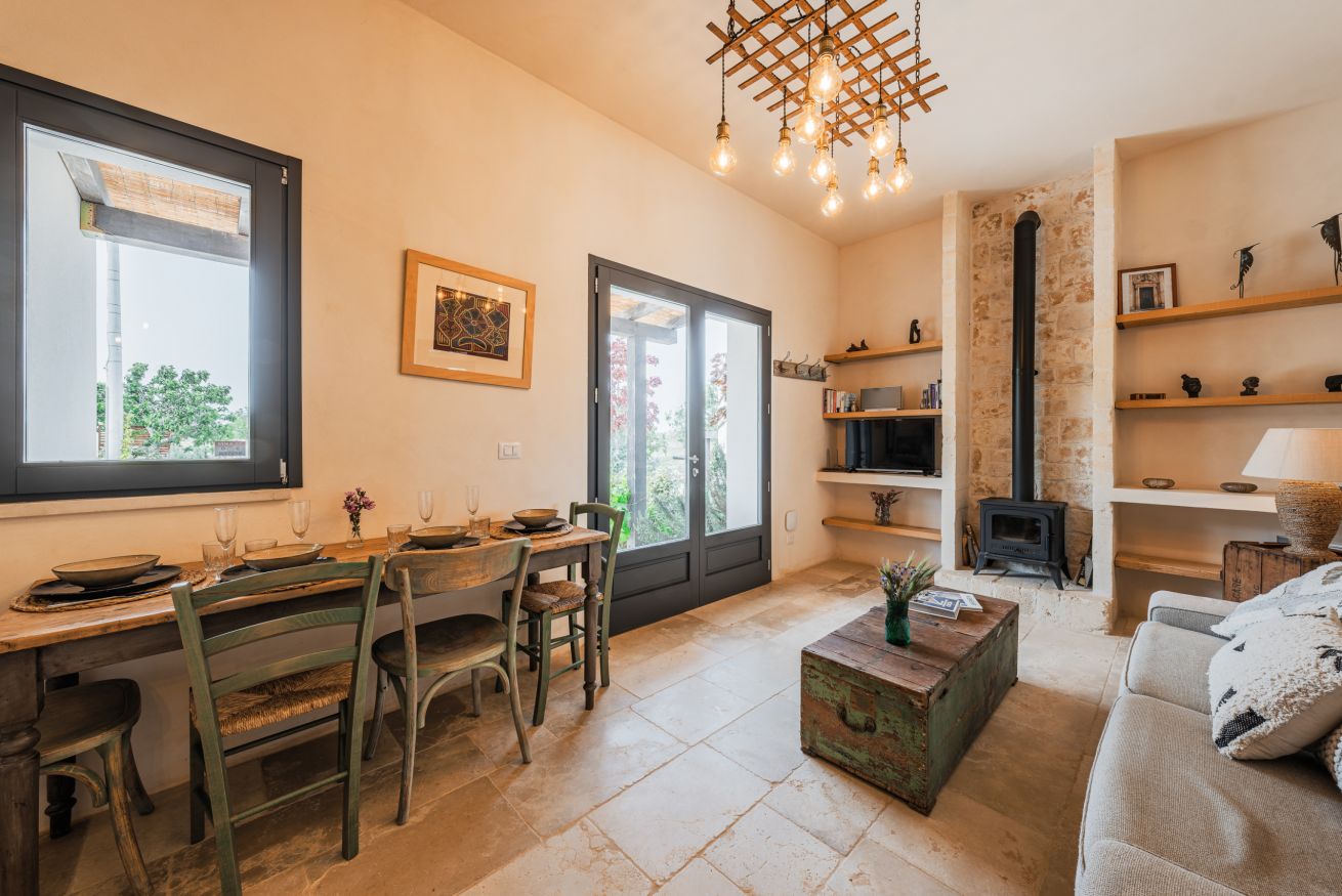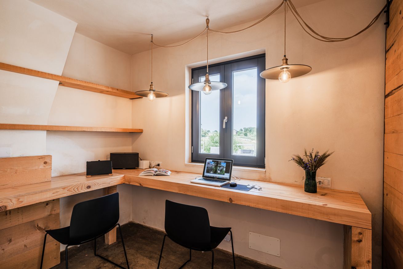 • drie zitkamers, in de verschillende wooneenheden, met wifi, sommige met open haard. in de masseria een studeer/werkplek met twee bureau’s.