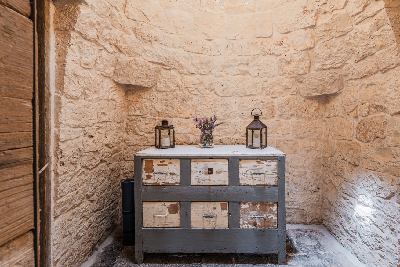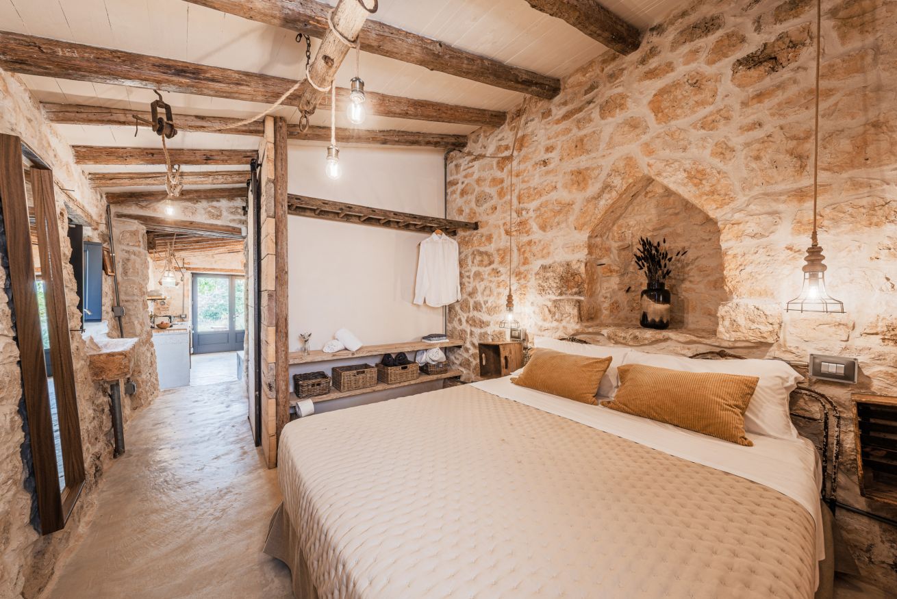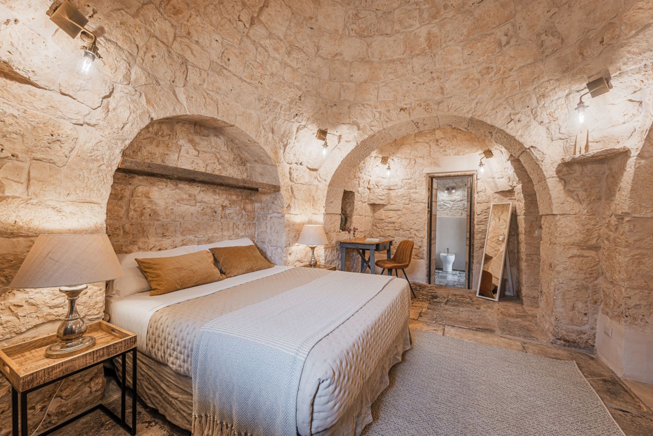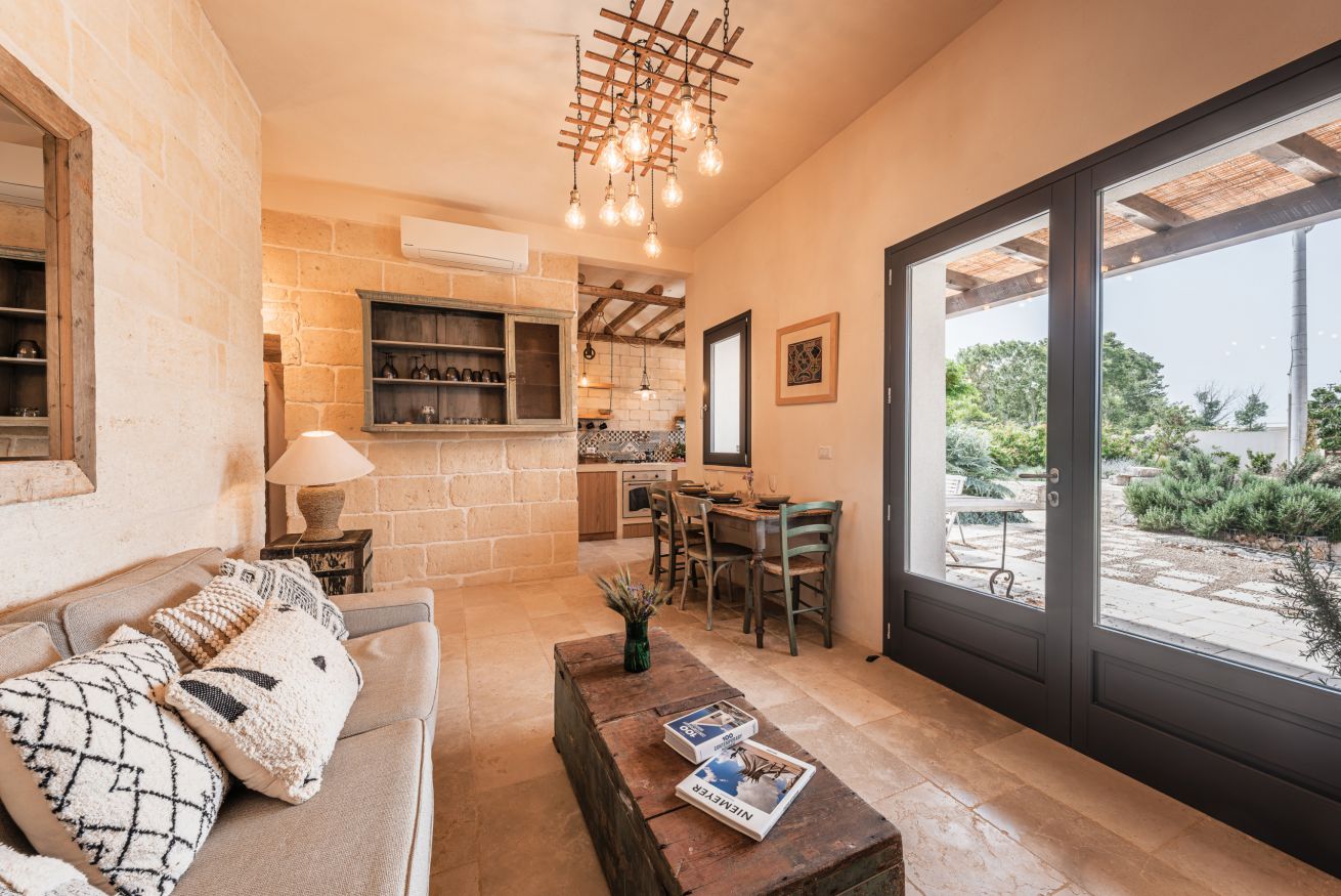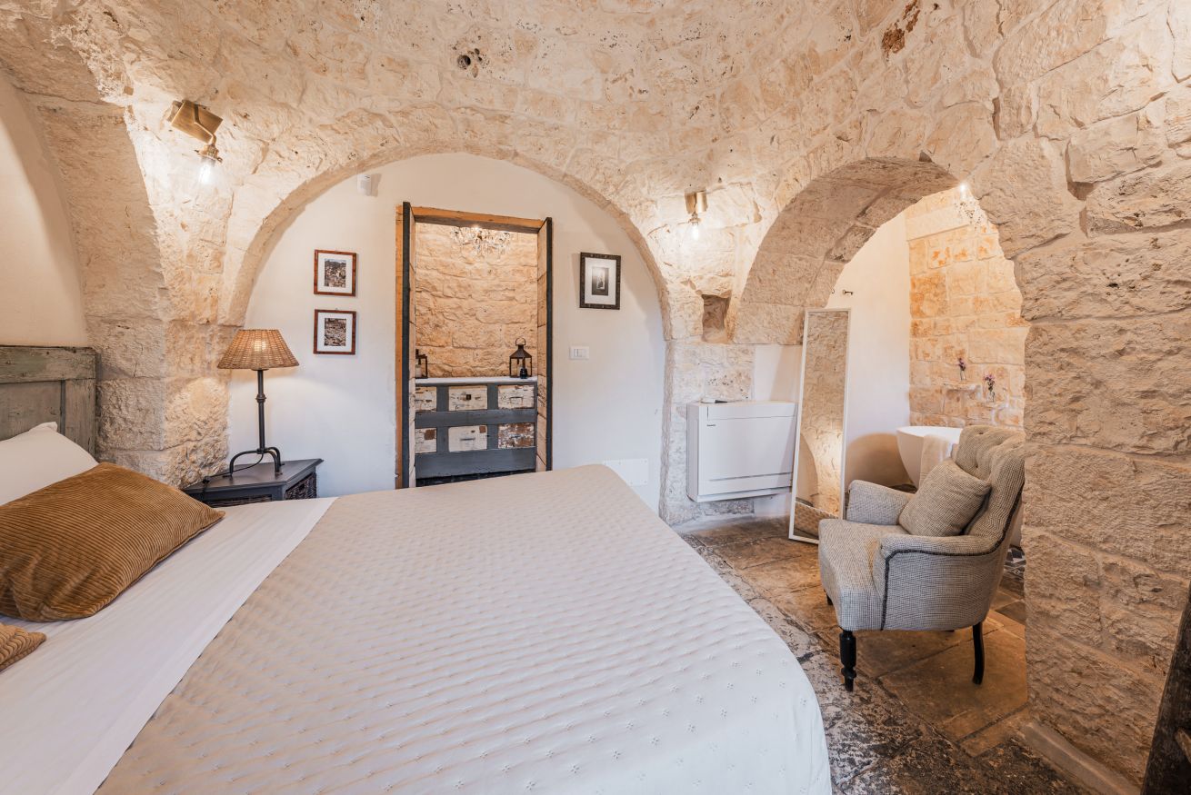 In de vrijwel er direct tegen de masseria aangebouwde trullo, is een tweede zitkamer met keukenhoek gemaakt. Ook deze trullo-woning bevat twee tweepersoons slaapkamers en twee badkamers waarvan er één een vrijstaand bad heeft. Daarnaast is er de lamia-annex met een tweepersoons slaapkamer en een badkamer met douche. En als laatste de oude schuur die is omgetoverd tot een sfeervolle living met keukenhoekje. Plus een tweepersoons slaapkamer met eigen badkamer met douche.