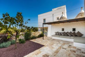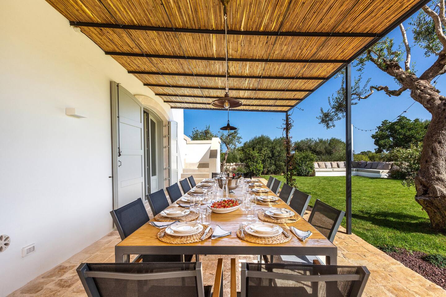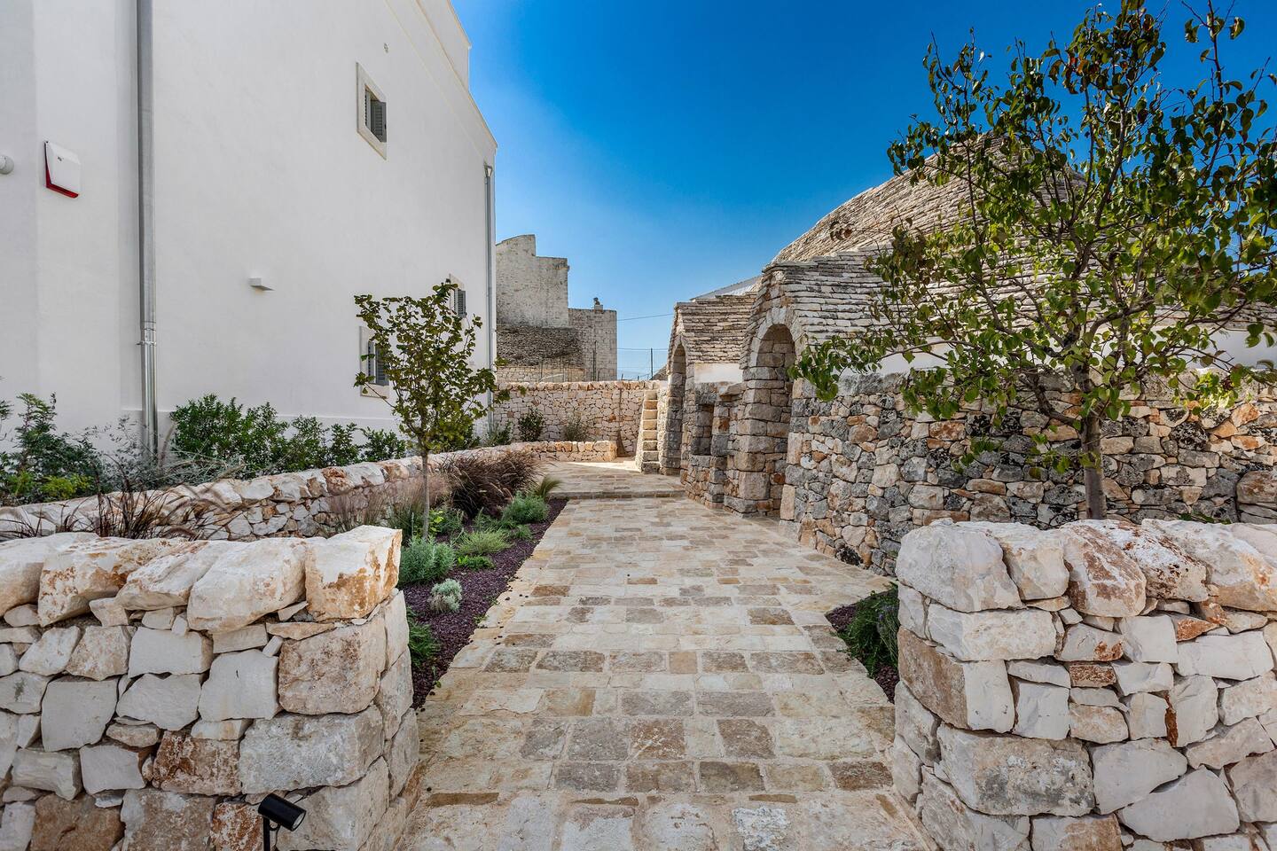14.000 m2 grond waarvan 400 aangelegde tuin. diverse overdekte terrassen aan de masseria’s, dakterras met muurbanken. parkeerplaats voor max 15 auto’s met drie oplaadpunten voor EV’s.