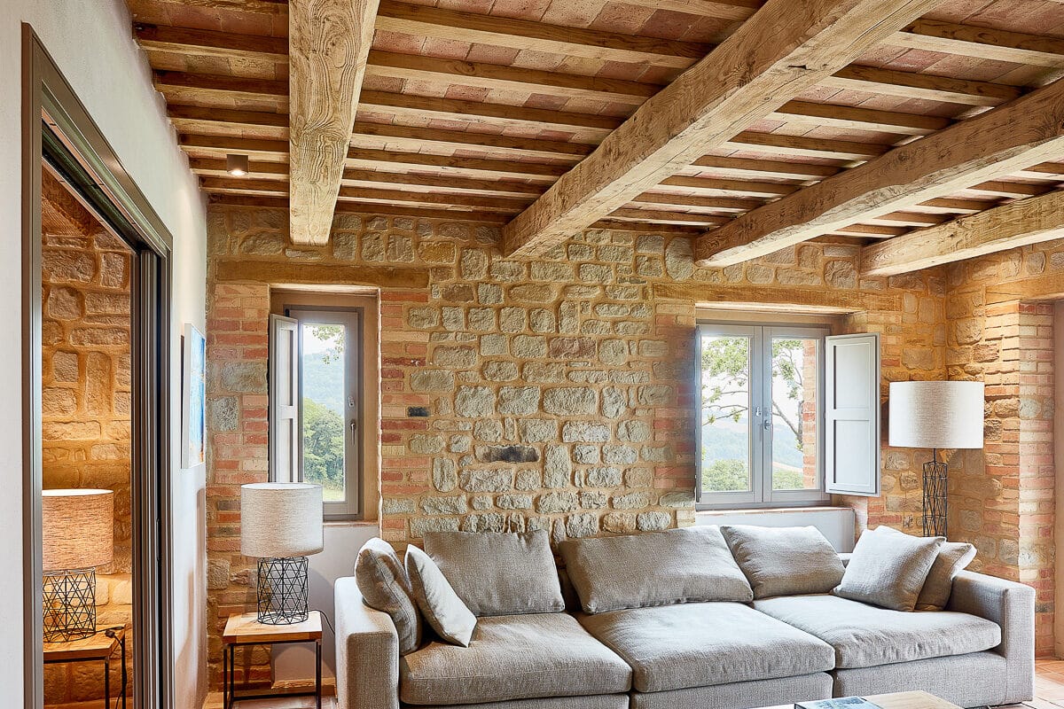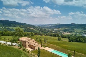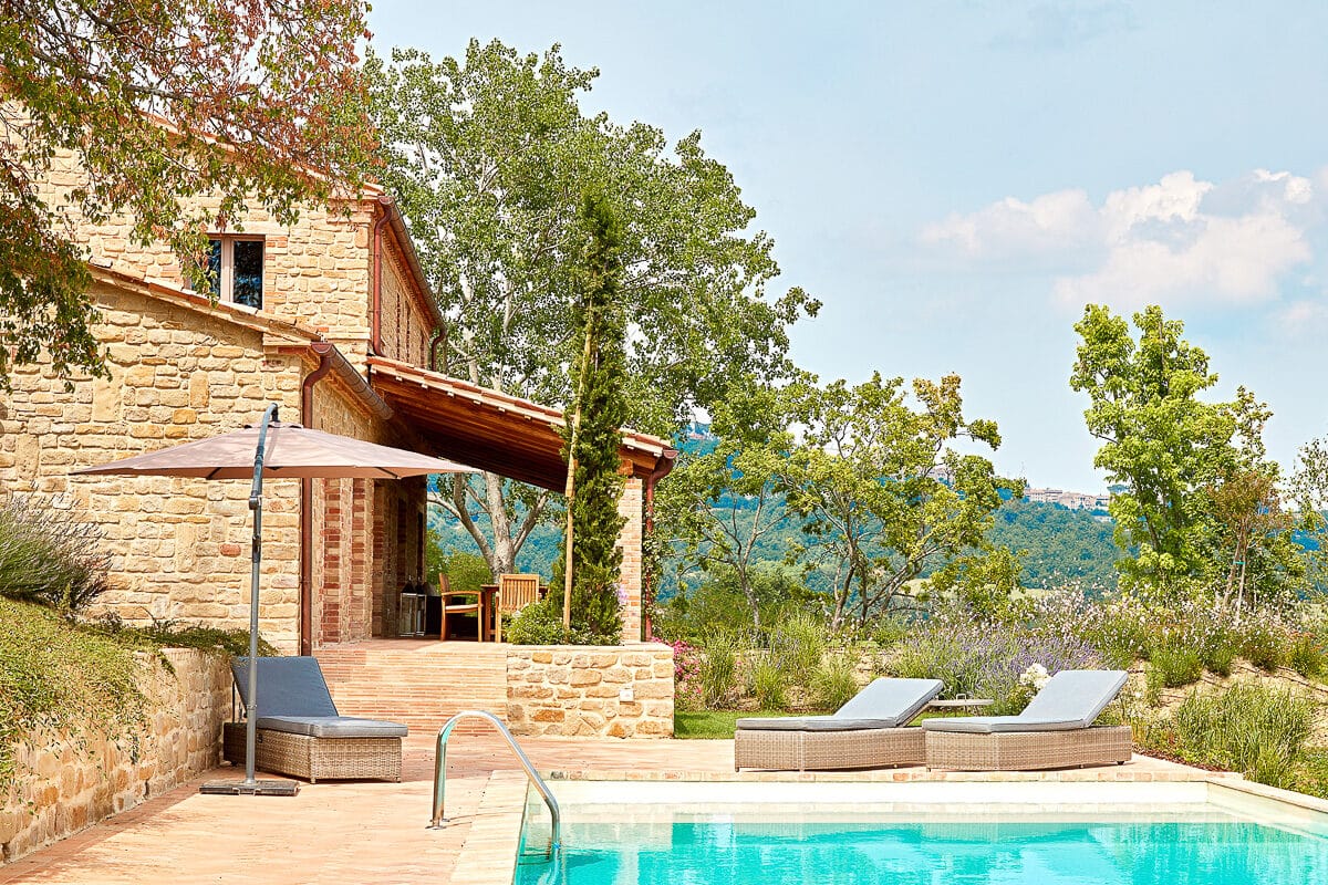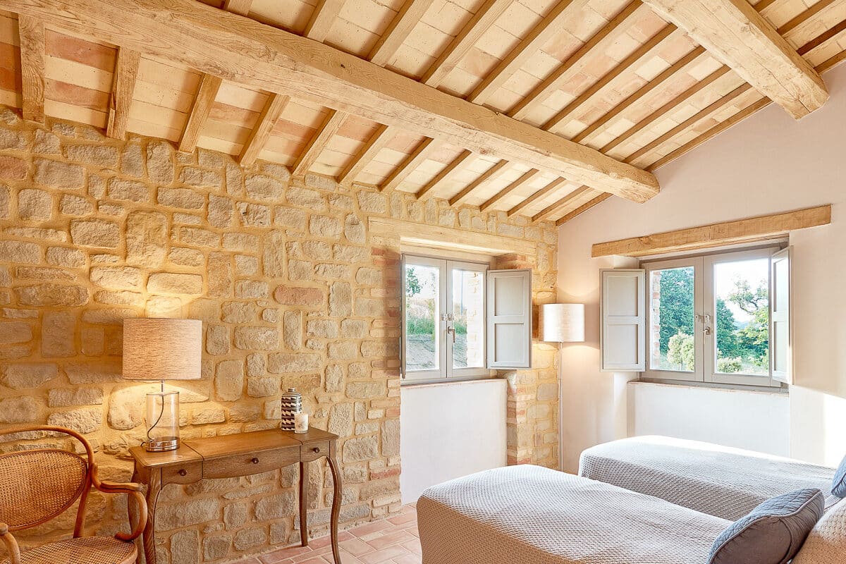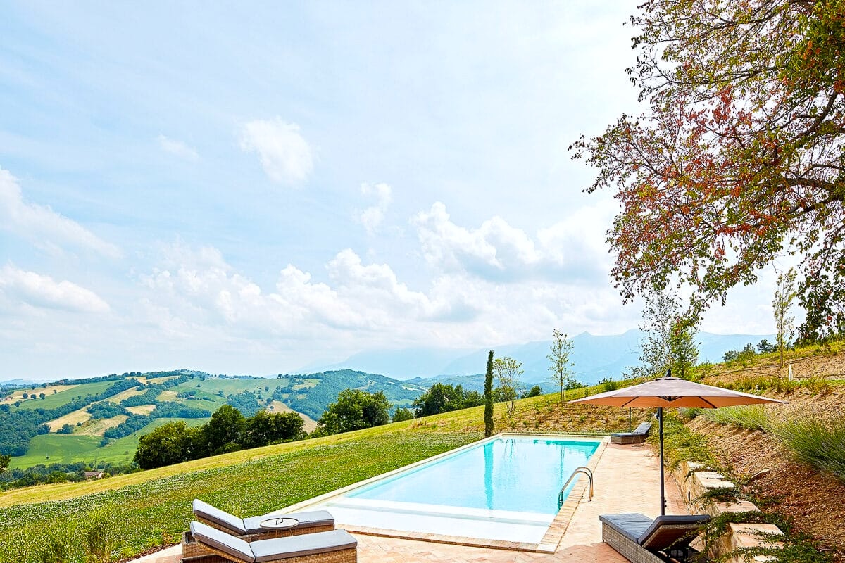Heerlijk, wat een plek. Eindeloos kan je hier wegdromen. De glooiende heuvels die rond de villa het landschap doen golven en het silhouet van de Sibillijnse bergen op de achtergrond. Een heerlijke plek waar ruimte en stijl hand in hand gaan. Want wat een stijlvol huis is Monte Rolinda. Sfeervol, luxe en met oog voor detail en design ingericht. Echt een thuis, weg van huis.