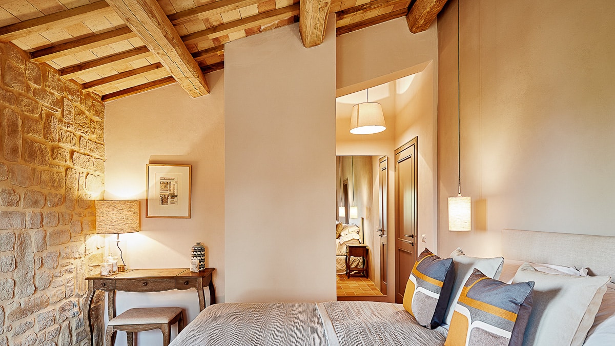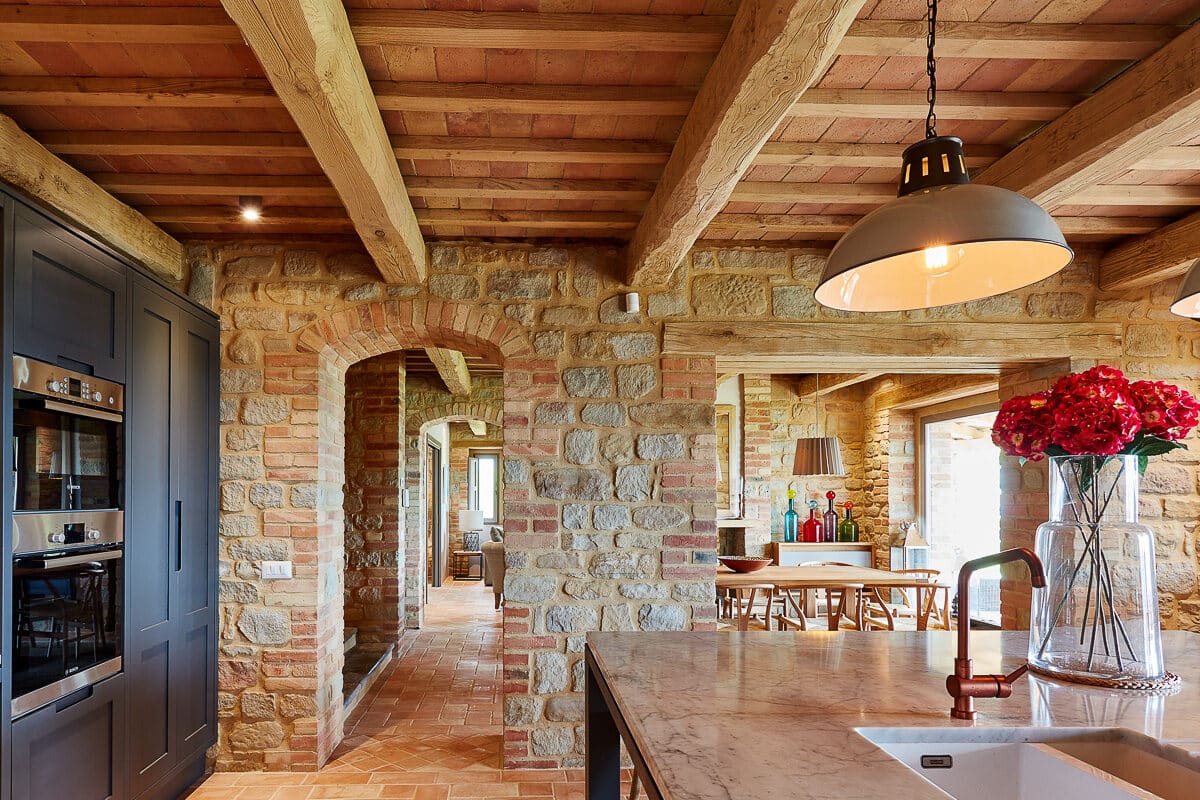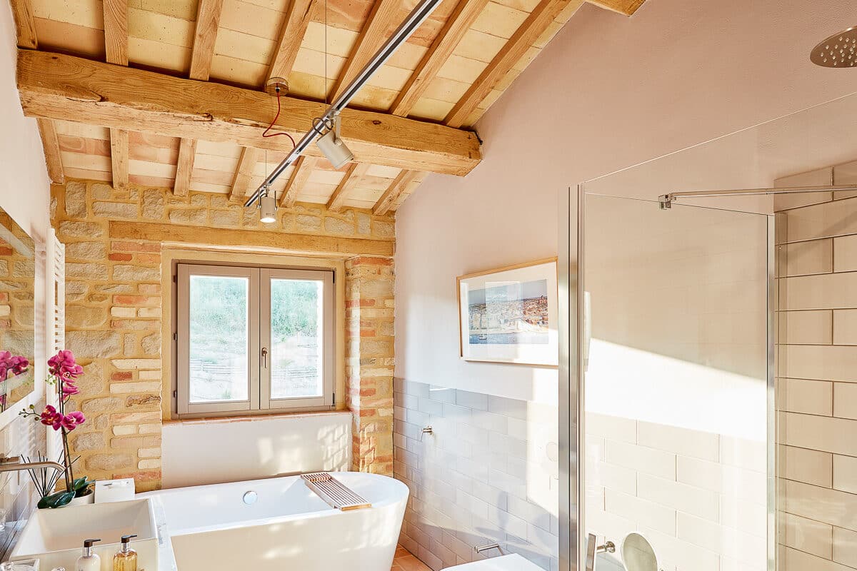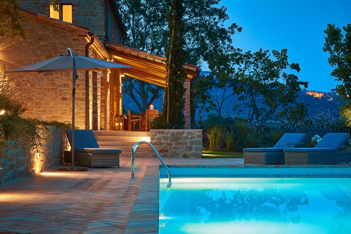 Heerlijk, wat een plek. Eindeloos kan je hier wegdromen. De glooiende heuvels die rond de villa het landschap doen golven en het silhouet van de Sibillijnse bergen op de achtergrond. Een heerlijke plek waar ruimte en stijl hand in hand gaan. Want wat een stijlvol huis is Monte Rolinda. Sfeervol, luxe en met oog voor detail en design ingericht. Echt een thuis, weg van huis.