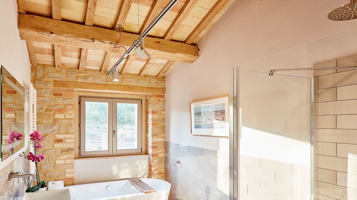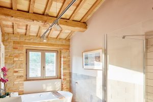 Met in totaal vier slaapkamers en drie badkamers, biedt Monte Rolinda ruim plaats aan maximaal acht gasten. Een fraai landhuis dat een aantal; jaren terug een intensieve verbouwing heeft ondergaan waarbij een gekend Brits architect zijn visie op La Dolce Vita in de Marche heeft neergelegd. Met een schitterend aangelegde tuin rond het huis die naadloos overgaat in het omringende landschap. En een zeer ruimbemeten woongedeelte op de begane grond dat begint met een overdekt terras buiten waar een comfy zithoek en een grote eettafel zijn neergezet. Binnenshuis opent de villa met een dubbel woonkamer, met een zitgedeelte en een halfopen TV ruimte. Hiernaast ligt de sfeervolle eetkamer die weer overgaat in de woonkeuken. Een meer dan compleet uitgeruste ruimte waar elke kookliefhebber enthousiast van zal zijn. Met een groot werkeiland annex keukenbar en een achterwand met de nodige keuken apparatuur. Als laatste telt de begane grond een prettige study, ingericht met bureau en printer. Op de bovenverdieping liggen de vier slaapkamers, twee tweepersoons met een eigen ensuite badkamer, en twee slaapkamers met losse bedden die een gezamenlijke badkamer delen.