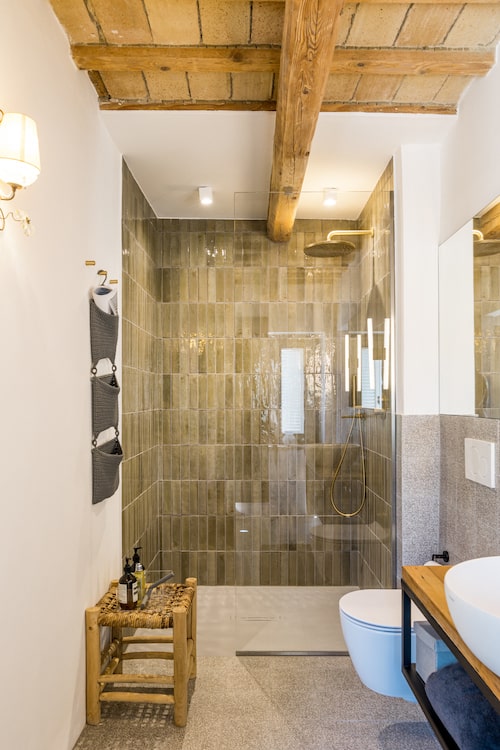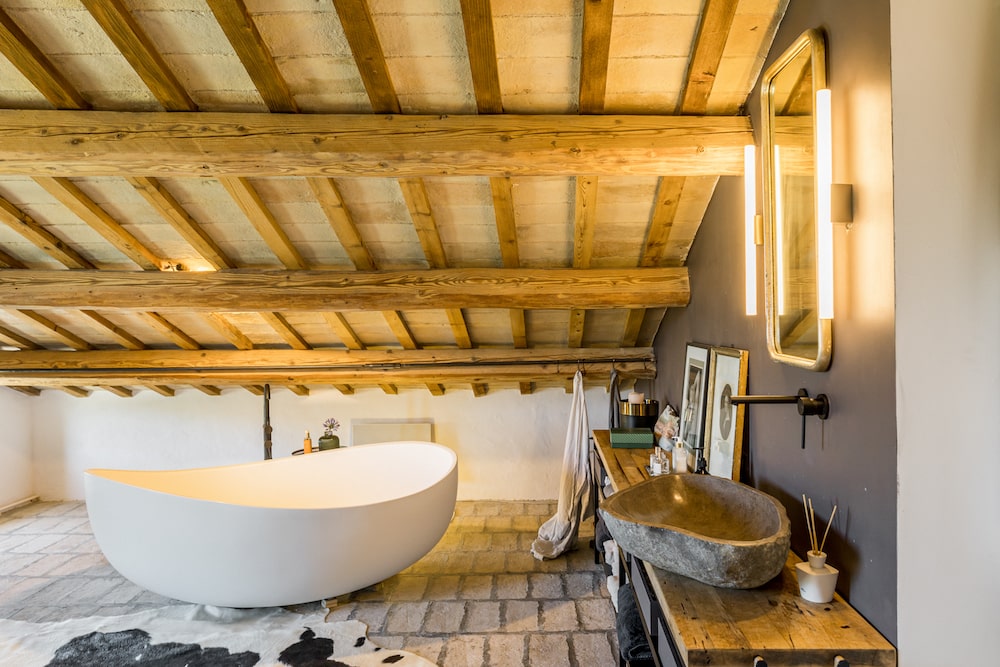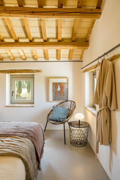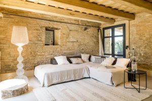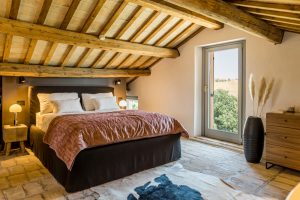 Met in totaal vier slaapkamers, elk in een eigen sfeer ingericht en elk met een eigen, ensuite badkamer, biedt Monte Rubbiano plaats aan maximaal acht personen. Op de begane grond van het stoere landhuis is een sfeervolle living met open haard te vinden, met openslaande deuren naar de tuin. Daarnaast ligt het eetgedeelte met een grote eettafel voor acht. En in het verlengde daarvan de keuken, voorzien van alle gemakken. Ook hier is een deur naar buiten, naar een eerste overdekt terras met eettafel. Verder ligt er op de begane grond een eerste slaapkamer met eigen badkamer met staand bad. Een trap omhoog leidt naar de boven verdieping waar een tweede zitkamer is gemaakt. Verder liggen op deze verdieping de overige drie slaapkamers, met een eigen badkamer.