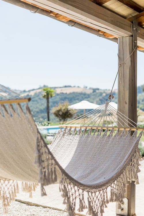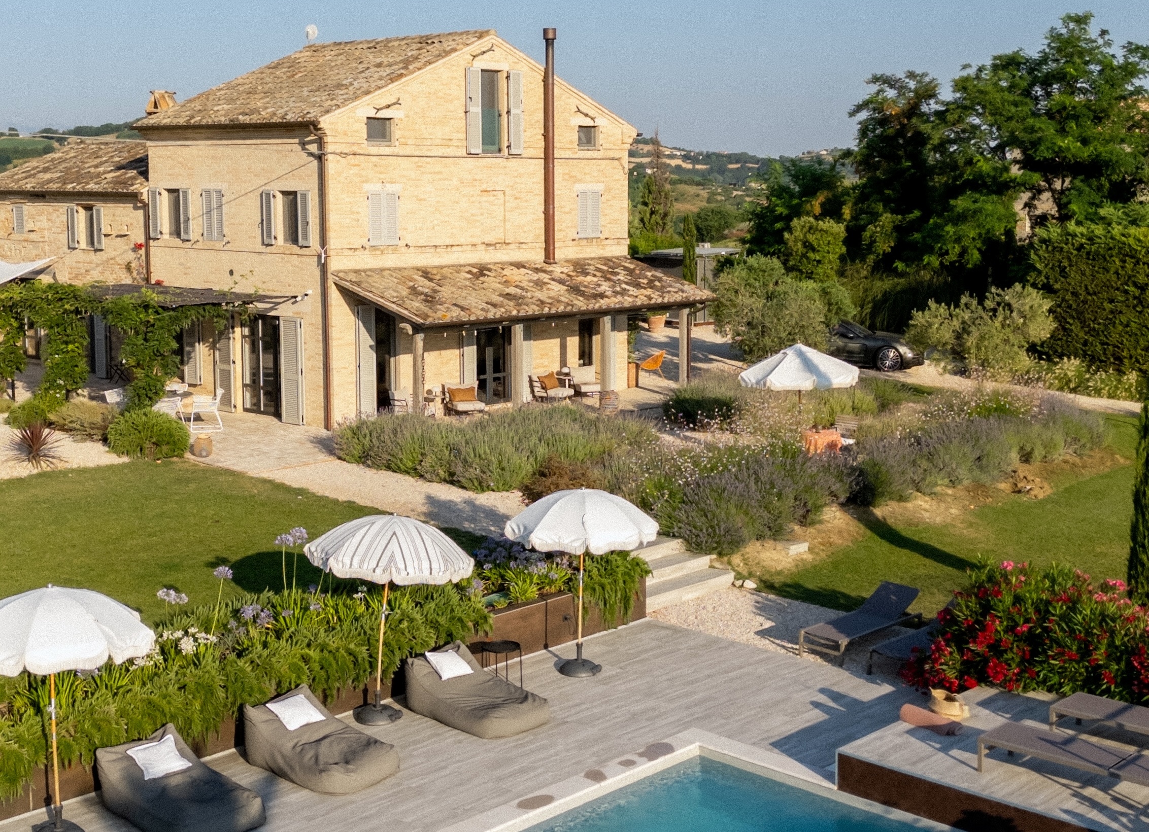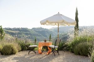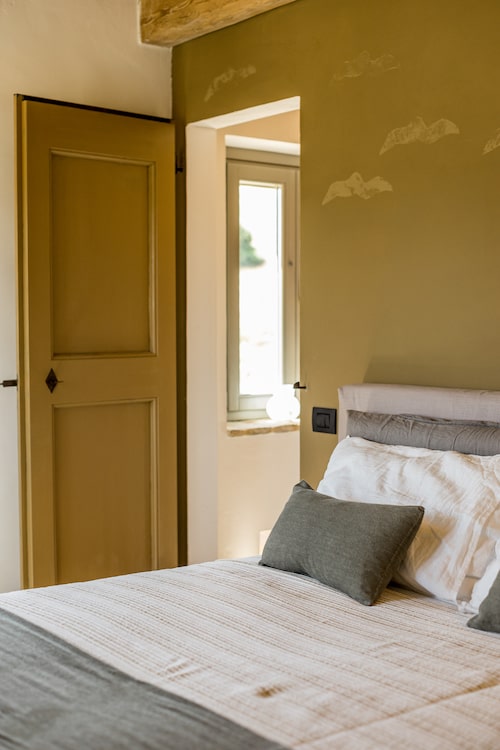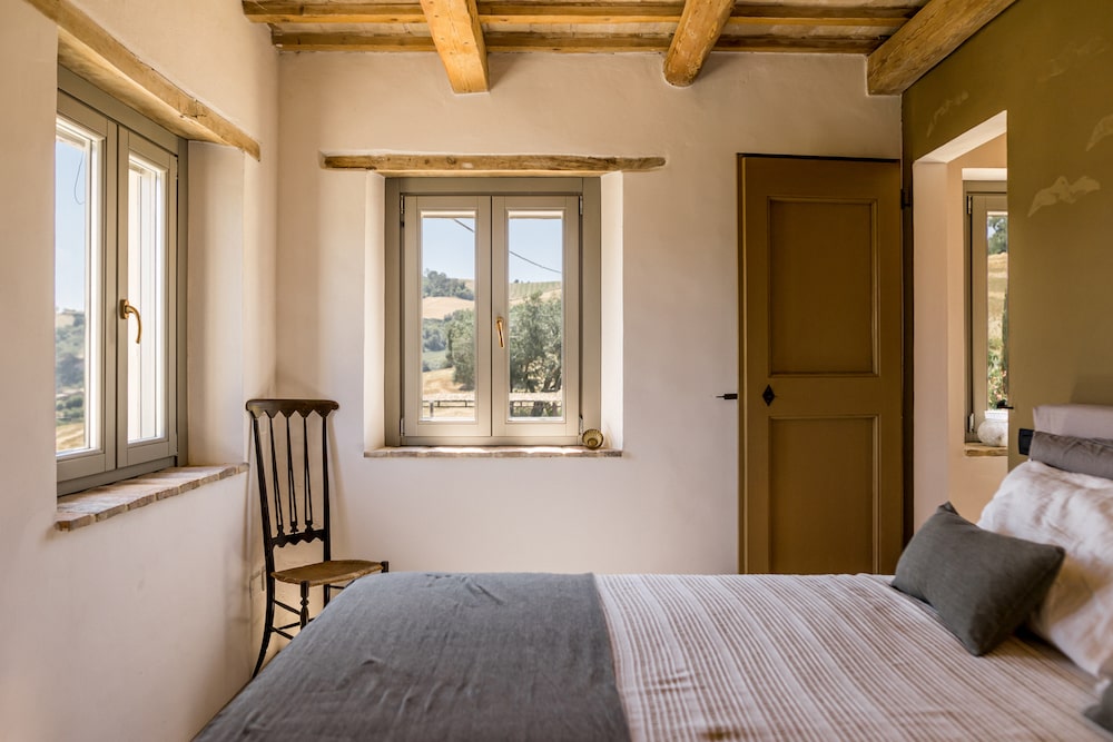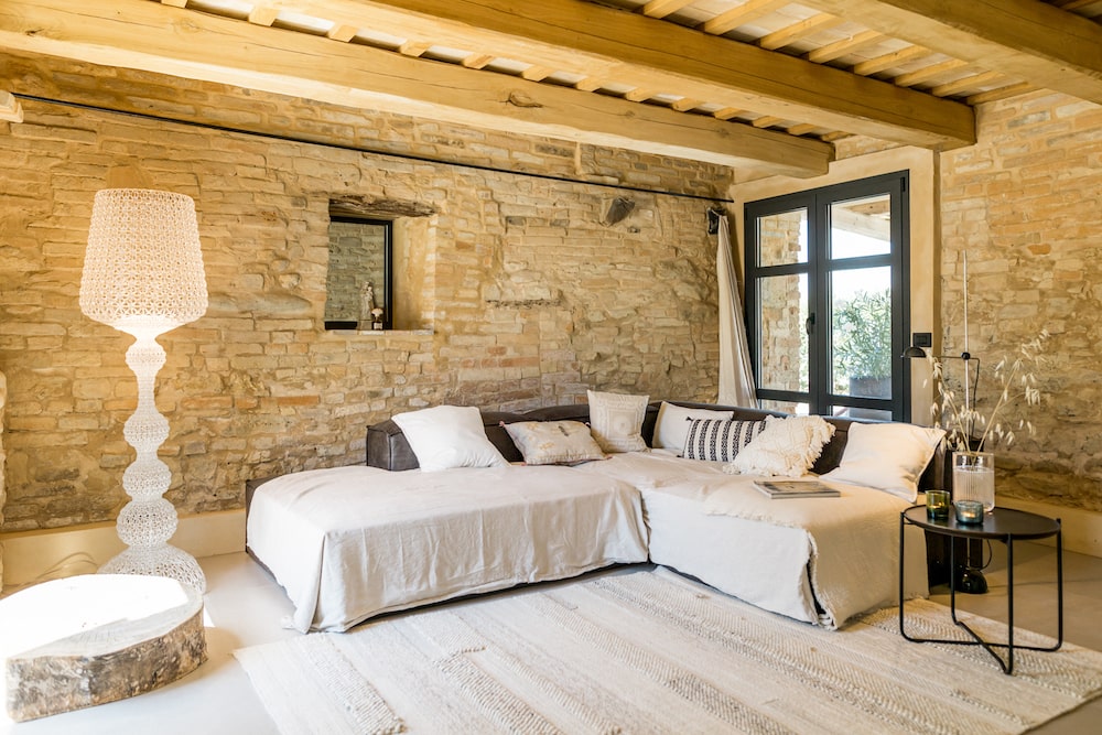 Raad eens: Wat krijg je als een architect en een kunstenaar verliefd worden op Italië. En er een vervallen huis op de plek van hun dromen in de Marche kopen? Ze vinden het helemaal opnieuw uit, passen alle duurzame principes die er bestaan toe. Voegen er hun flair en passie aan toe en maken er een regelrecht droomhuis van. Dat is de geschiedenis van Monte Rubbiano in een notendop. Belangrijk om te weten? Niet echt. Maar het verklaart wel waarom dit huis aanvoelt als een warme deken, het uitzicht er een uit duizenden is. En je er eigenlijk niet meer weg wilt. Dromen bestaan …