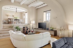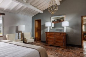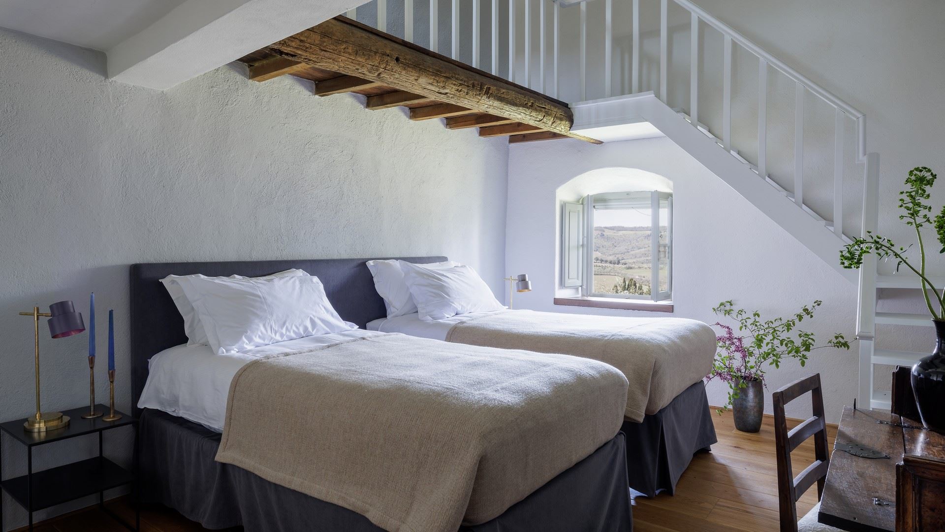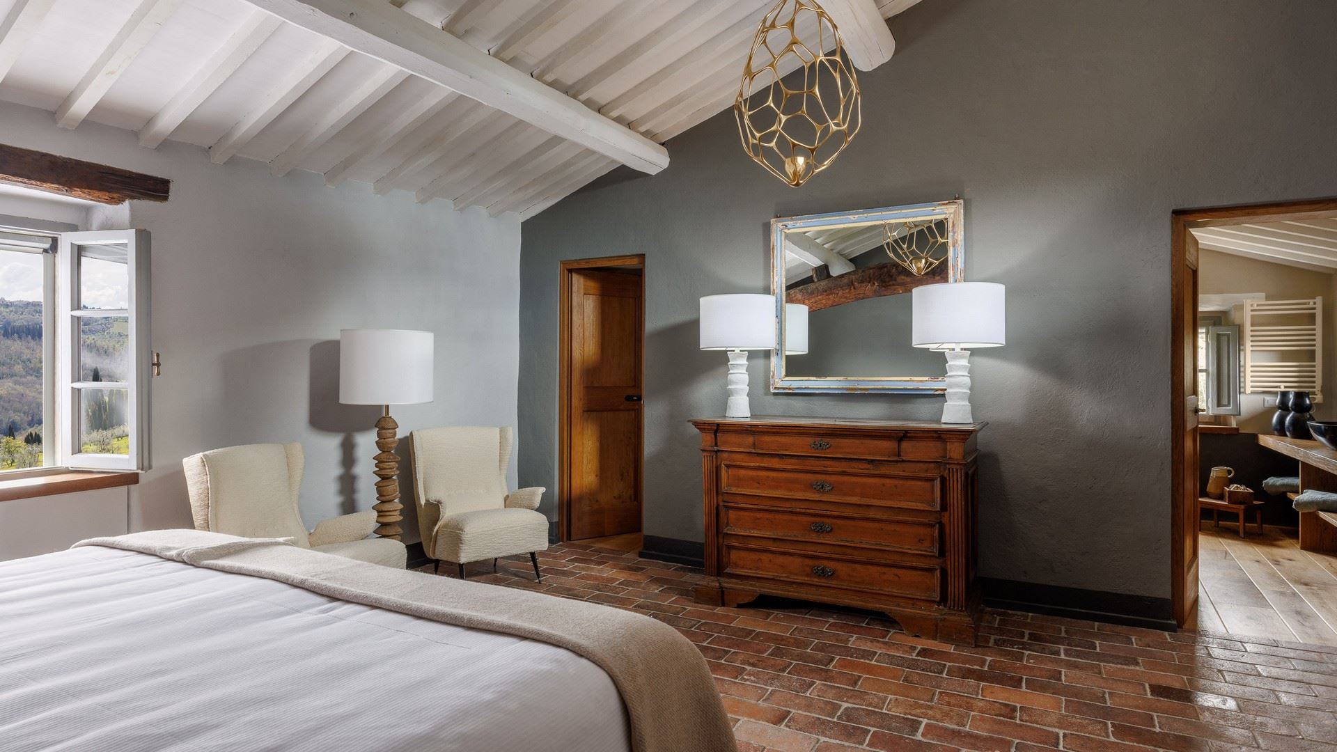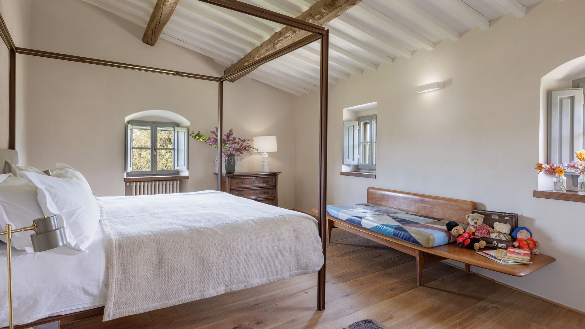 Met in totaal zes slaapkamers in het landhuis en een extra slaapkamer in de apart gelegen annex, biedt Podere Petriolo plaats aan maximaal veertien gasten. In het landhuis is een grote living, bestaand uit drie aparte delen gemaakt met aangrenzend de overdekte veranda buiten waar een grote eettafel en BBQ staat. Op de begane grond is verder een volledig uitgeruste keuken te vinden en een bijkeuken. Plus een eerste slaapkamer met eigen badkamer. Op de bovenverdieping liggen nog vijf tweepersoons slaapkamers waarvan er twee toegang hebben tot een balkon en terras.