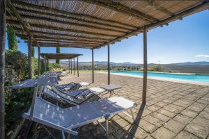 • privé zwembad, 14 x 5 m. Zonneterras met ligbedden en overdekte pergola, buitendouche.