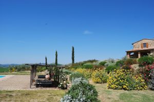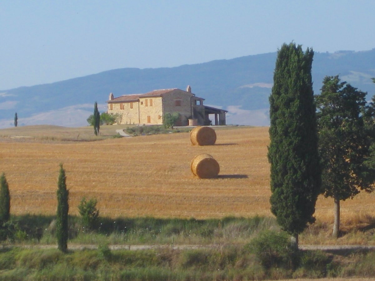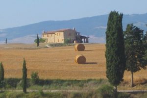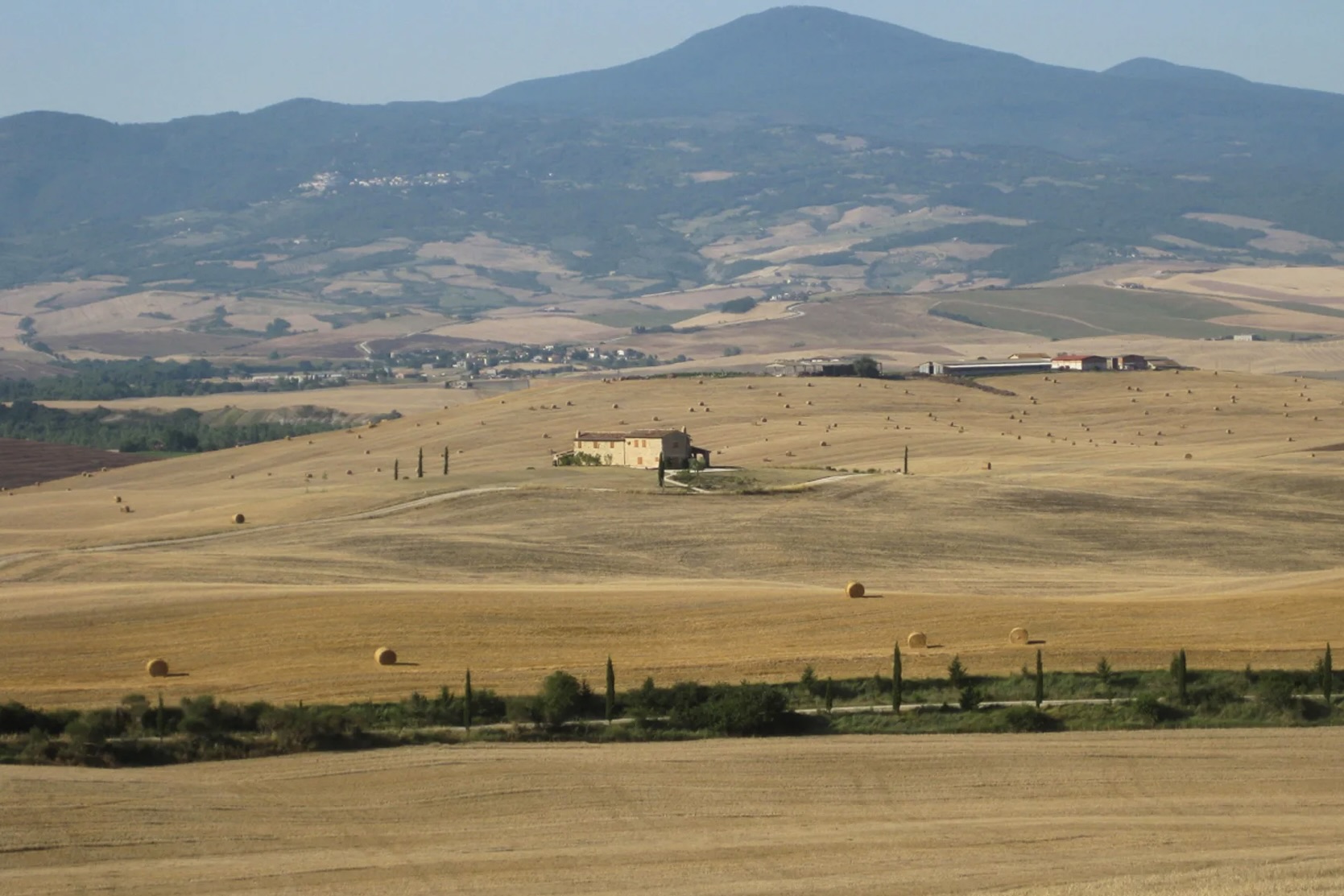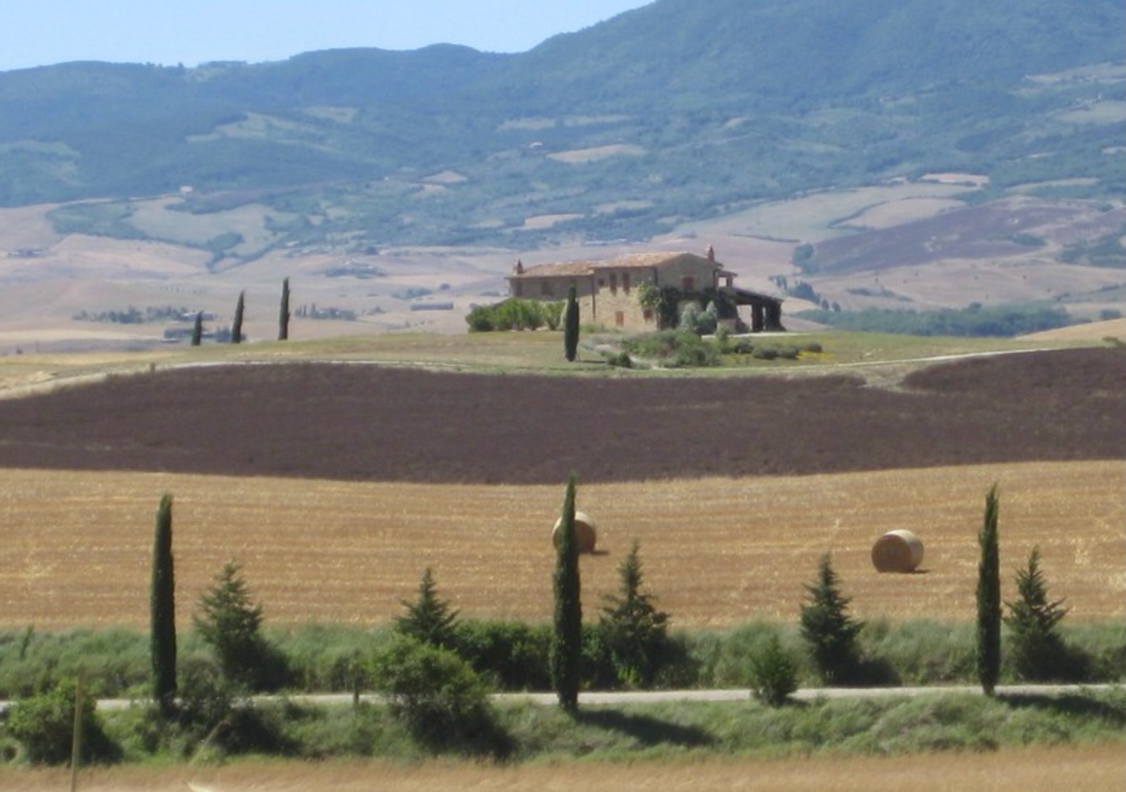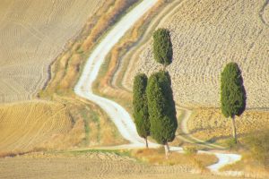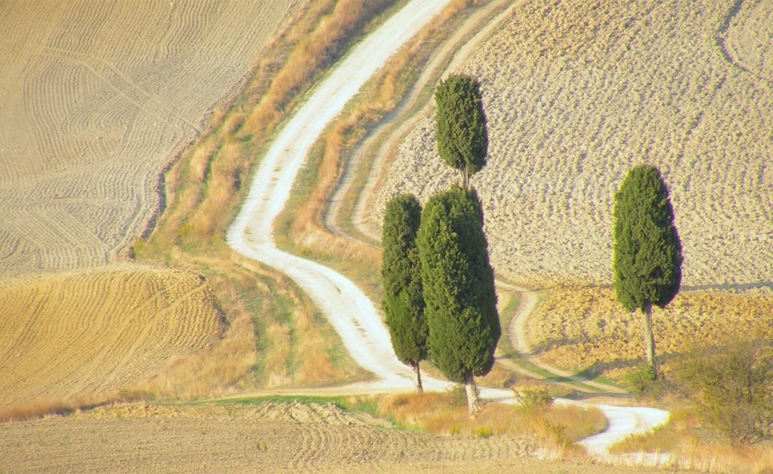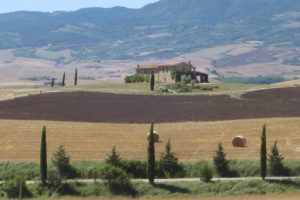 La Foce 14 km, met het beroemde cipressenlaantje van Toscane