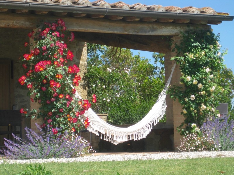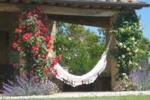 • grote, mooi aangelegde tuin, met twee loggia’s aan het landhuis, zonneterras met overdekte terrassen bij het zwembad