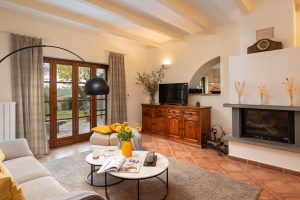 UNIT 1 – BEGANE GROND – Keuken; badkamer met douche, woonkamer met tv en open haard (sierlijk).