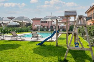Elk van de appartementen heeft een eigen buitenruimte, hetzij een tuindeel met eettafel en ligbedden, of een groot ingericht terras. Daarnaast is er een gemeenschappelijk zwembad met zonneterras en parasols. Een gedeelte met speeltoestellen voor kleine kinderen. Binnenshuis telt elk appartement een living met eethoek en keukenopstelling en een tot twee slaapkamers. In het gehele complex is airco. Daarnaast is er een gemeenschappelijke wasruimte en een parkeergarage waar elk appartement een eigen parkeerplaats heeft.