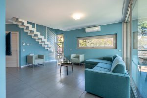 • elke villa en elk appartement is geheel zelfstandig en heeft de beschikking over een eigen living met zit- en eetgedeelte en voor de living een overdekt terras met zeezicht, alle met airco, wifi en sat TV