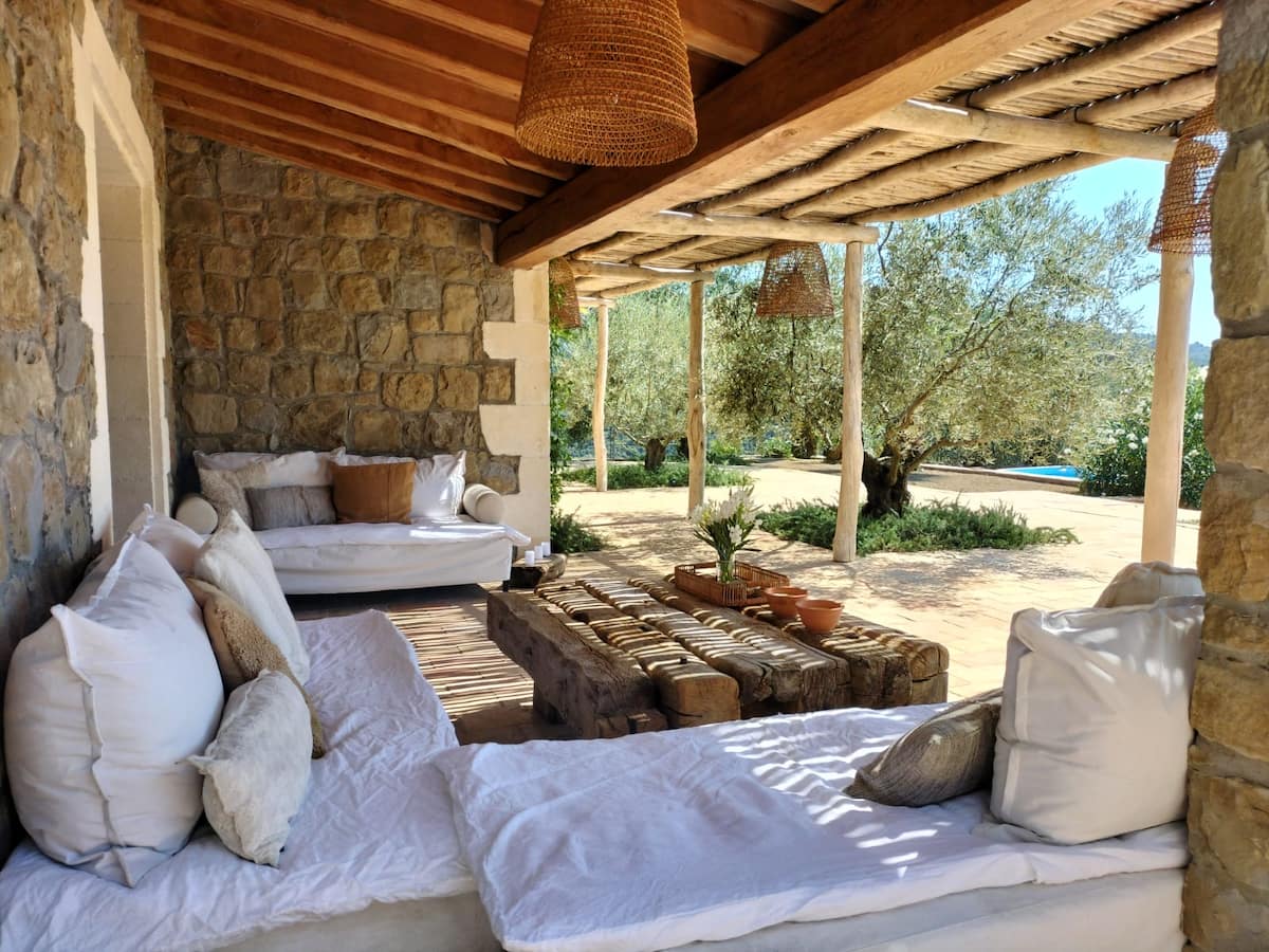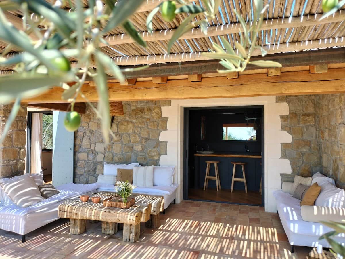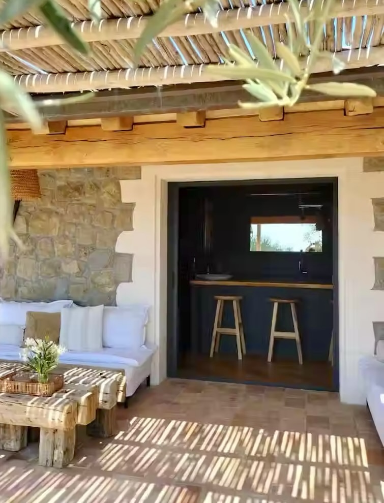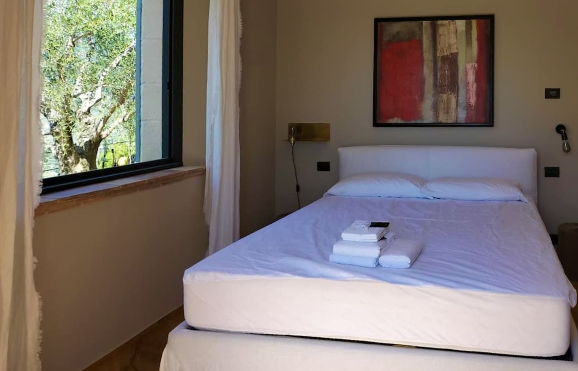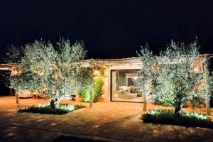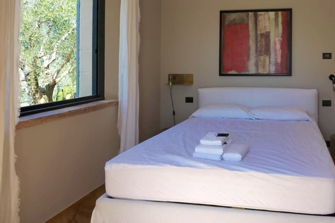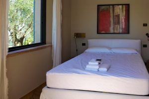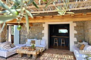 Met in totaal twee slaapkamers, een ruime tweepersoons en een kamer met twee losse bedden die eventueel tot een tweepersoons geschakeld kunnen worden, biedt Sogno di Acquadolce plaats aan vier personen. verder telt de villa, die geheel gelijkvloers is, een grote, zonovergoten living met een groot panoramaraam dat uitkijkt op het terras, de olijfbomen rondom en de zee in de verte. In een hoek van de sfeervolle living, die naast een comfy zithoek ook een grote eettafel bevat, is een half open keuken gemaakt. In chique zwart uitgevoerd, met een keukeneiland met bargedeelte, is dit een waar paleis voor kookliefhebbers. Vanuit de keuken is de tuin met het overdekte terras bereikbaar. Hier is in de schaduw van een rietgedekte overkapping een zithoek gemaakt en iets verderop een eetgedeelte. Recht voor de ingang, door een stuk tuin en gazon gescheiden, is het zwembad aangelegd.