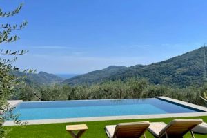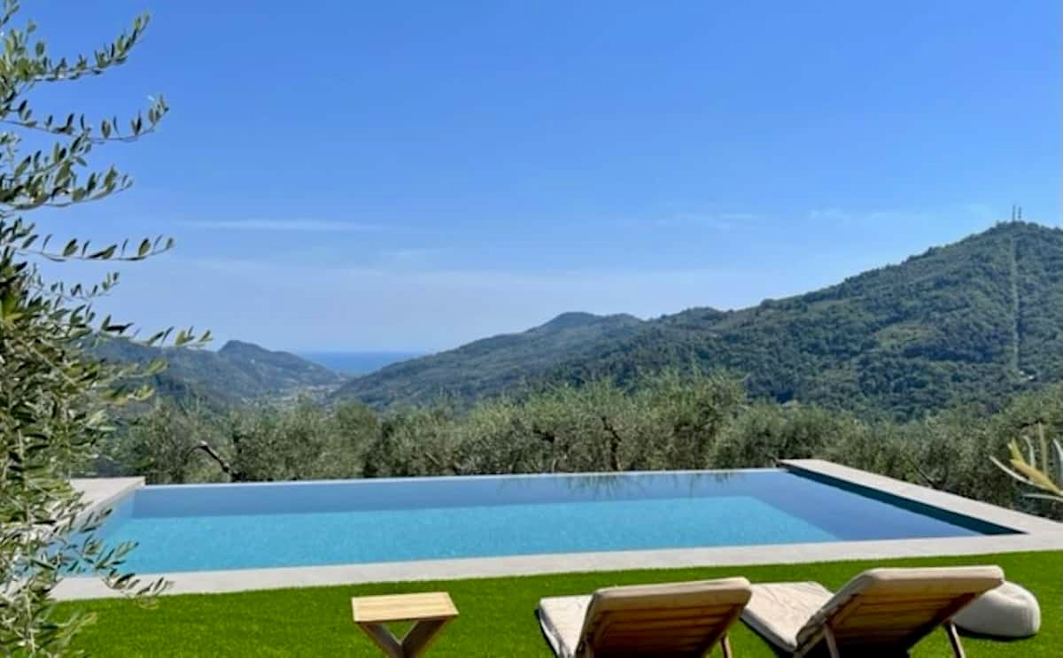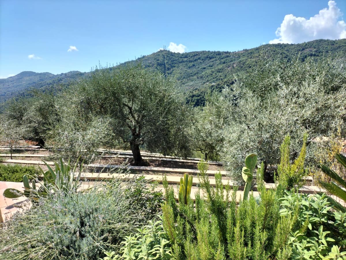 Rond de villa, die op de top van een berg is gelegen, heb je een geweldig uitzicht over de valleien. Direct rond de villa ligt een uitgestrekte olijfgaard van 150 eeuwenoude bomen die jaarlijks een top olie opleveren. Wie dat leuk vindt, kan in het najaar deel nemen aan de oogst van de olijven. En wie sowieso wat leven in de brouwerij zoekt, vindt het pittoreske Dolceacqua vlakbij op vier kilometer van de villa, terwijl de zee op een half uurtje rijden ligt.