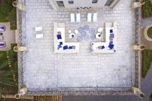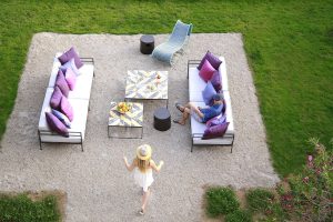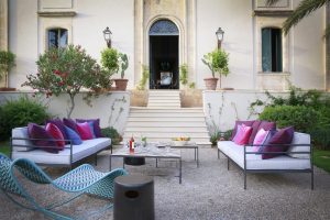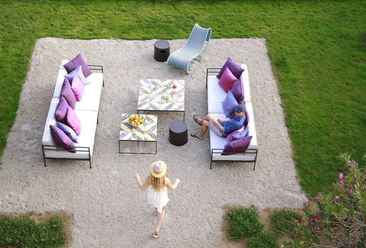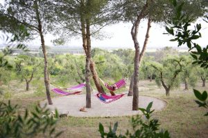 Op het bordes voor de Tenuta is een klein terras gemaakt en onderaan de fraaie trappartij ligt een groot loungeterras met comfortabele banken en een aantal fauteuils. Daarnaast is er het zonneterras bij het zwembad en voor wie graag in de schaduw van eeuwenoude bomen relaxt, is er letterlijk een hangplek in de de tuin. Een viertal hangmatten bij elkaar, zodat je heerlijk samen kan schommelen.